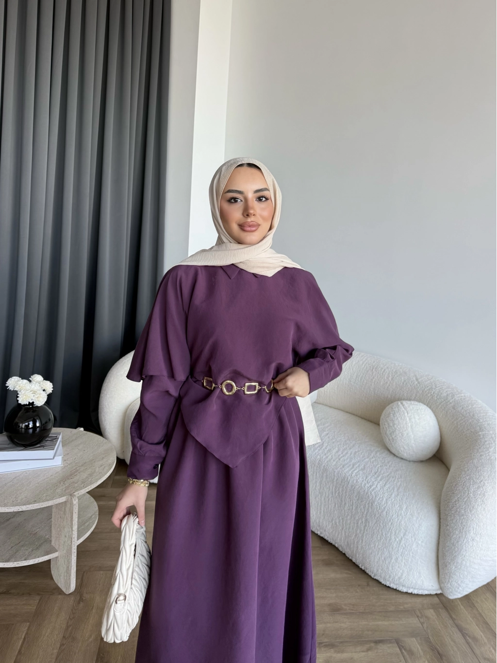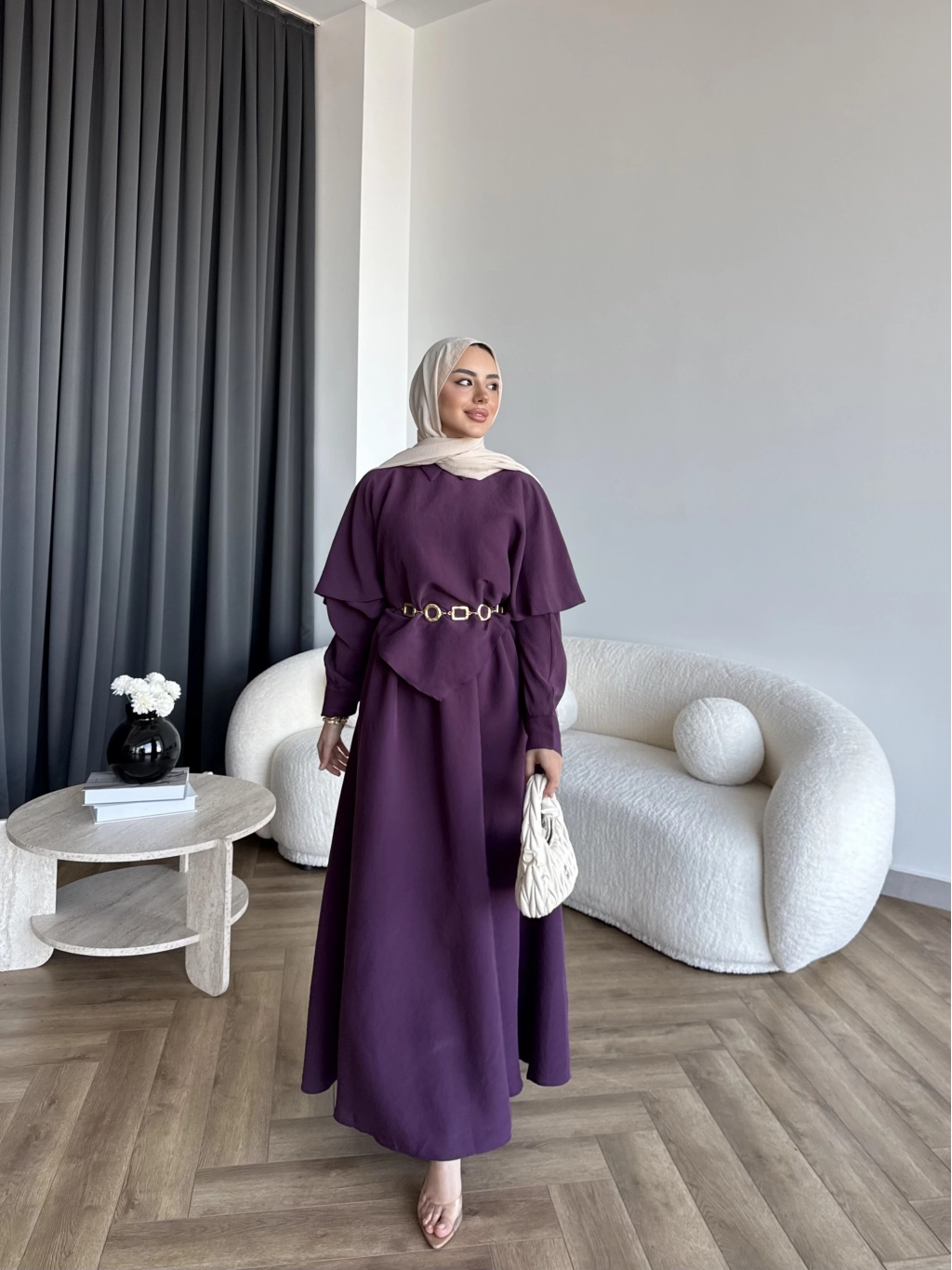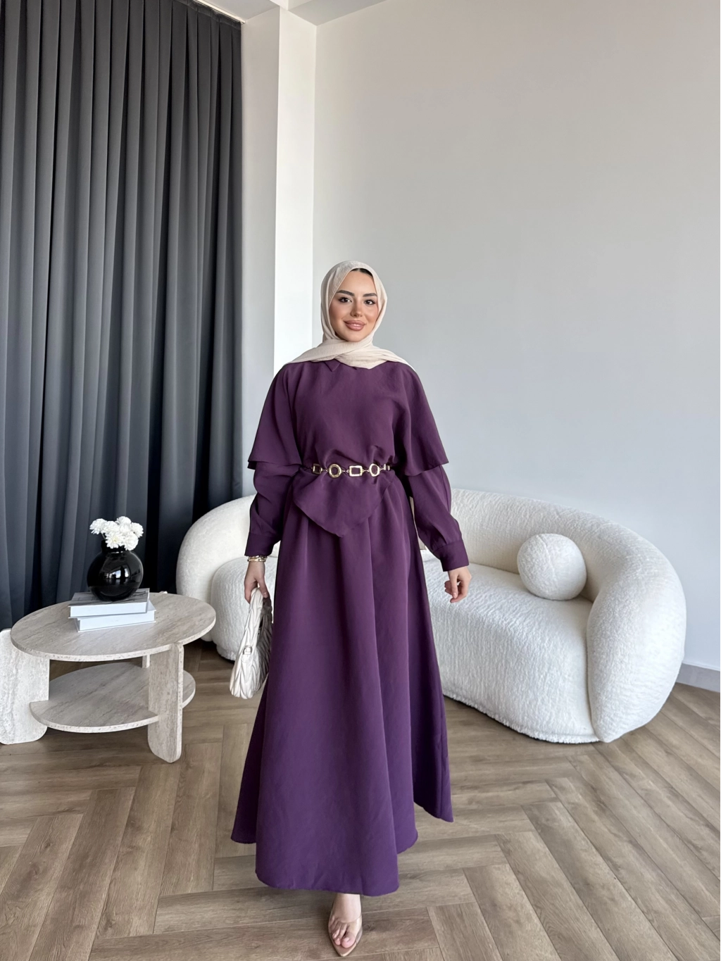 Qu - Aller Pelerinli Modal Elbise - Mor