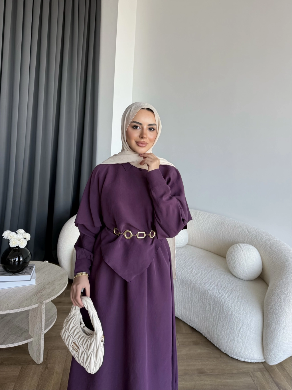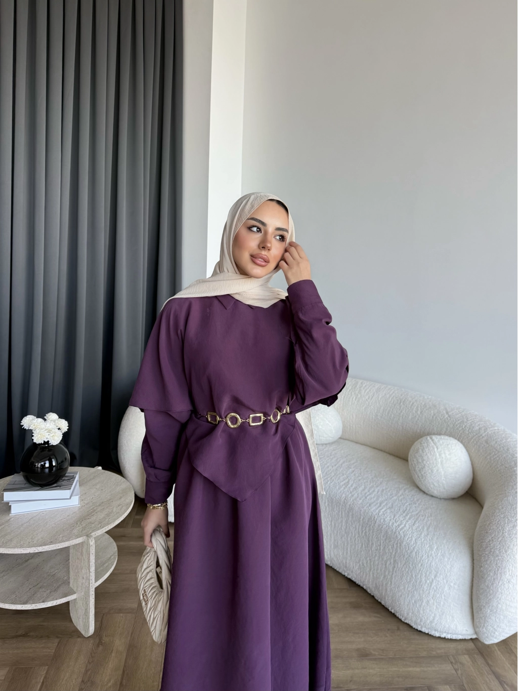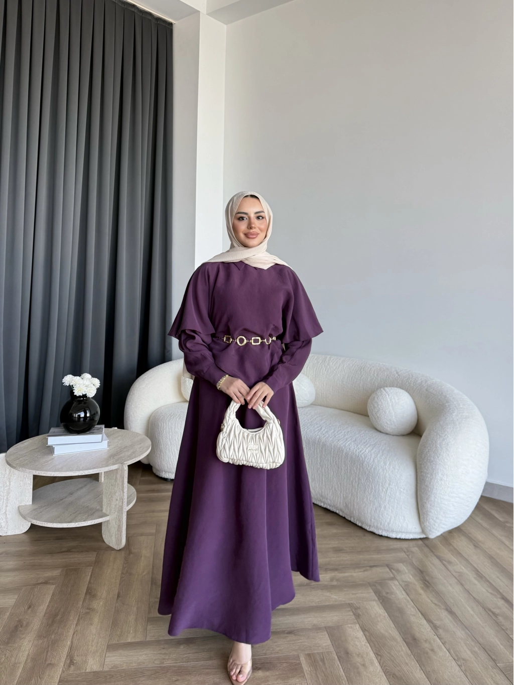 Qu - Aller Pelerinli Modal Elbise - Mor