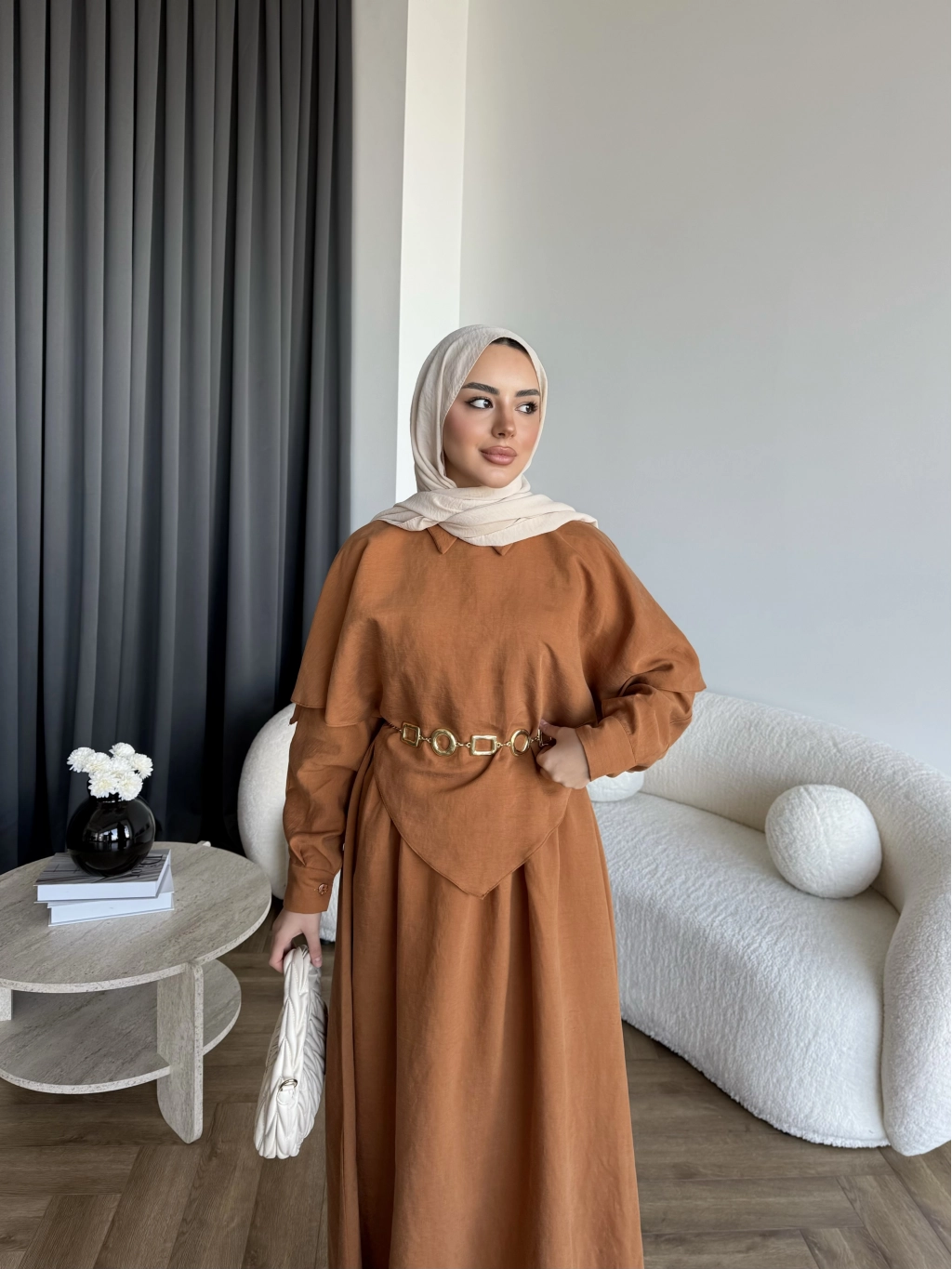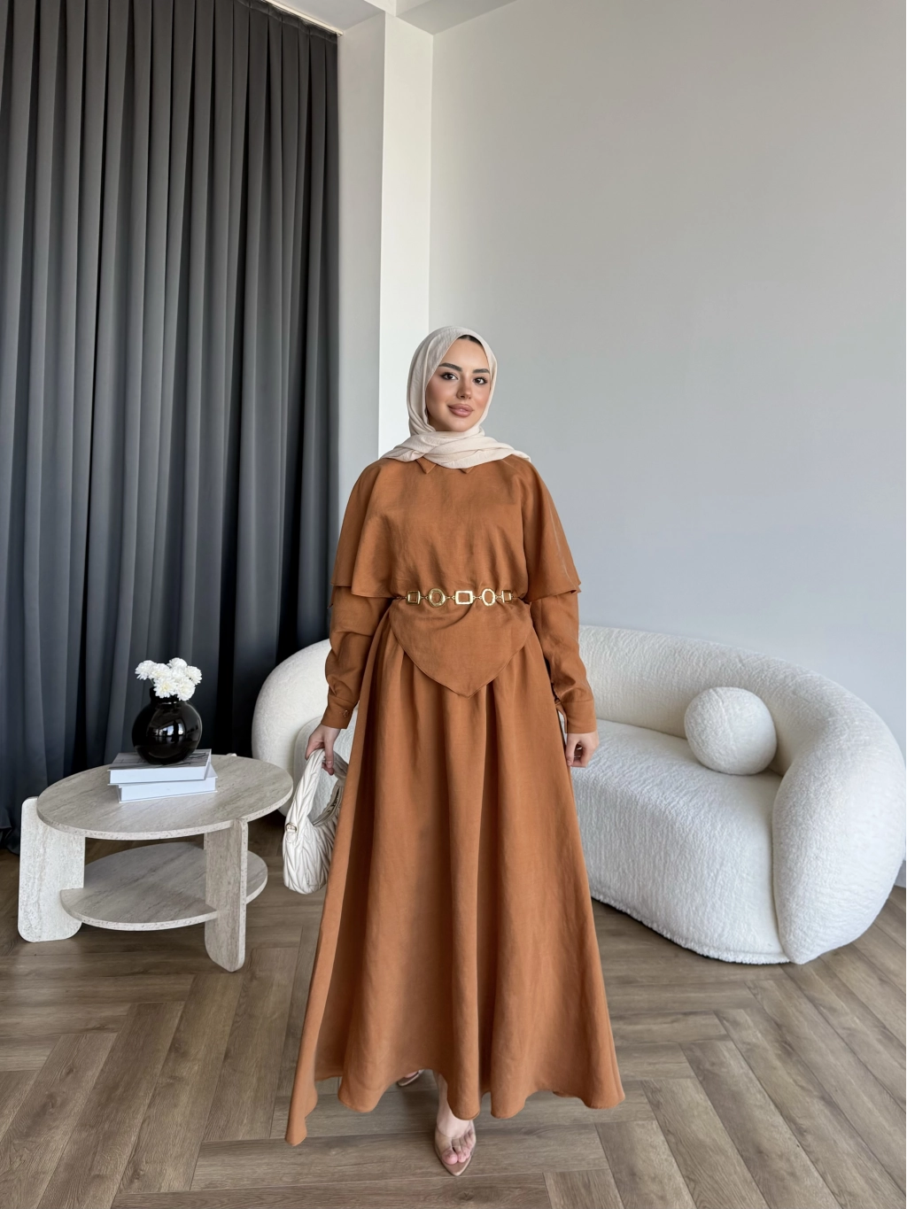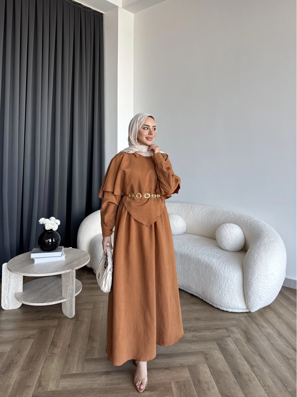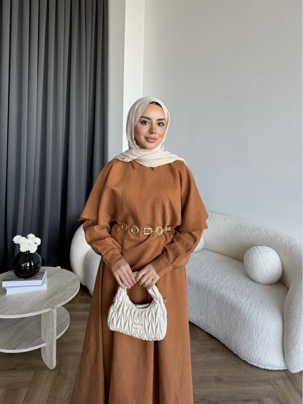 Qu - Aller Pelerinli Modal Elbise - Kiremit