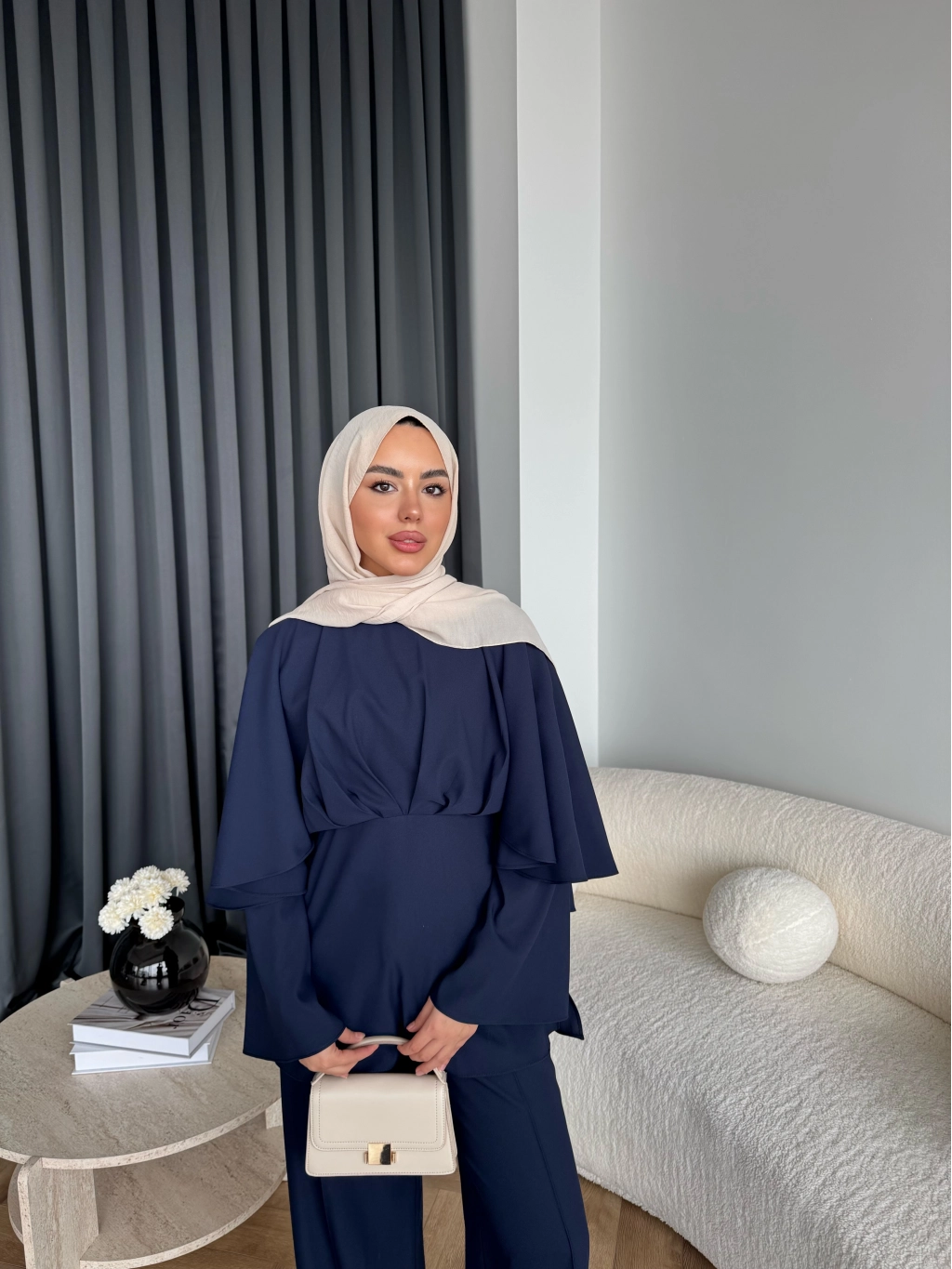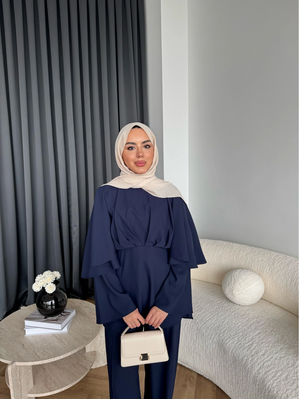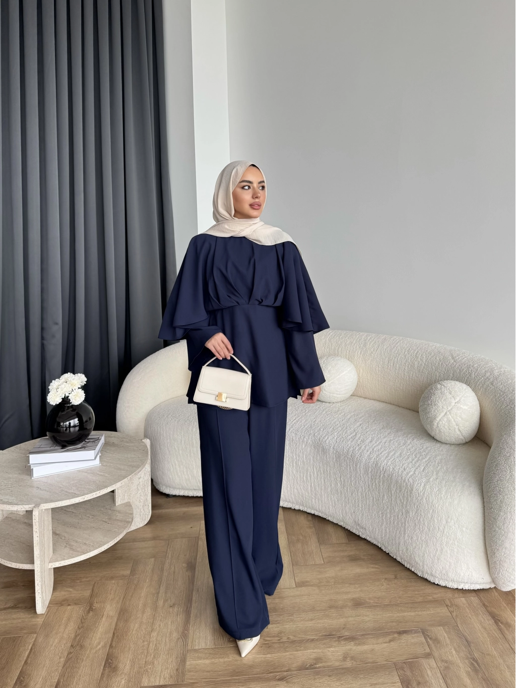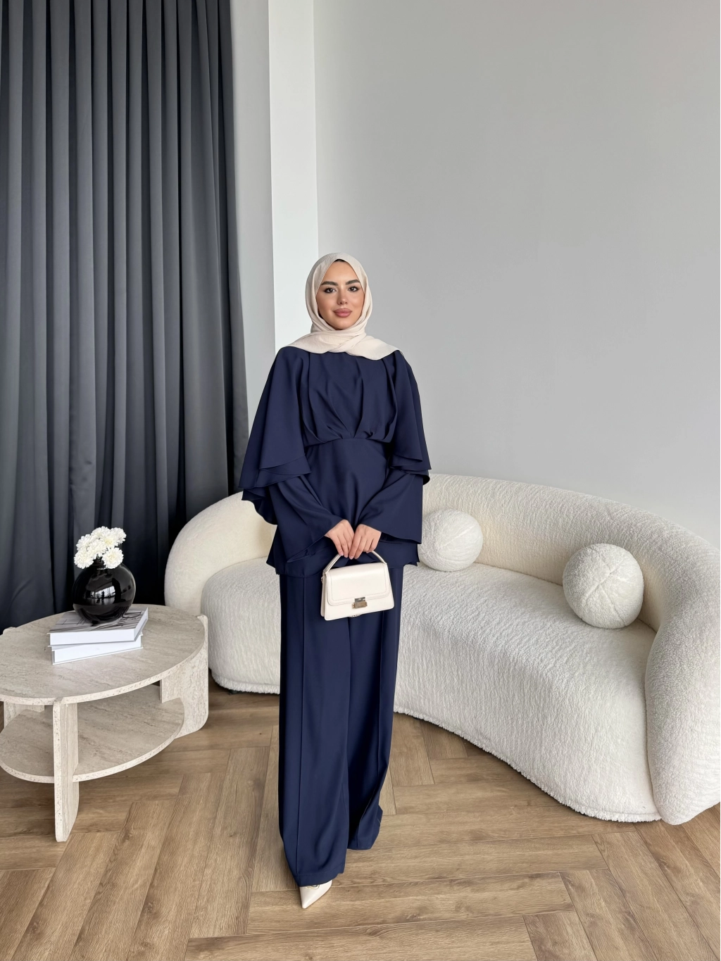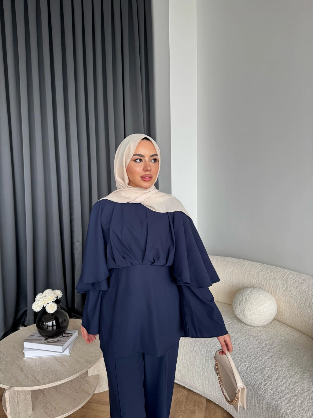 Qu - Eytan Fırfırlı Krep Takım - Lacivert