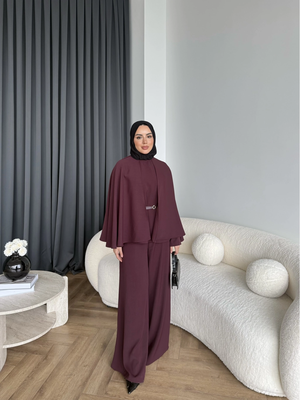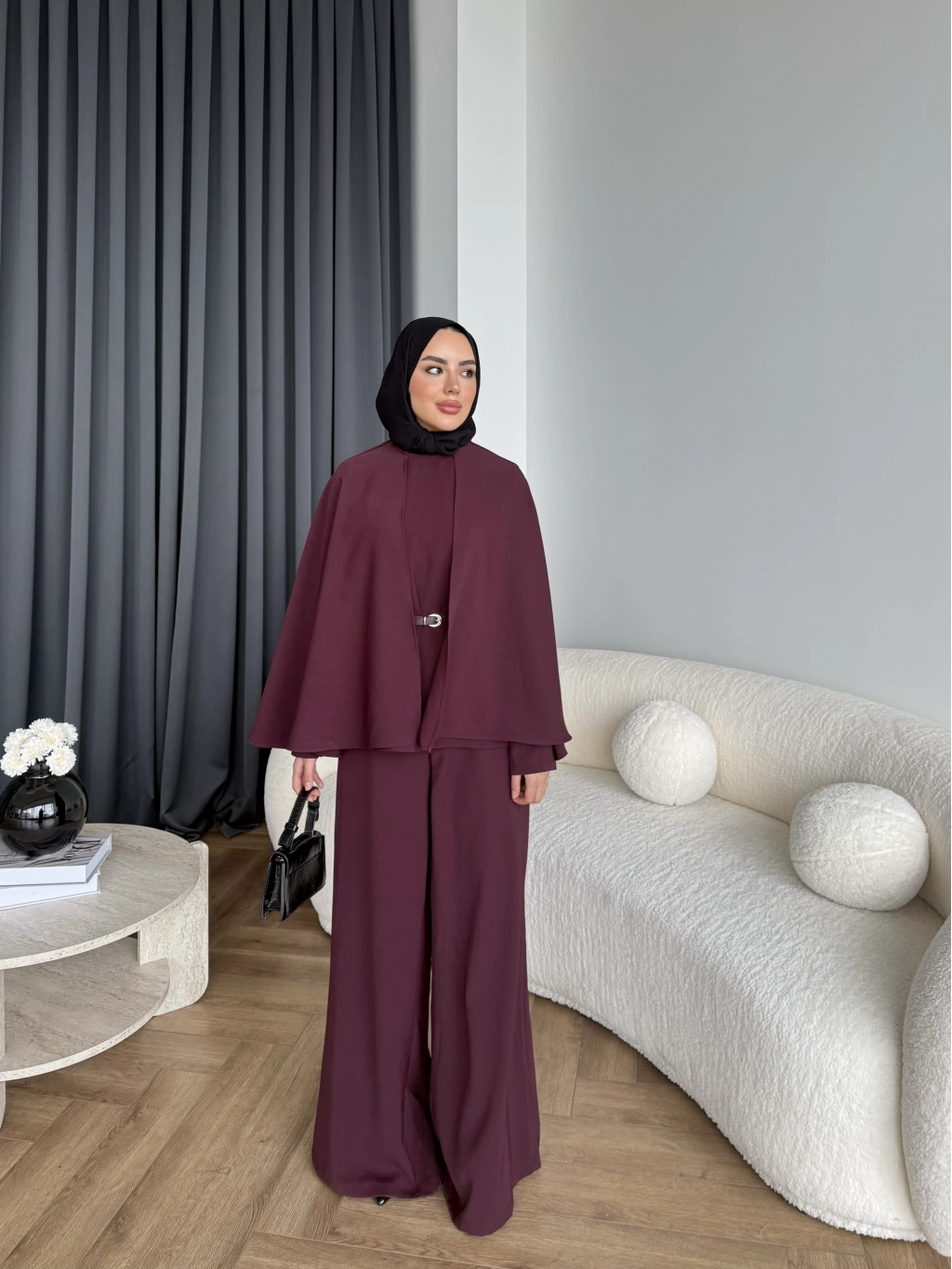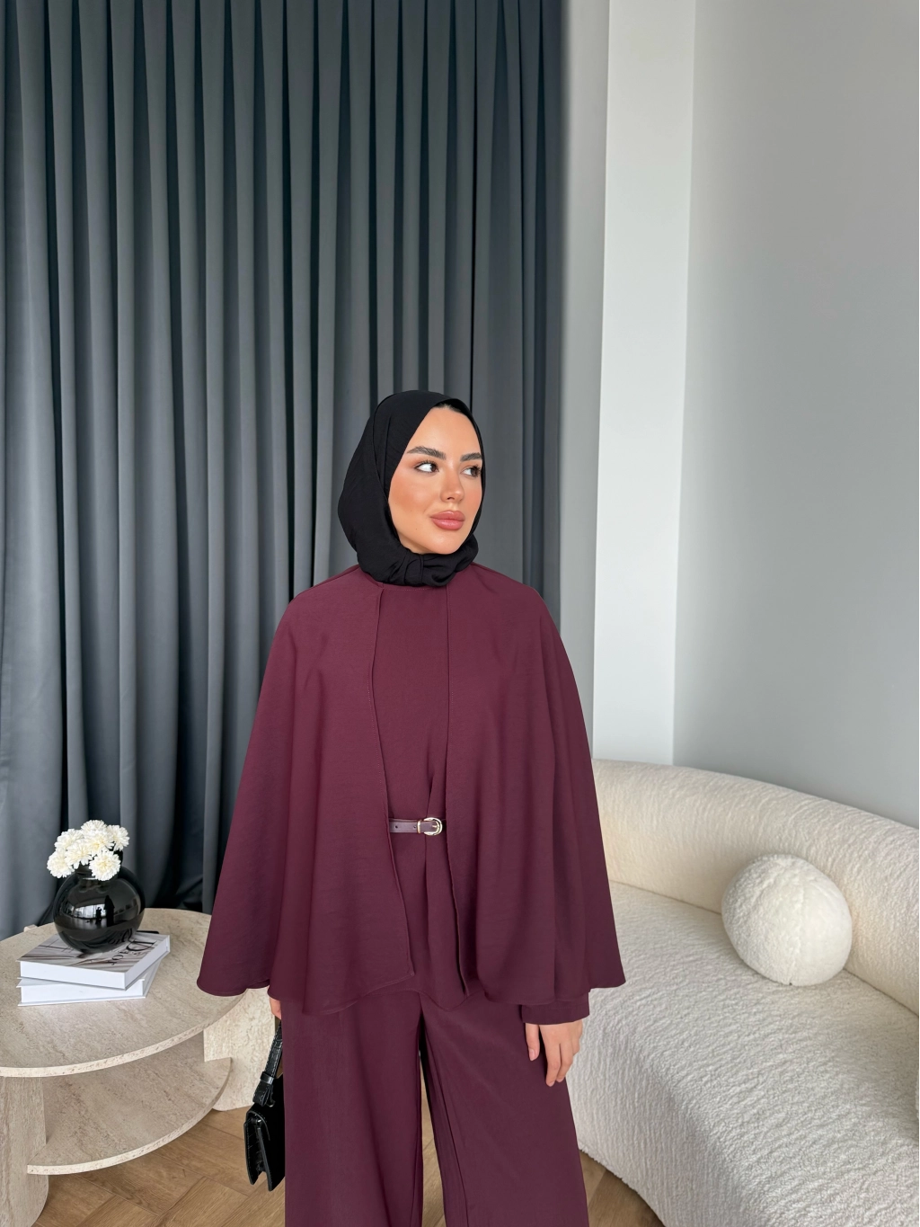 Qu - Polama Pelerinli Takım - Bordo