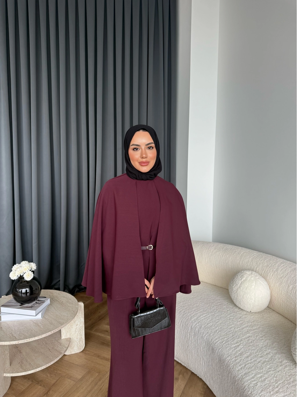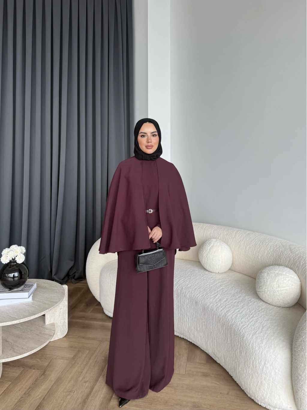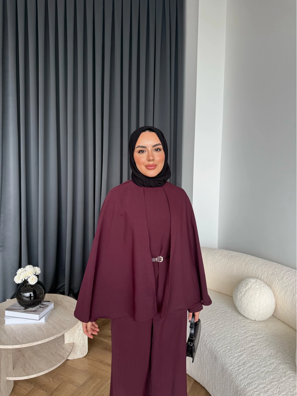 Qu - Polama Pelerinli Takım - Bordo