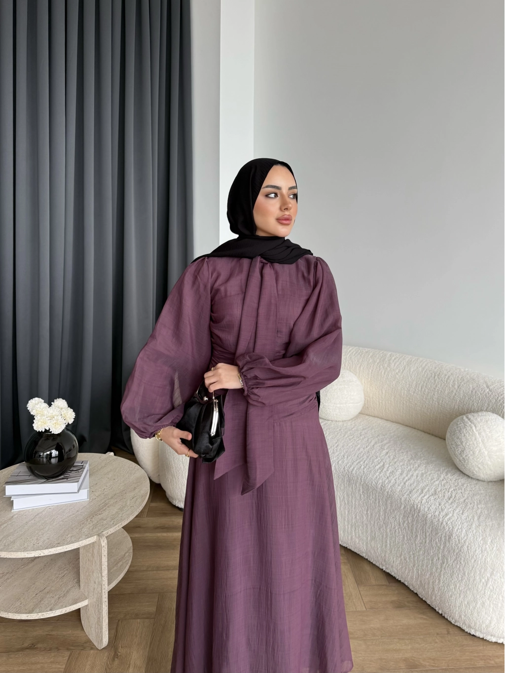 Qu - Salkım Belden Oturtmalı Elbise - Mürdüm