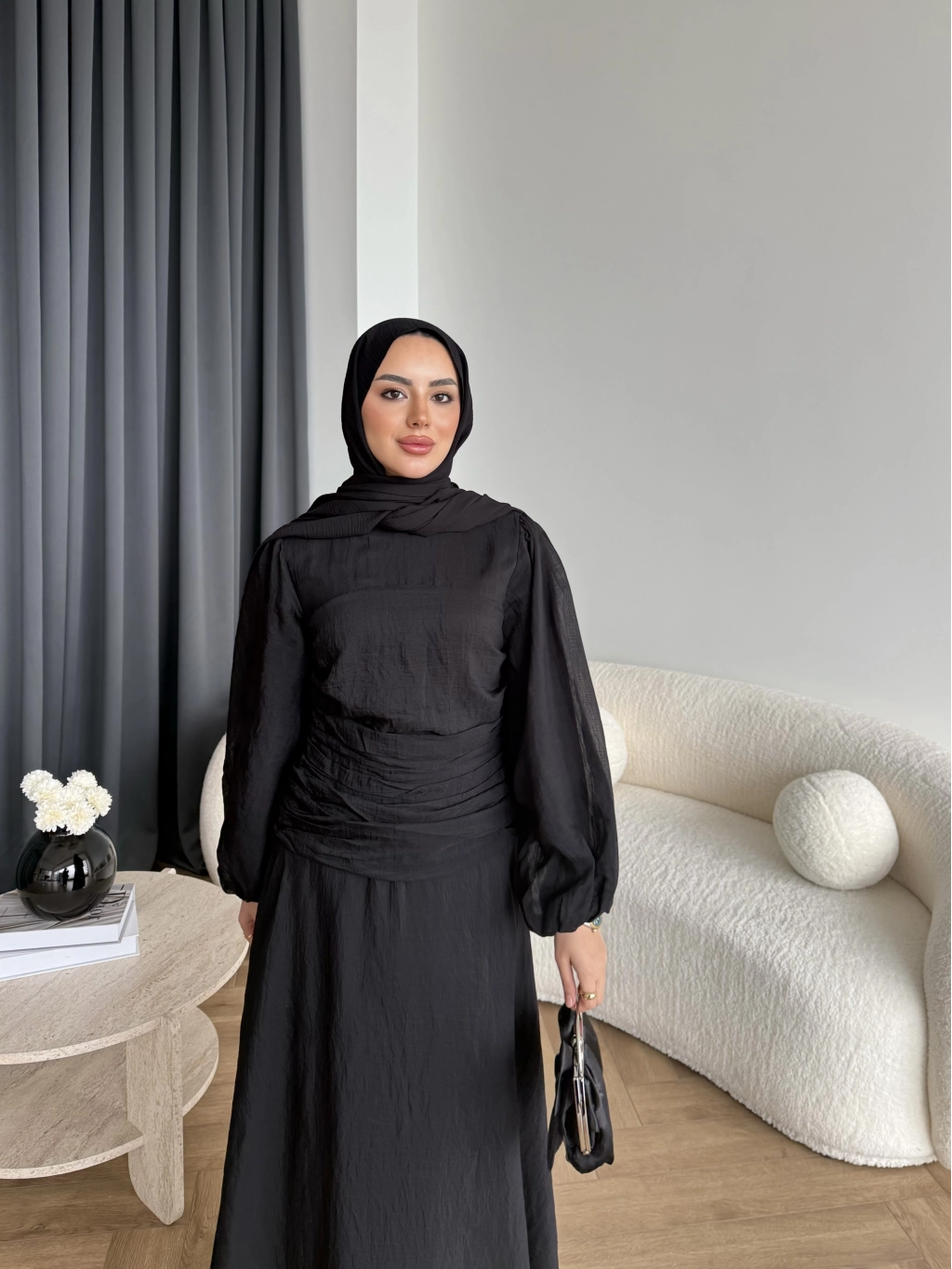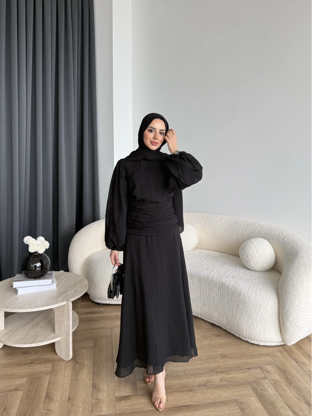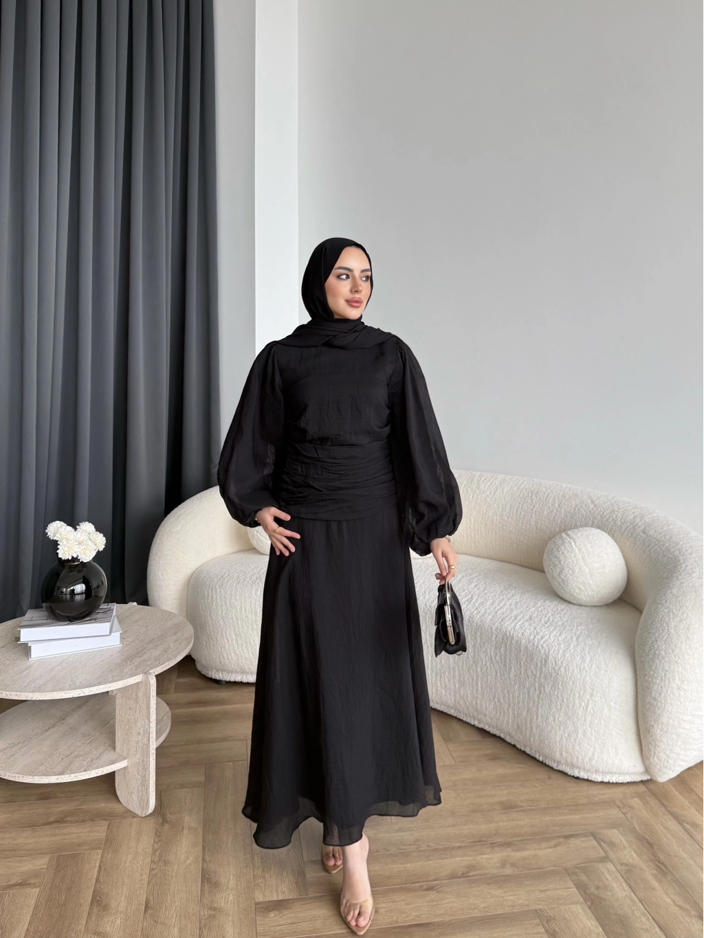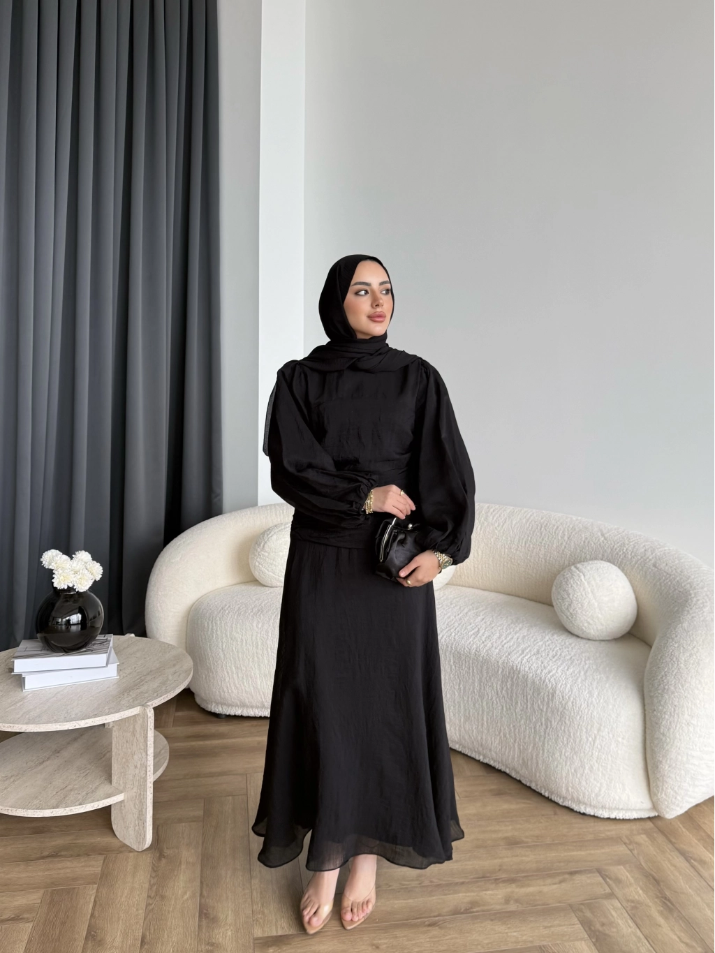 Qu - Salkım Belden Oturtmalı Elbise - Siyah