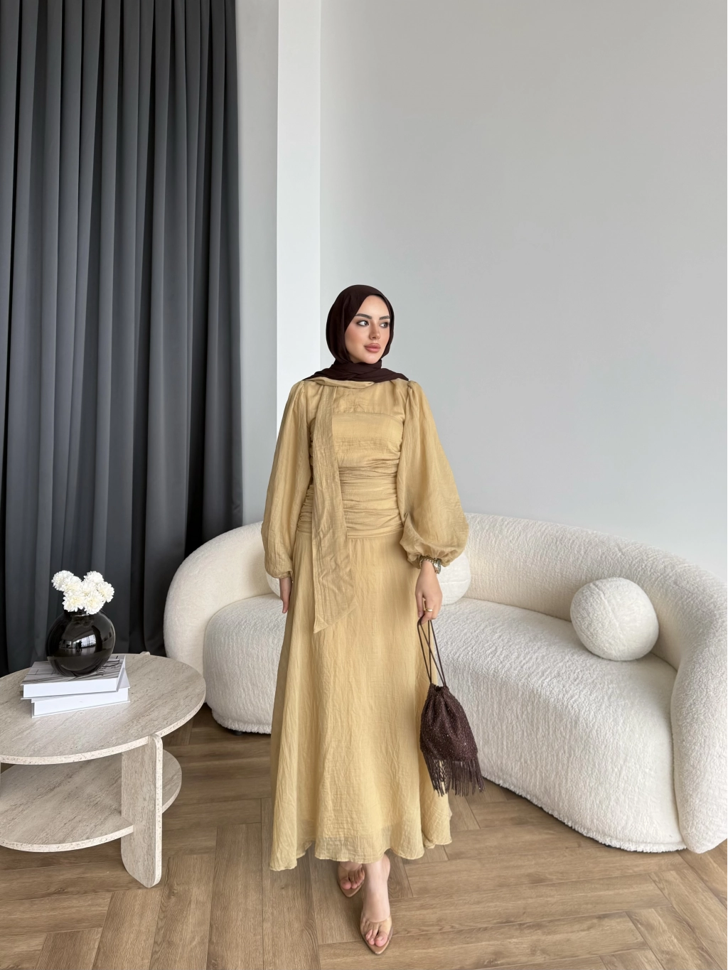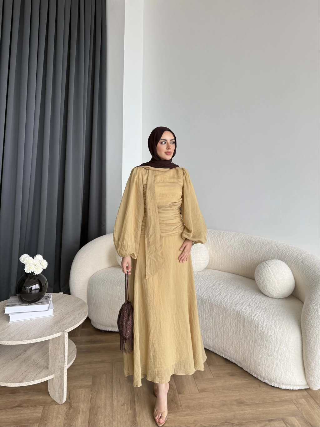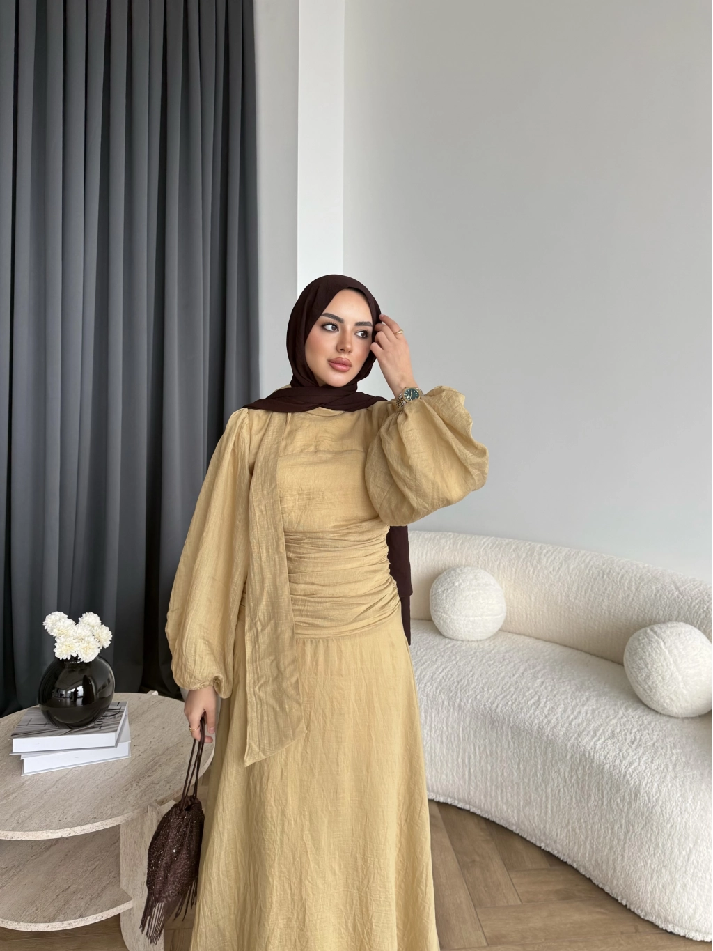 Qu - Salkım Belden Oturtmalı Elbise - Yağ Yeşil