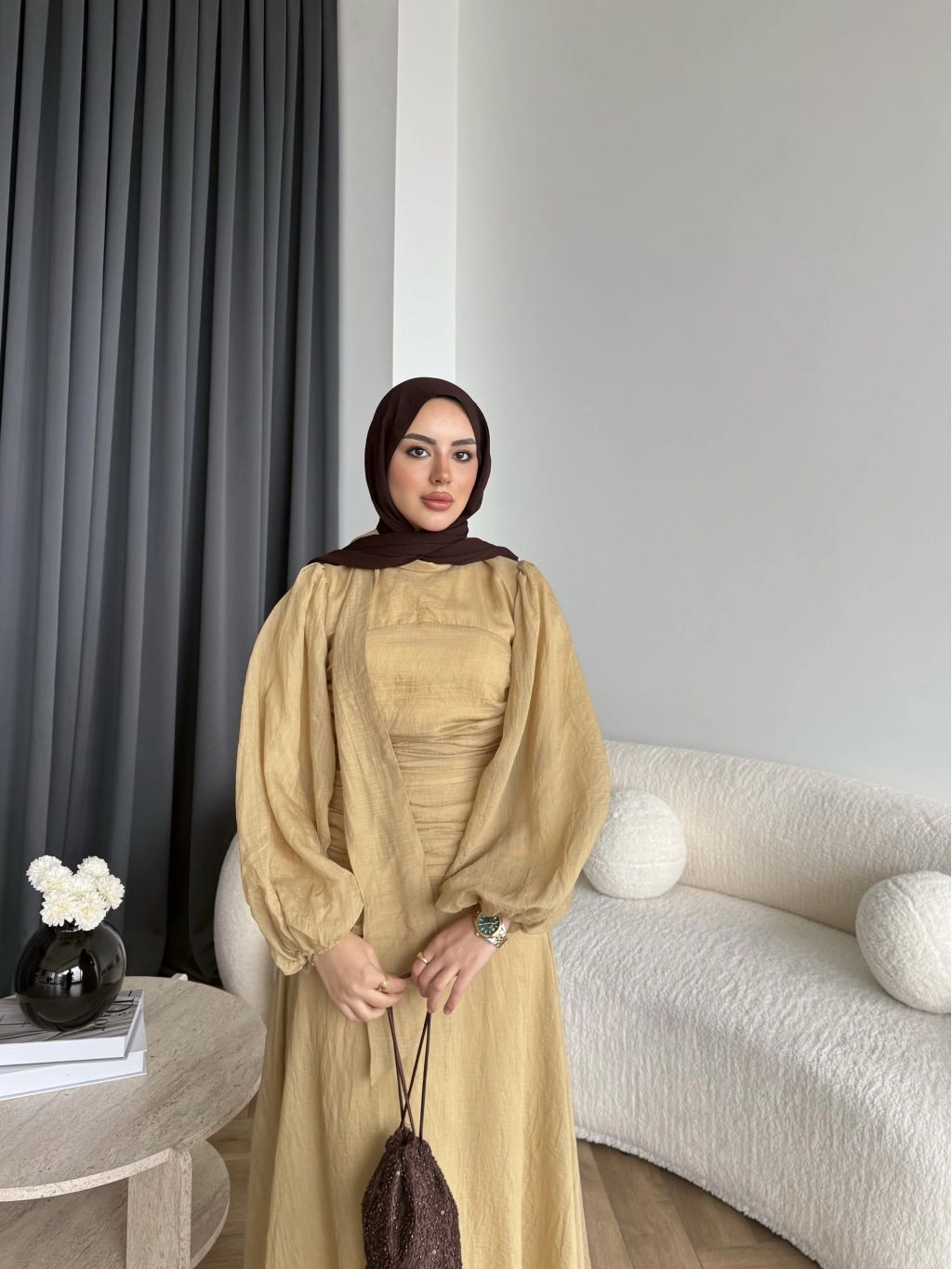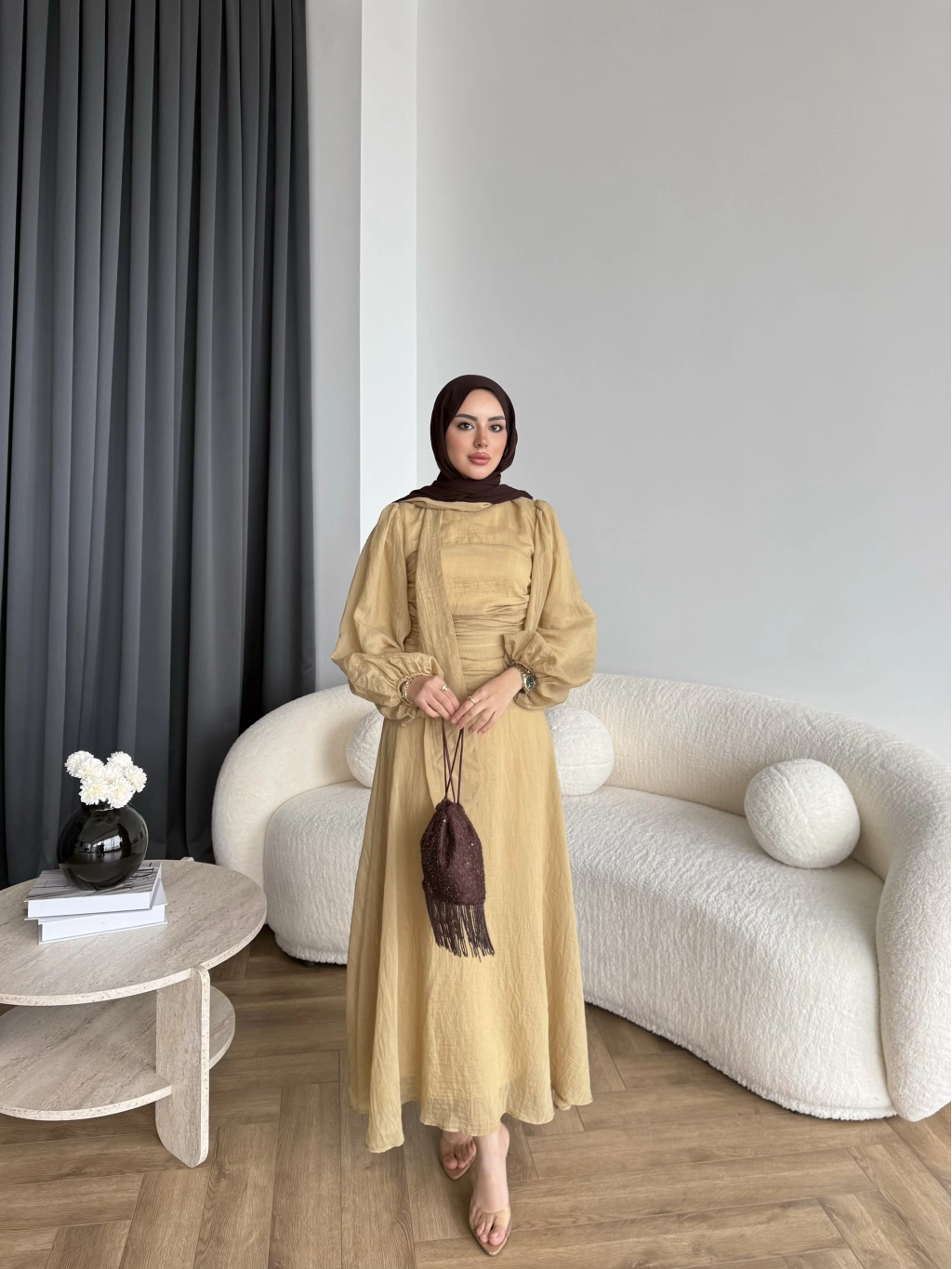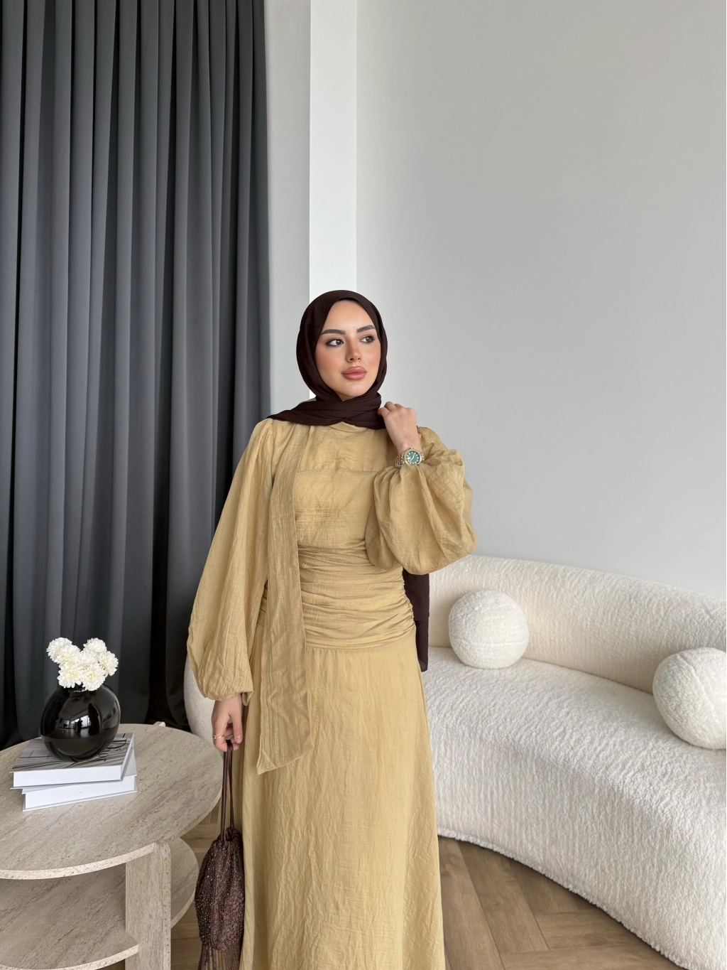Qu - Salkım Belden Oturtmalı Elbise - Yağ Yeşil