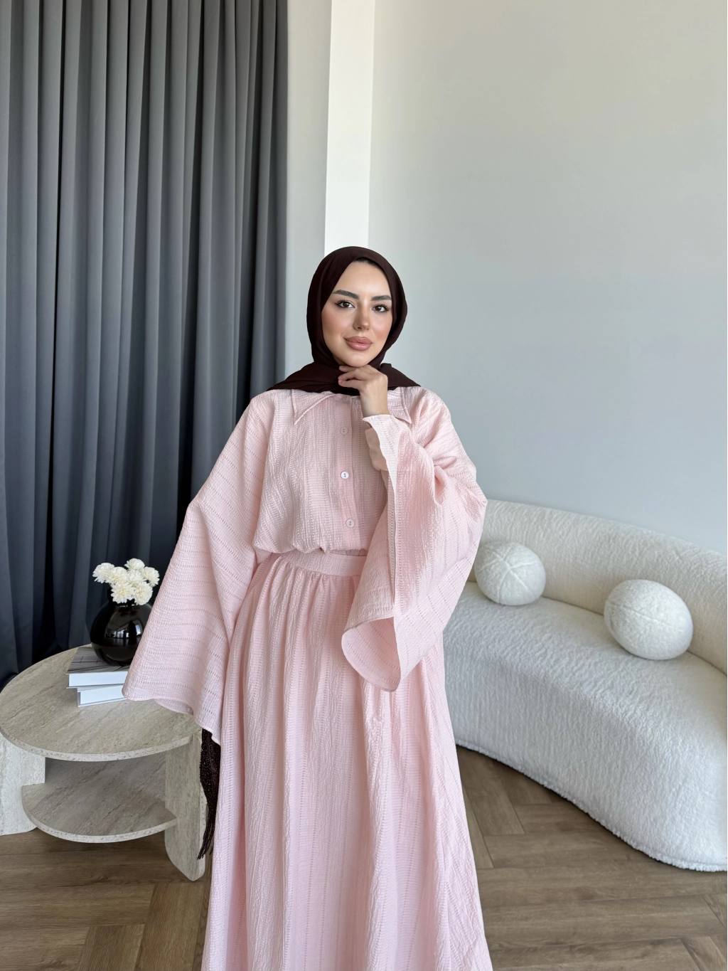 Qu - Yarasa Kol Brode Etekli Takım - Pembe