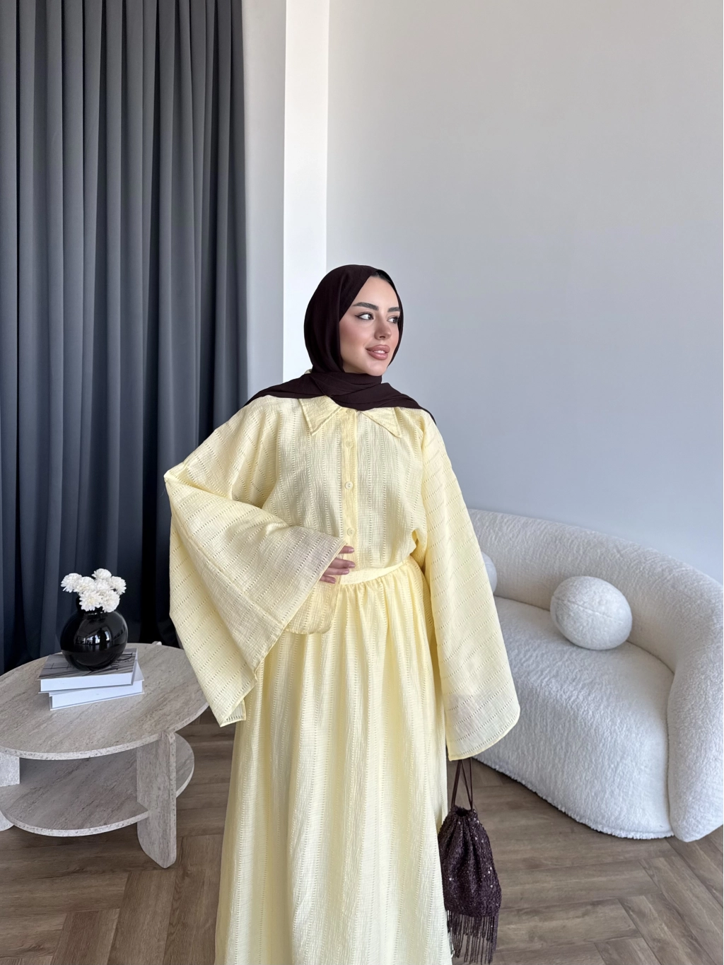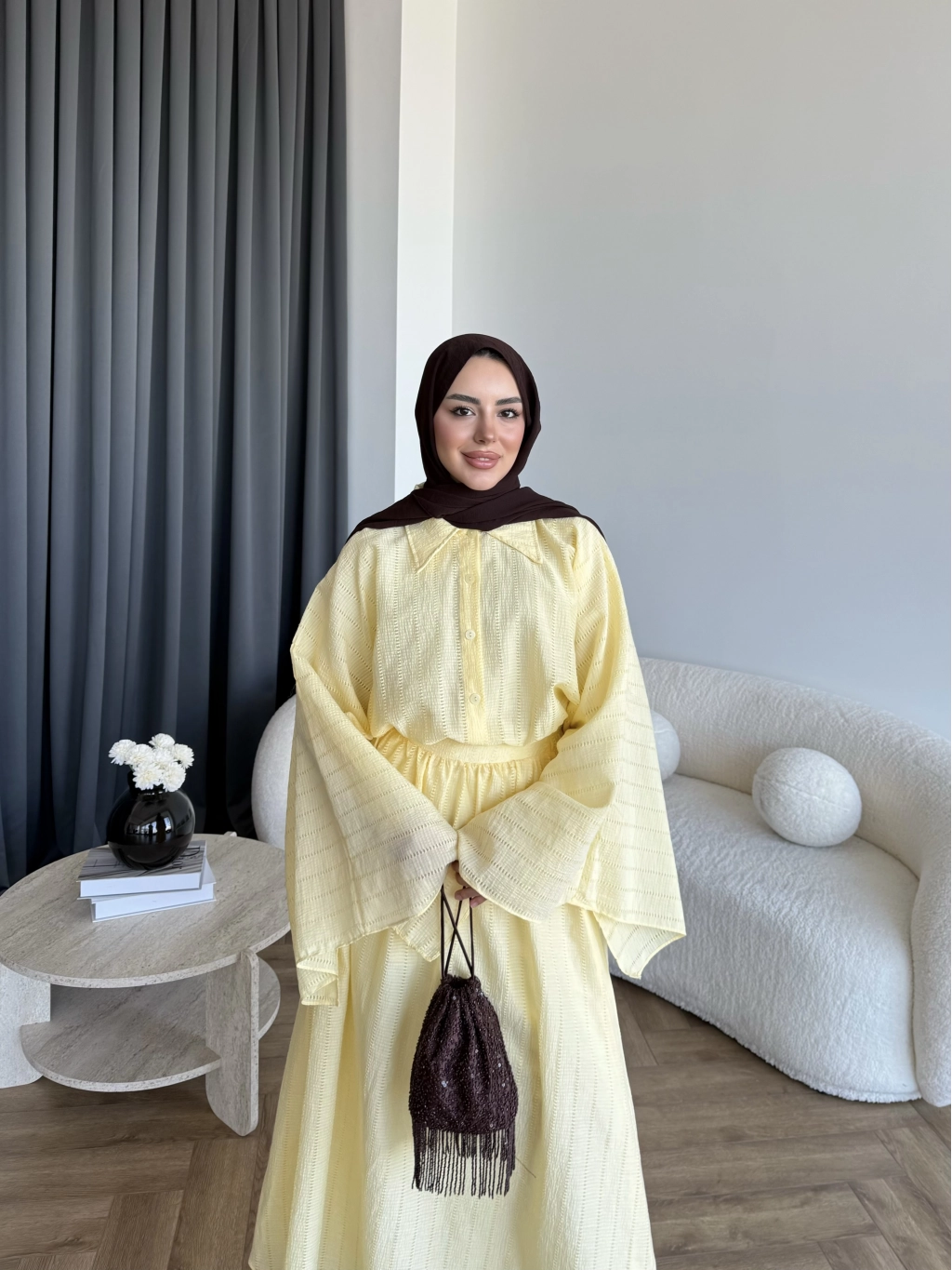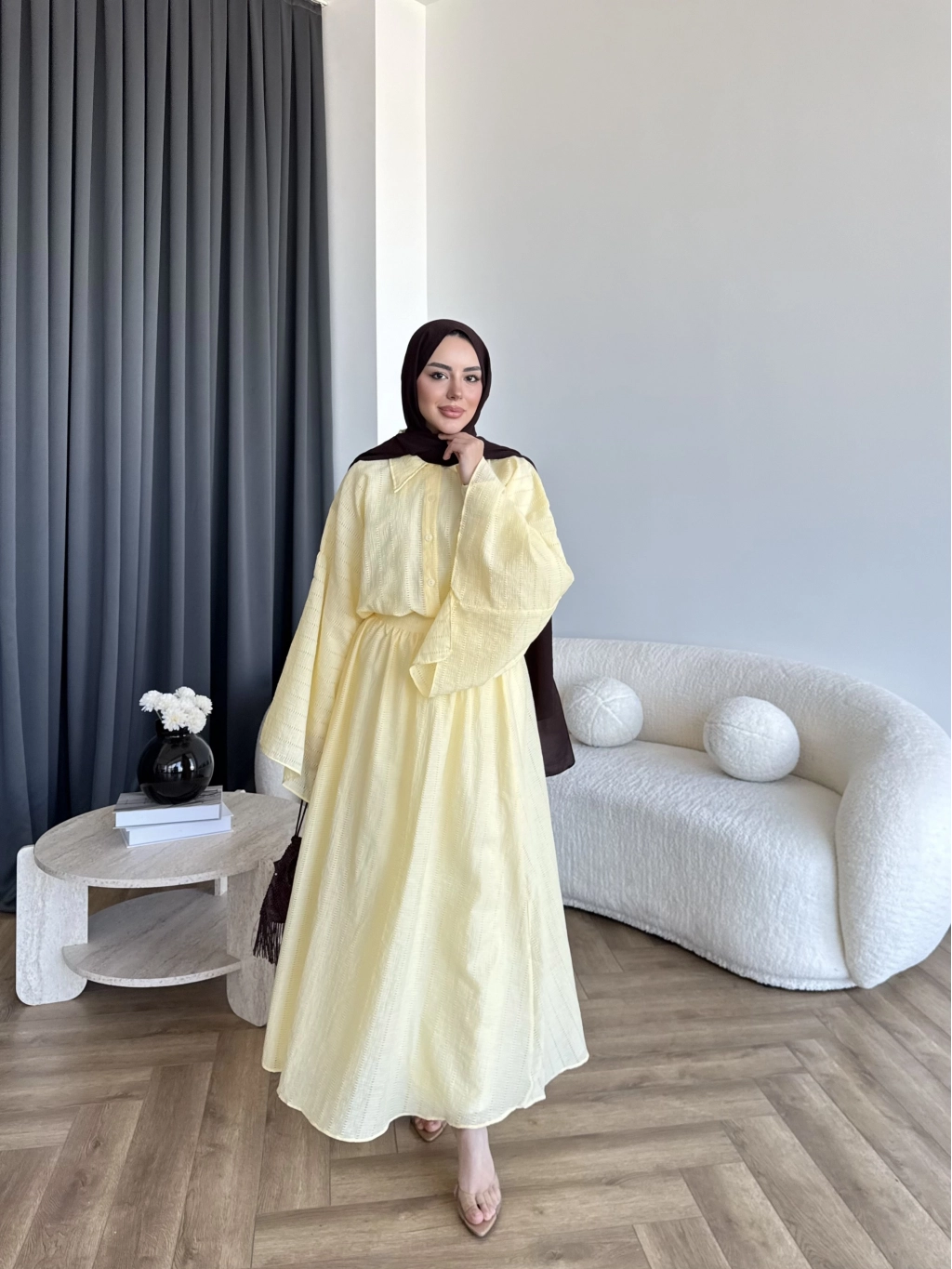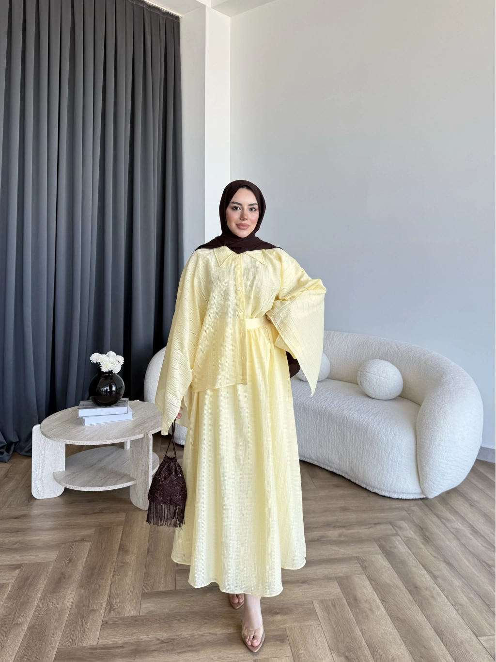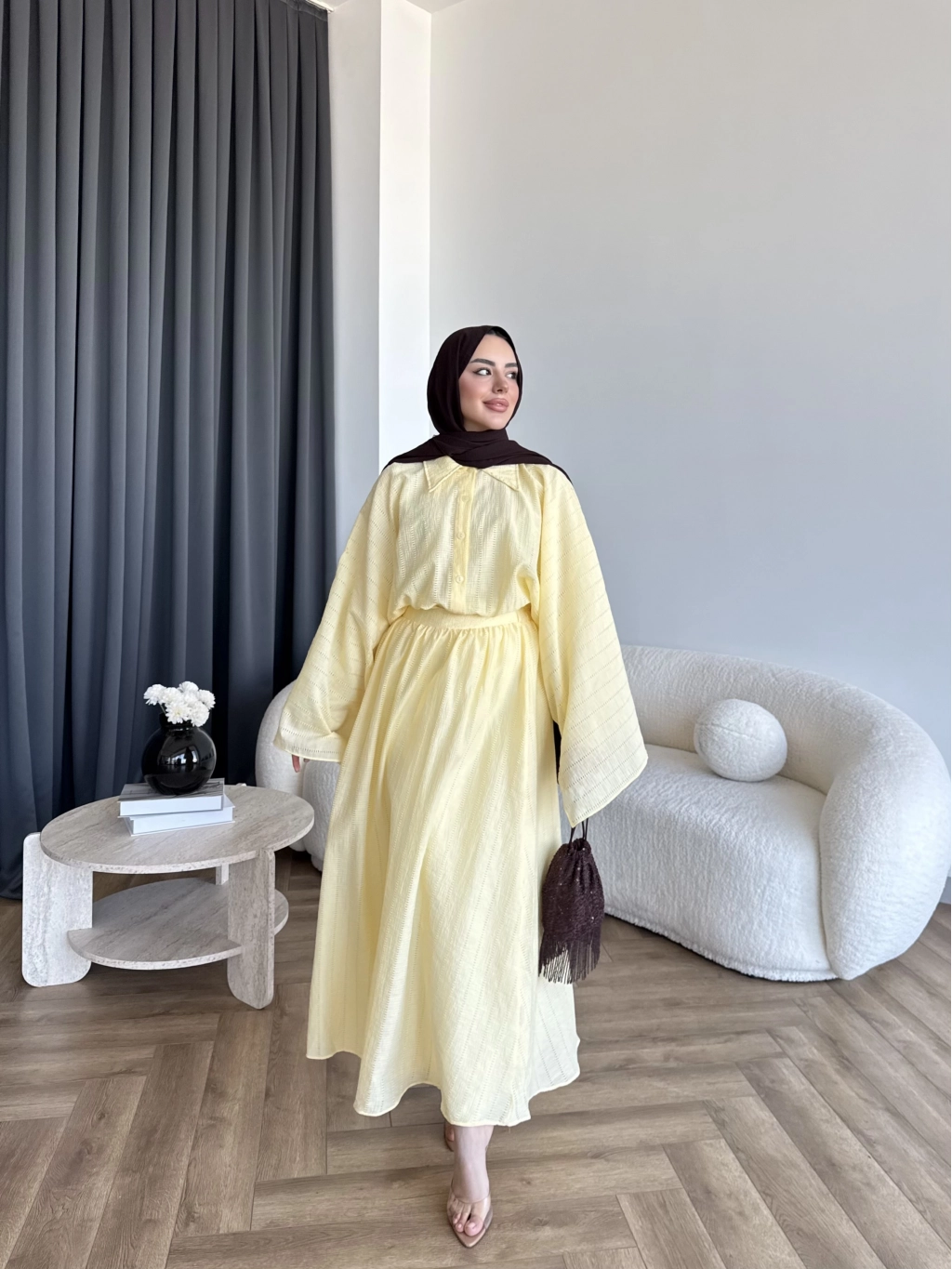 Qu - Yarasa Kol Brode Etekli Takım - Sarı