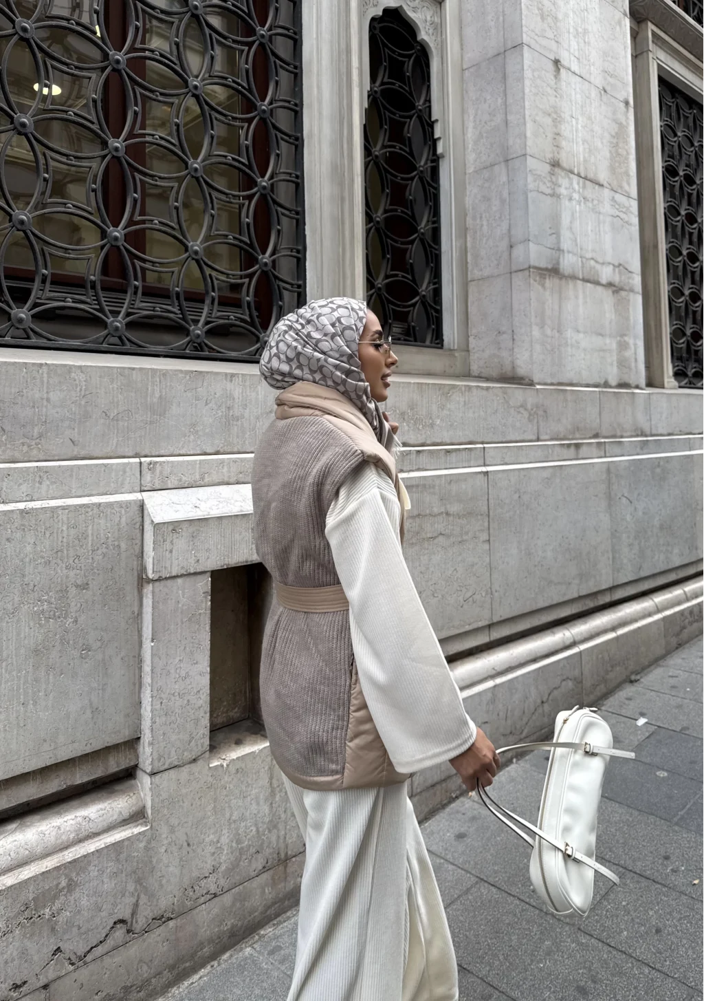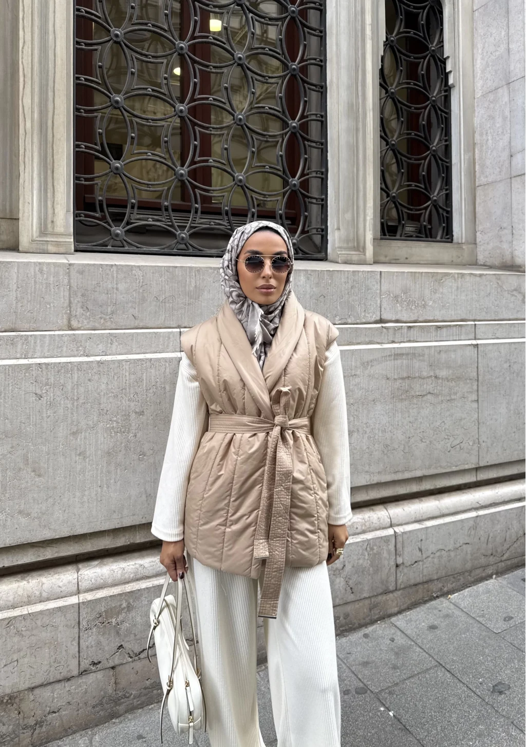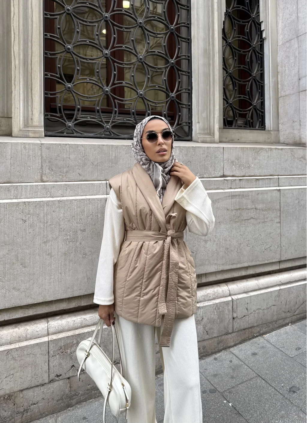 Dinas Kürk Detaylı Kaşe Mont - Bej