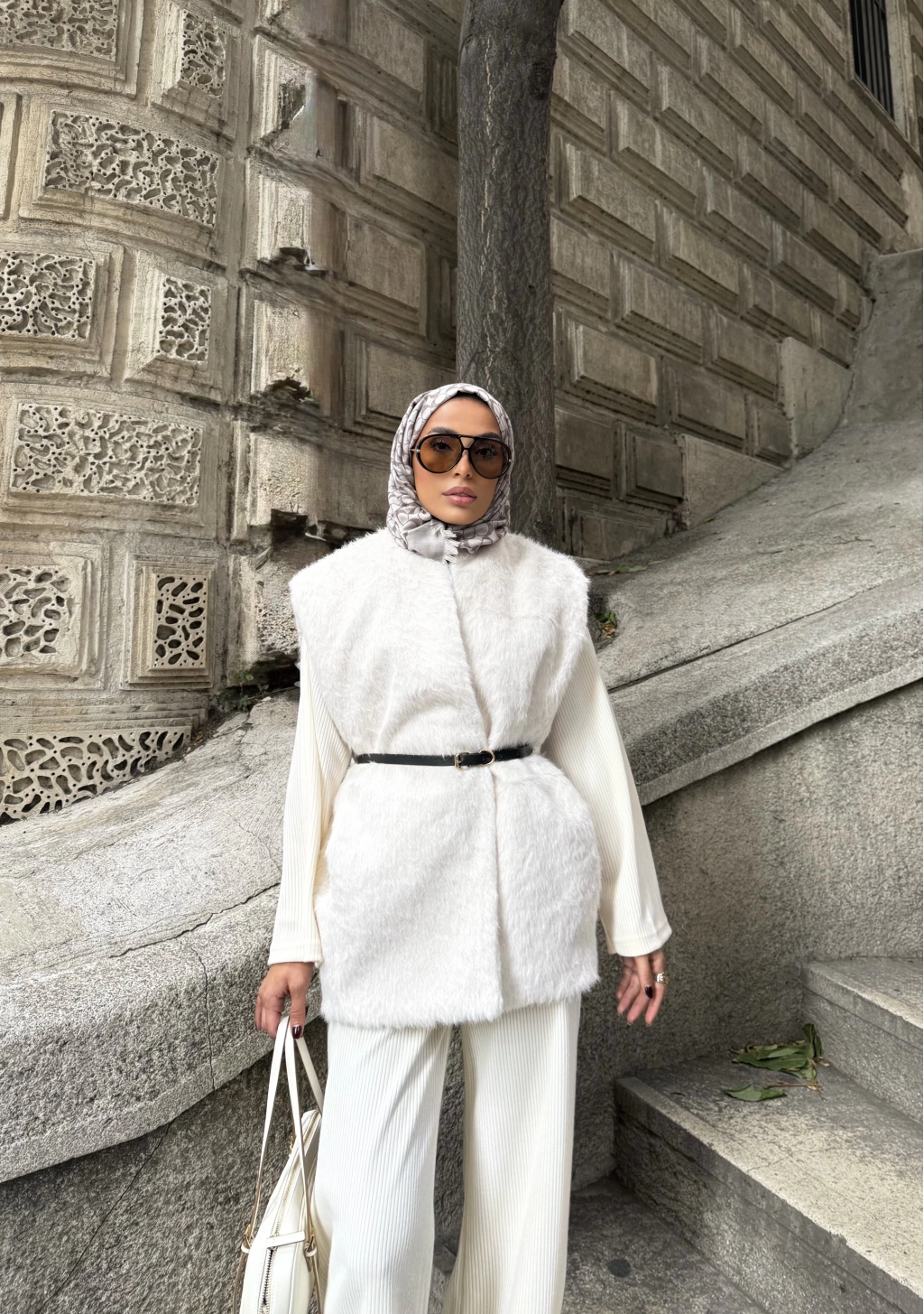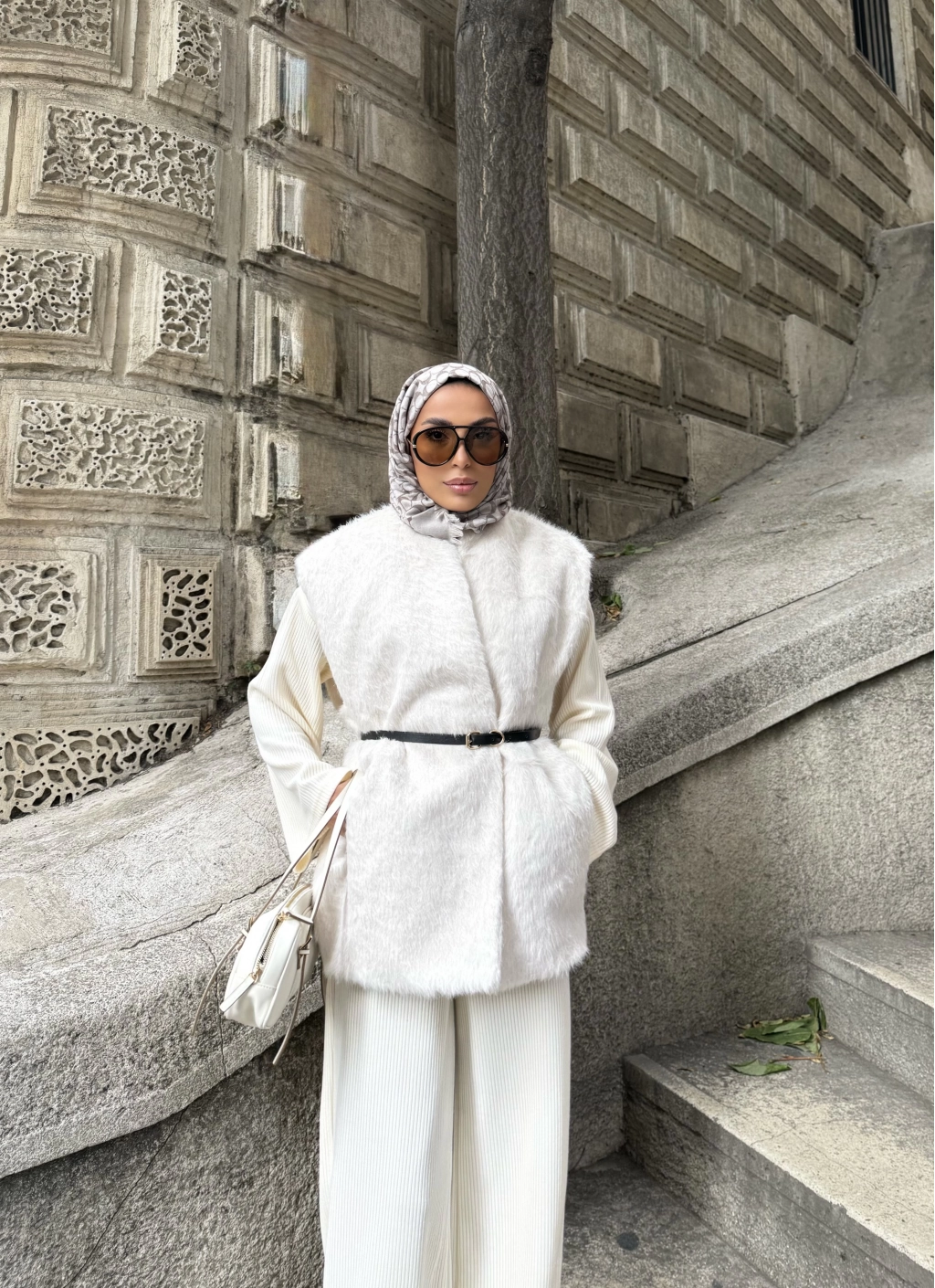 Roza Tüylü Yelek - Bej