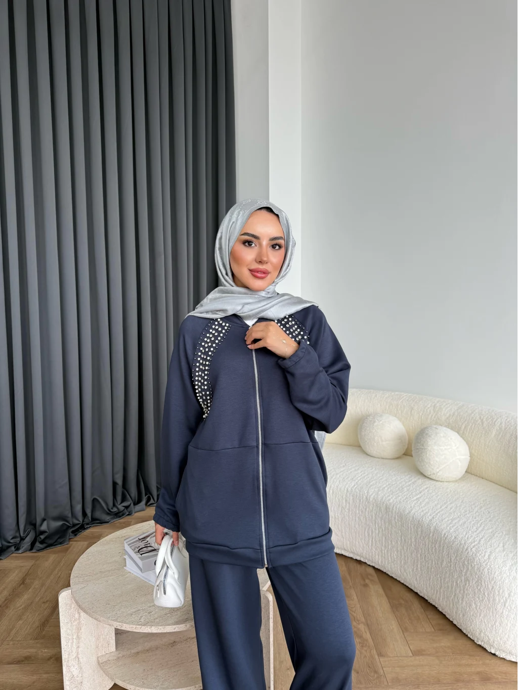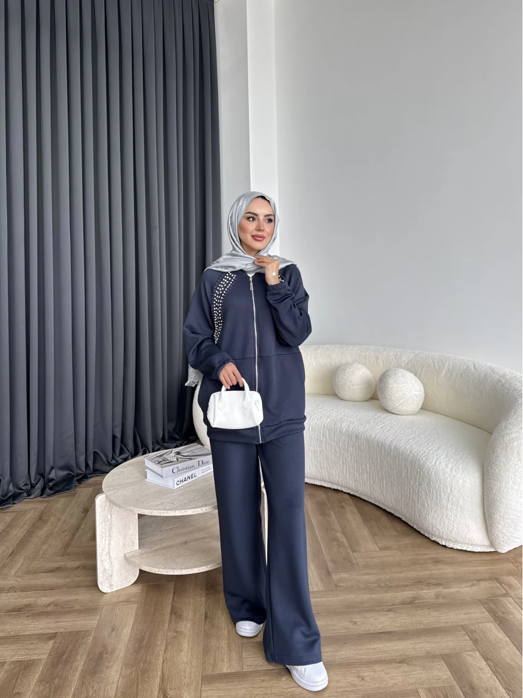 Gollan Fermuarlı Scuba Takım - Acı Kahve