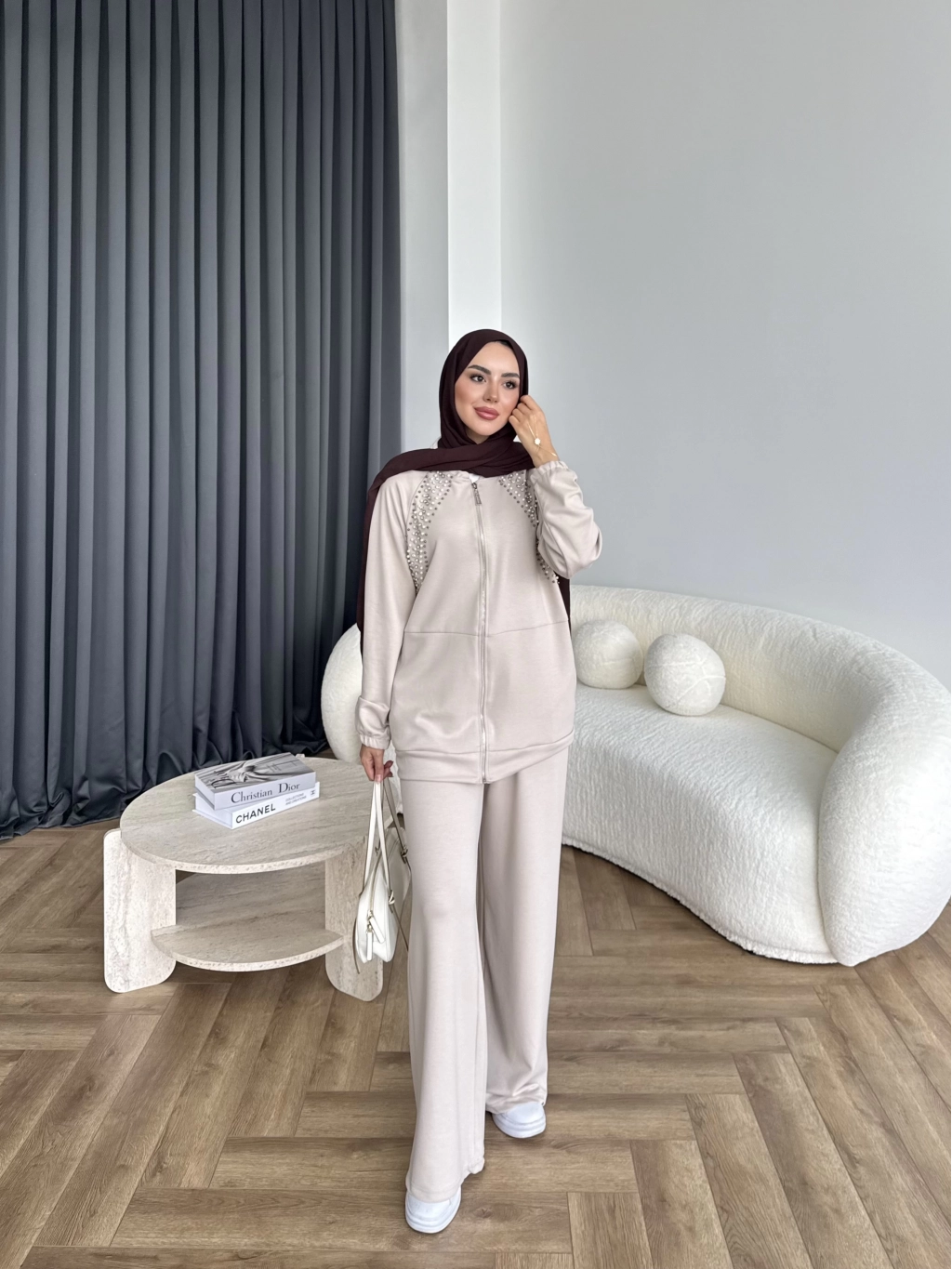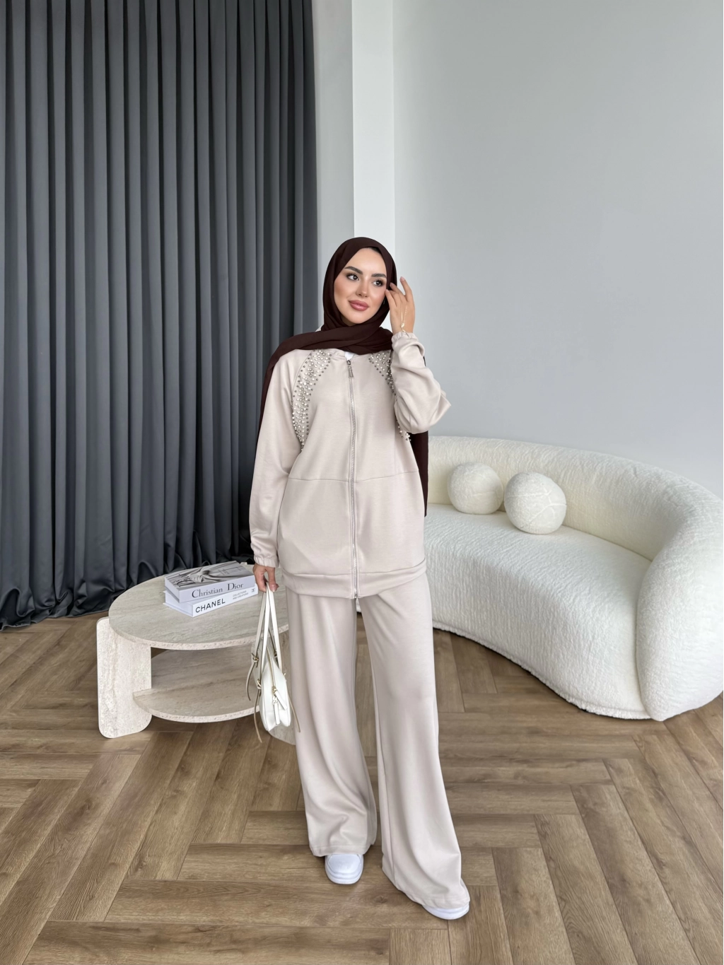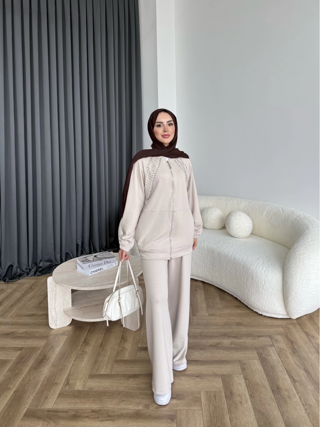 Rufina Taşlı Takım - Bej