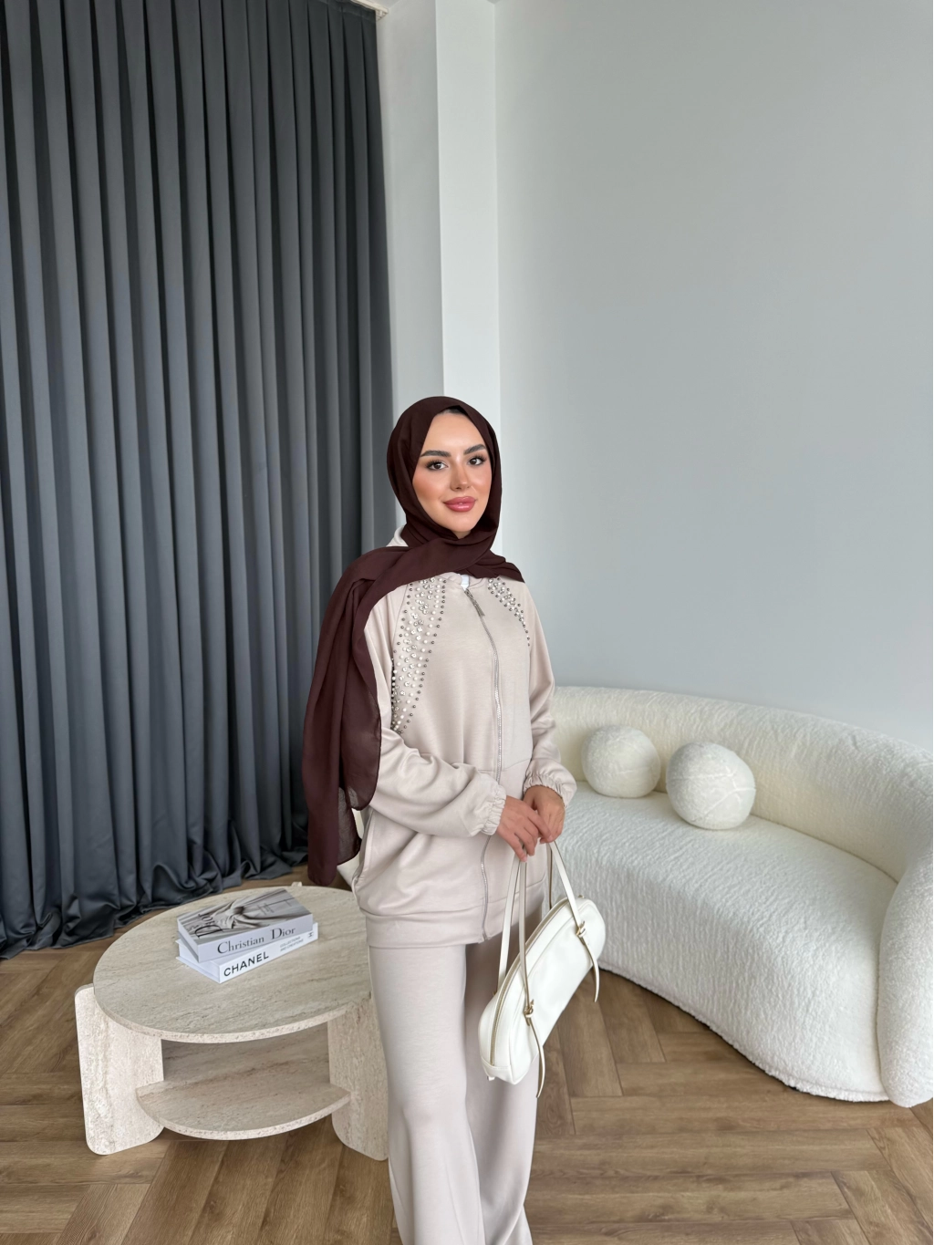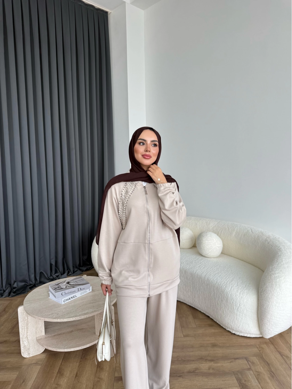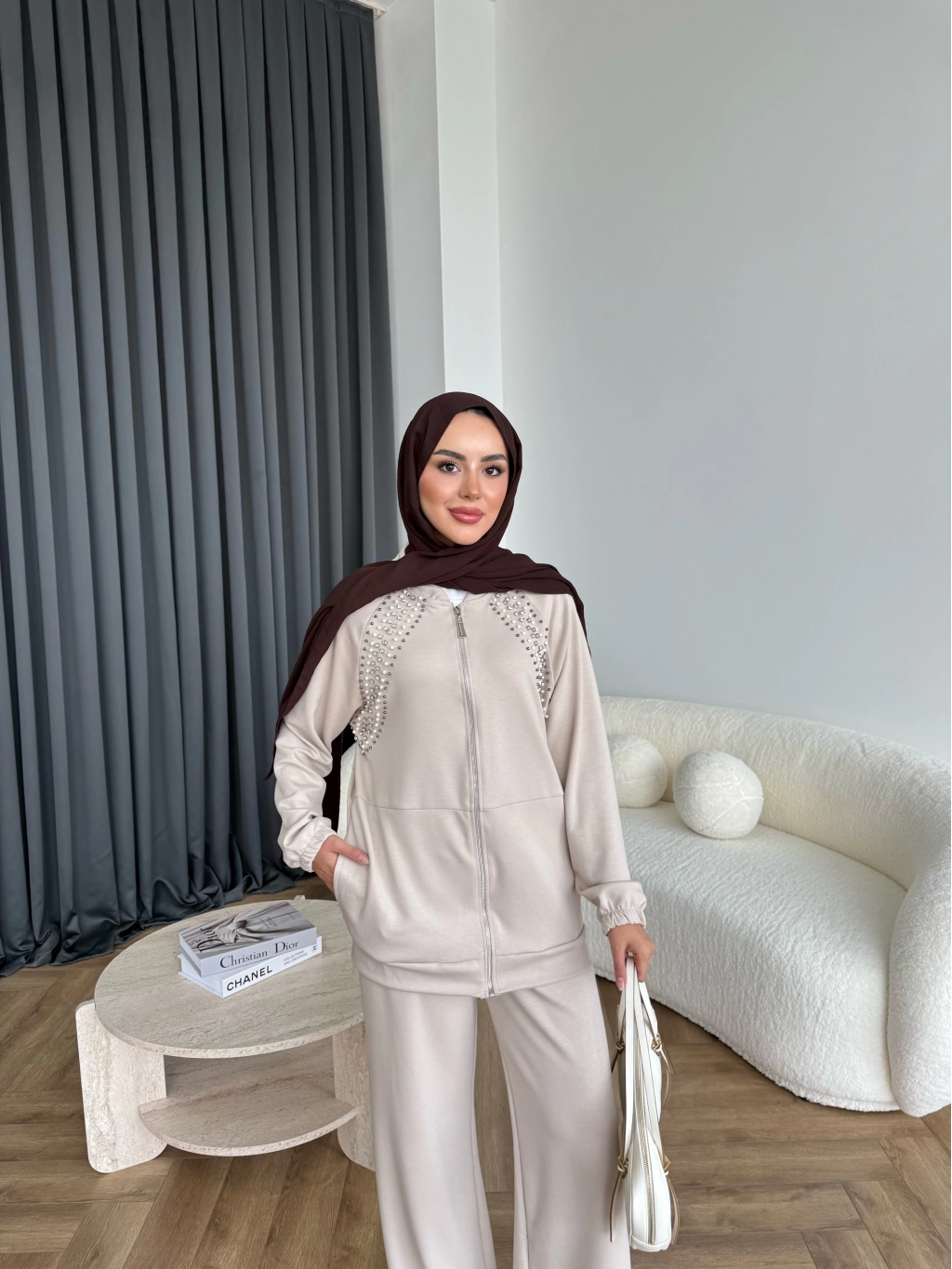 Rufina Taşlı Takım - Bej