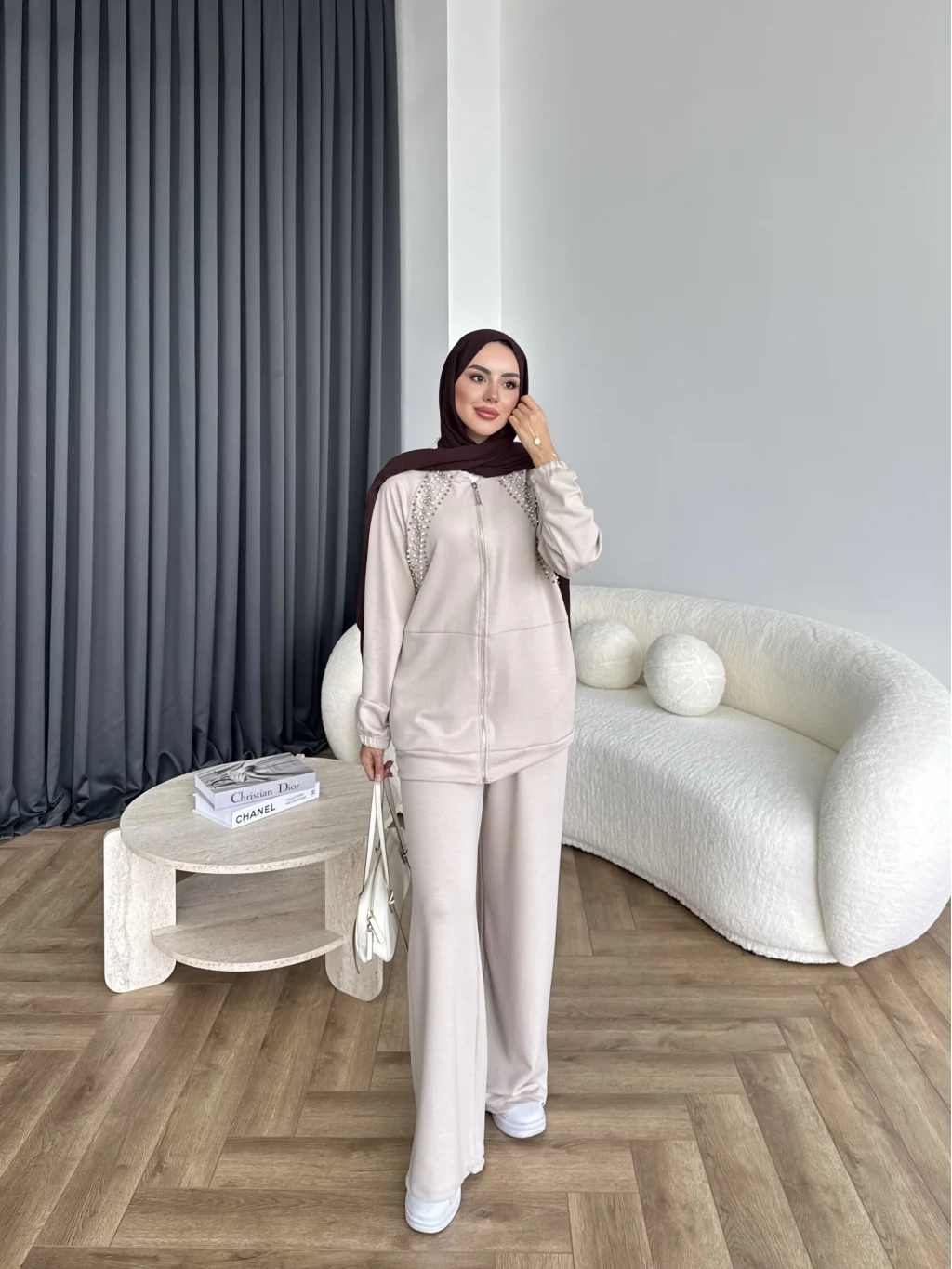 Gollan Fermuarlı Scuba Takım - Acı Kahve