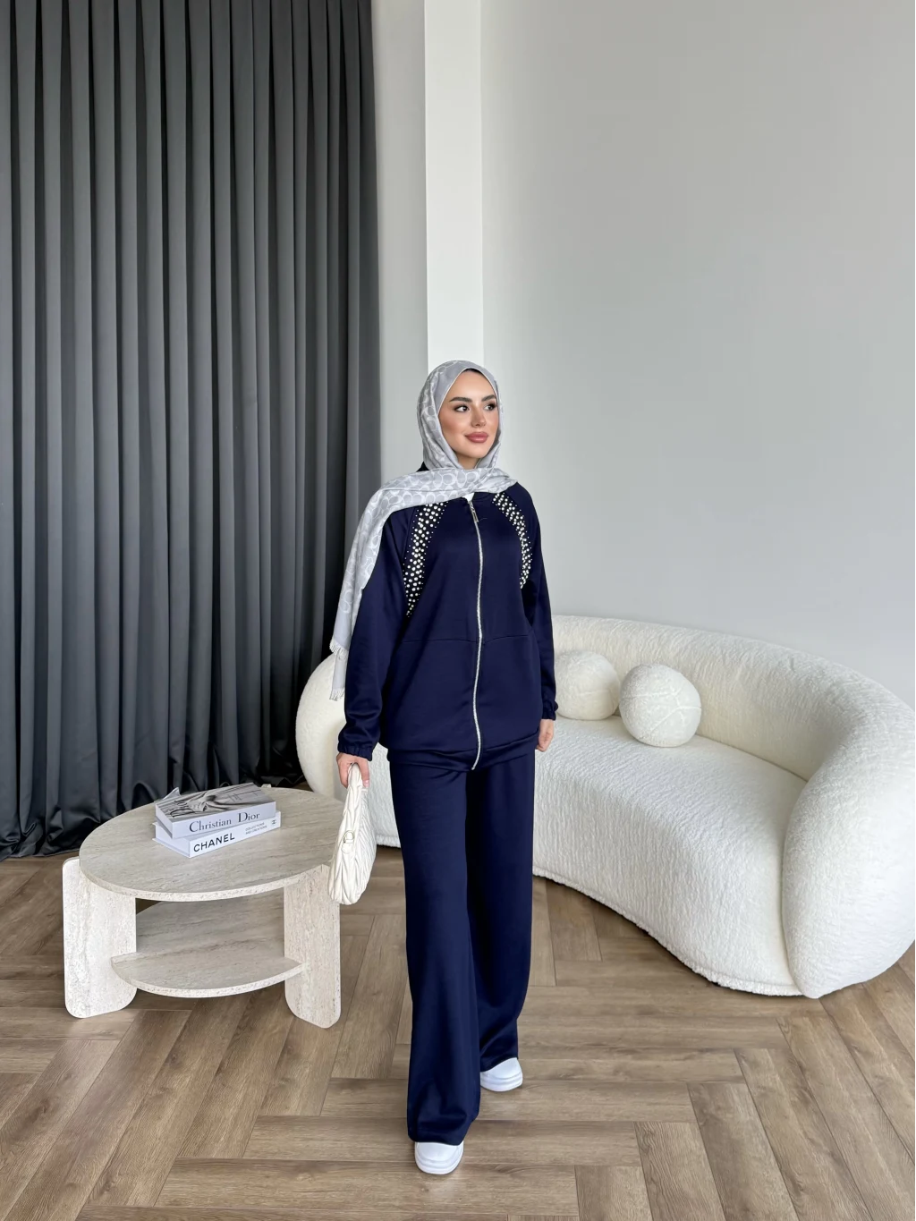 Gollan Fermuarlı Scuba Takım - Acı Kahve