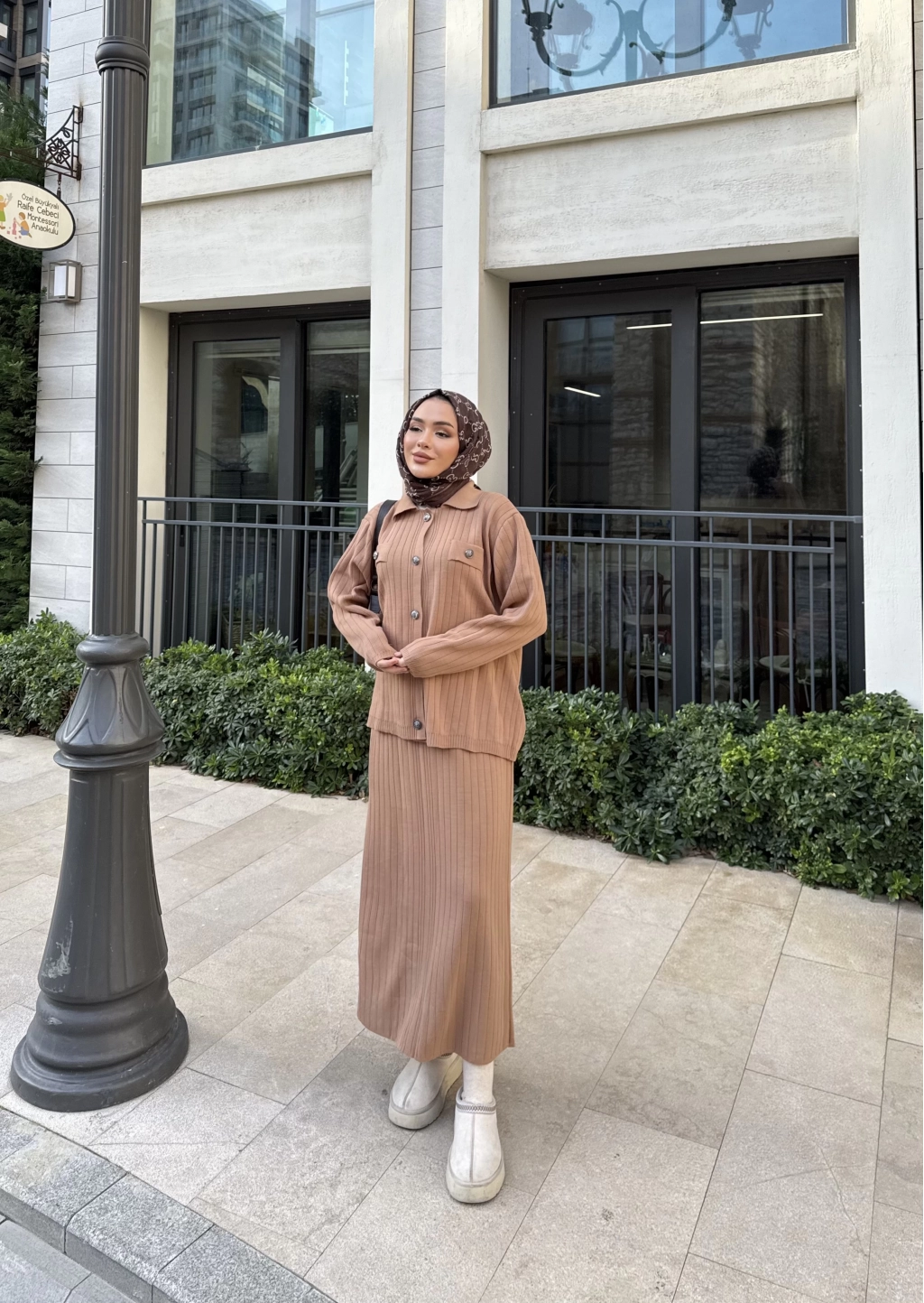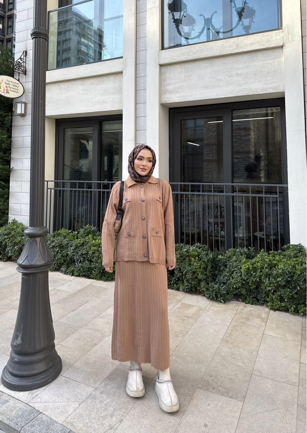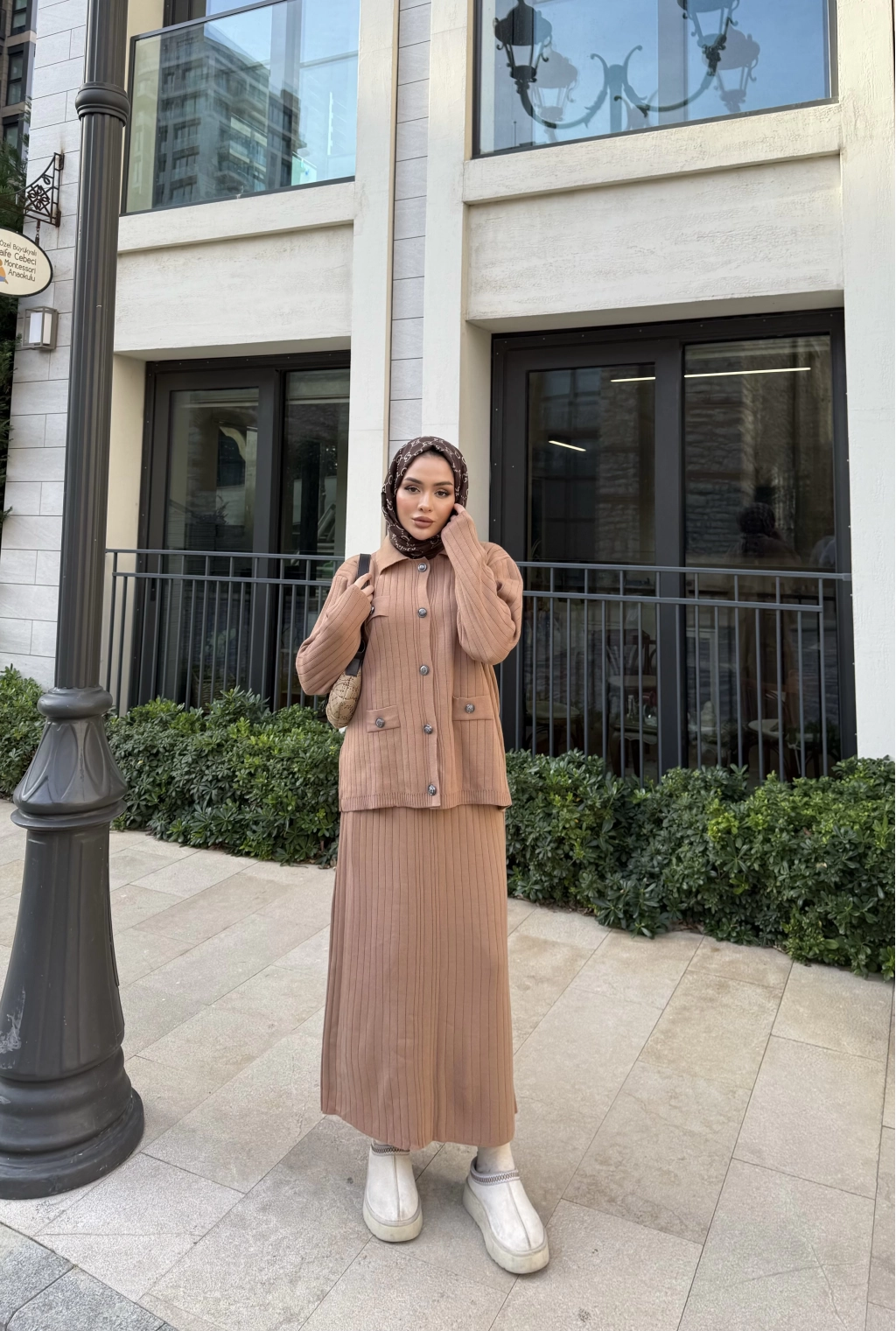 Mb - Atkı Örgü Etekli Takım - Acı Kahve