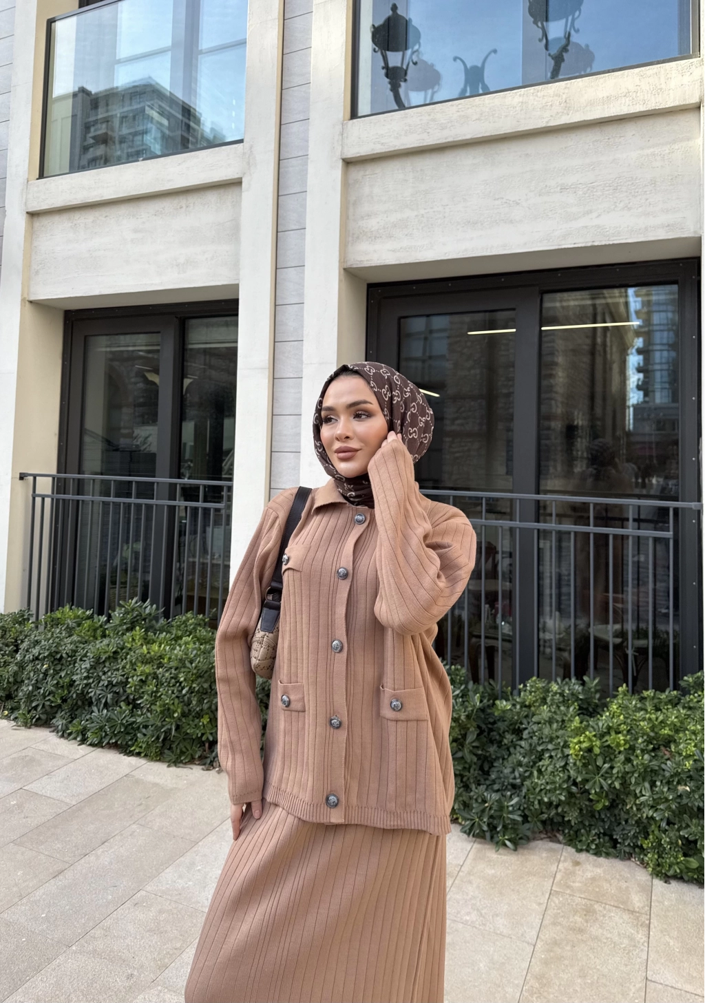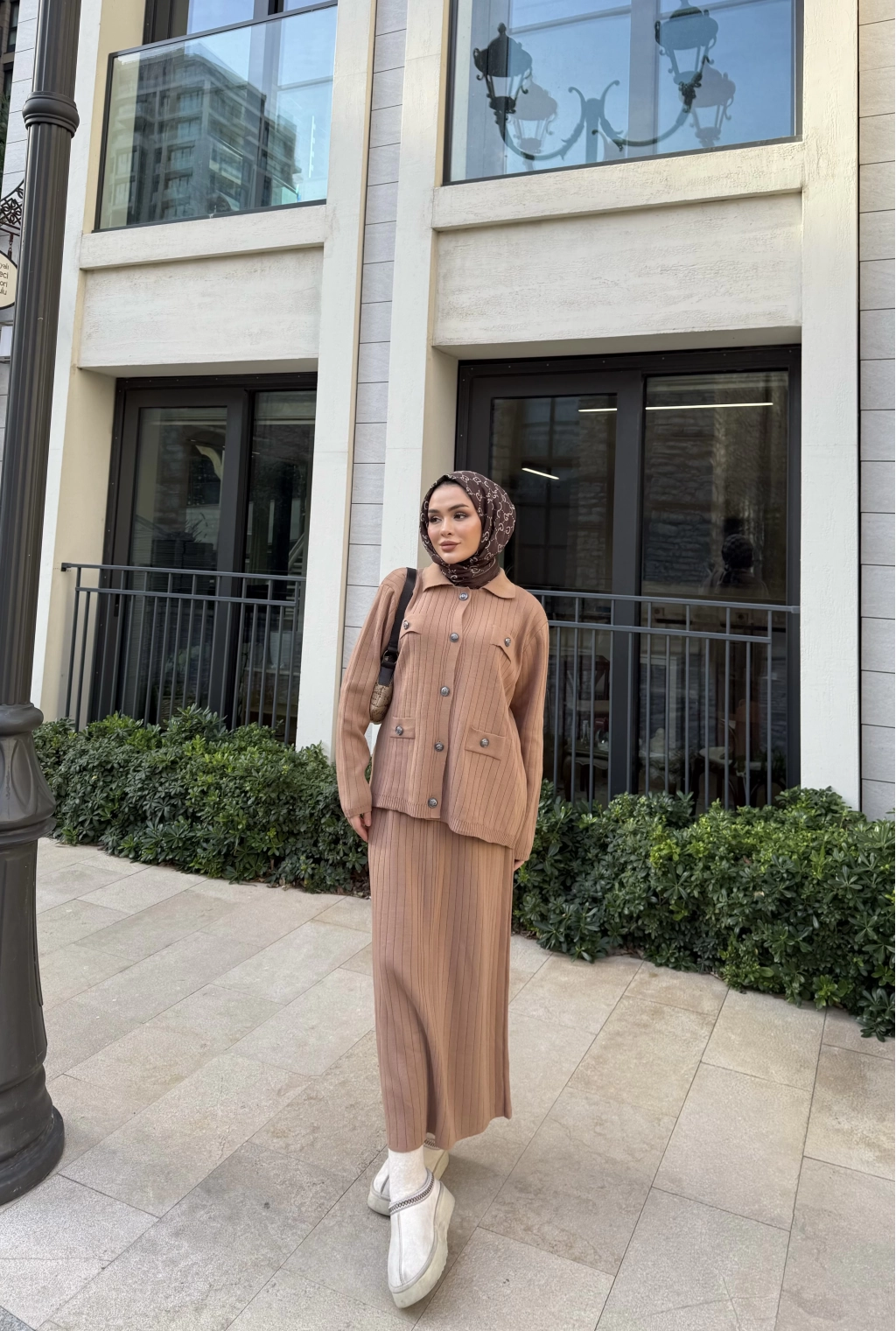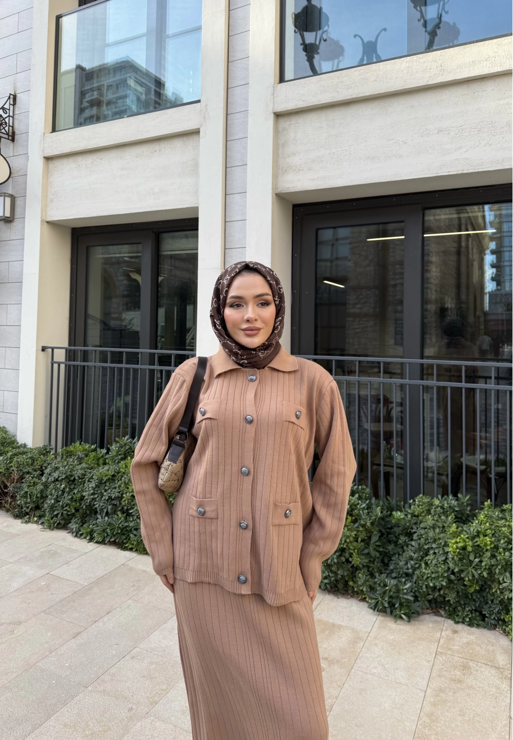 Mb - Atkı Örgü Etekli Takım - Acı Kahve