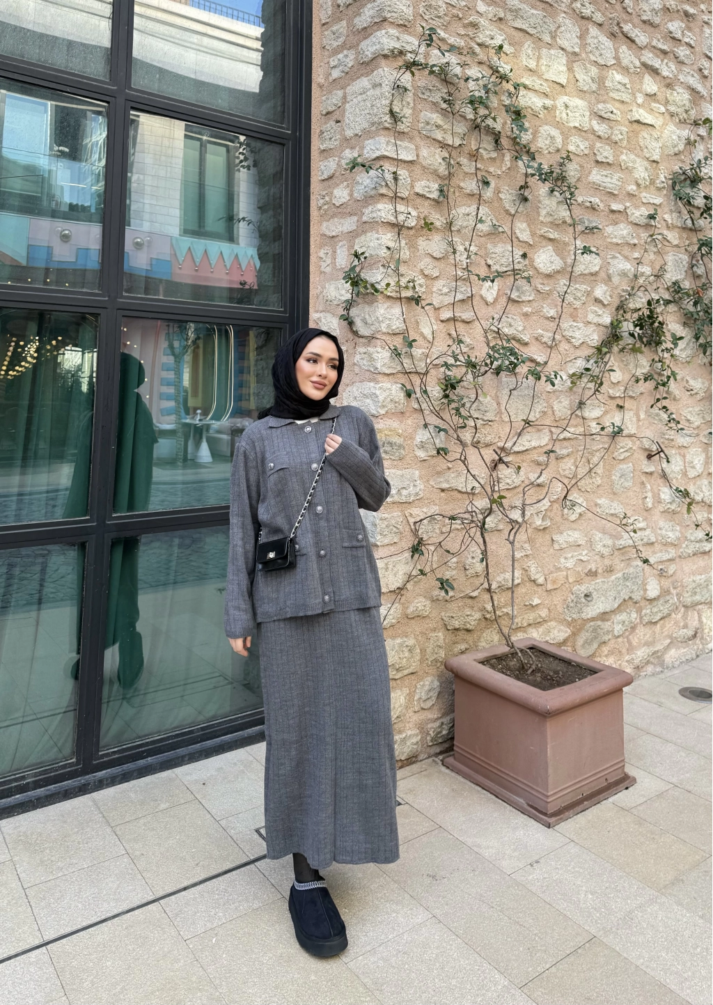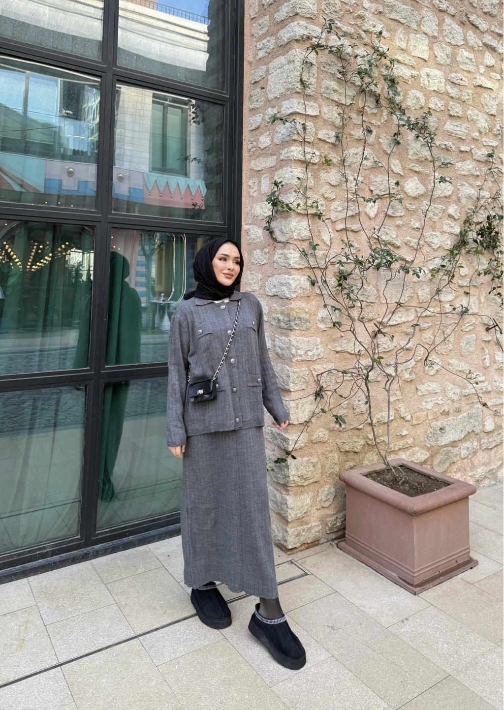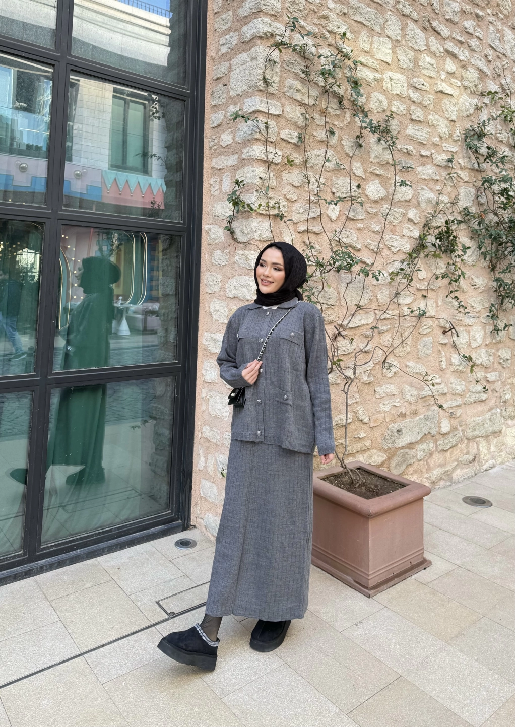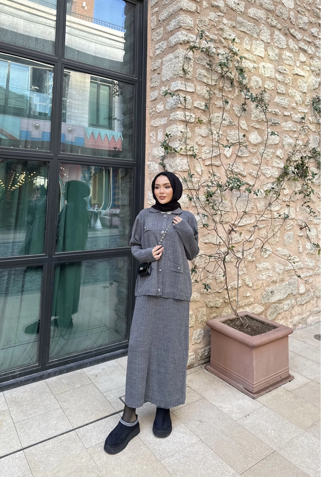 Sara Etekli Triko Takım - Gri