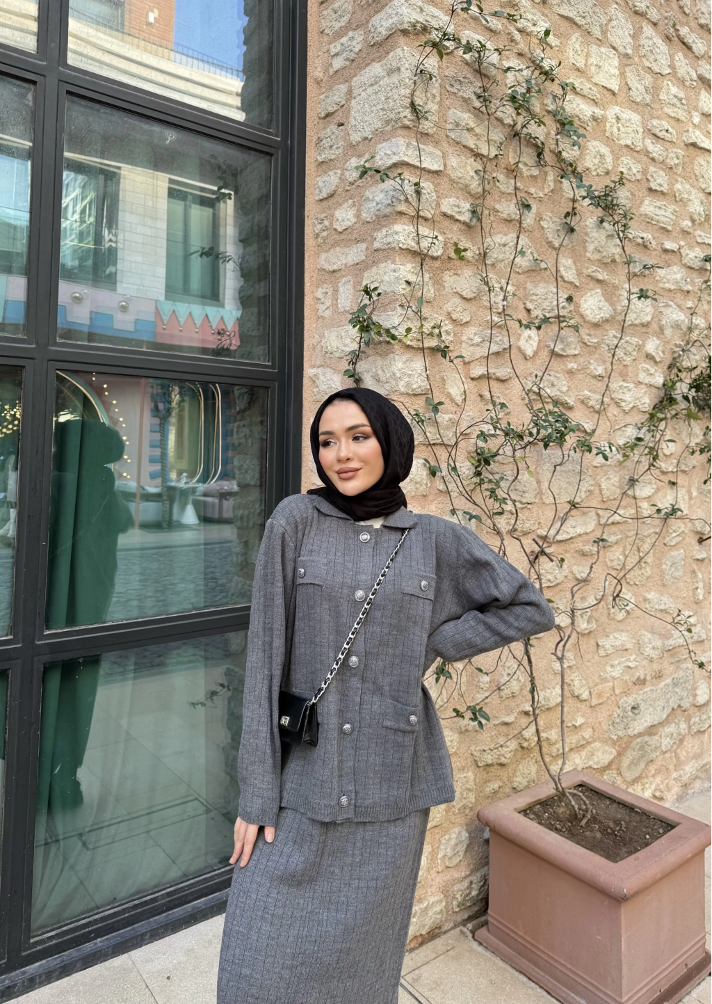 Mb- Berly Atkı Detay Triko Takım - Gri