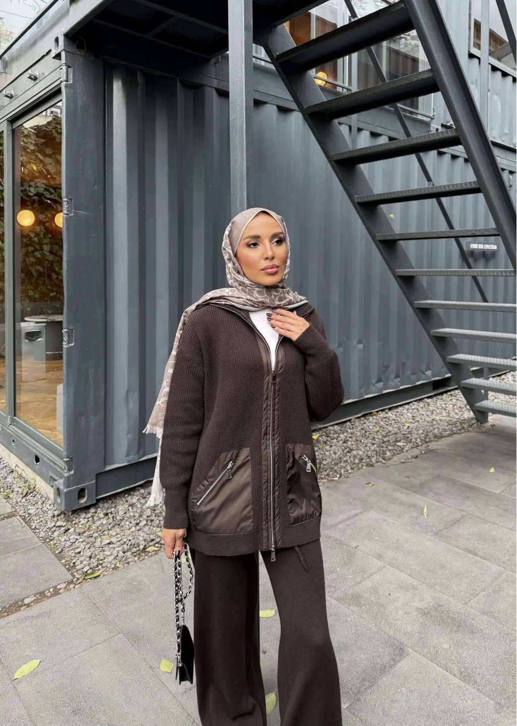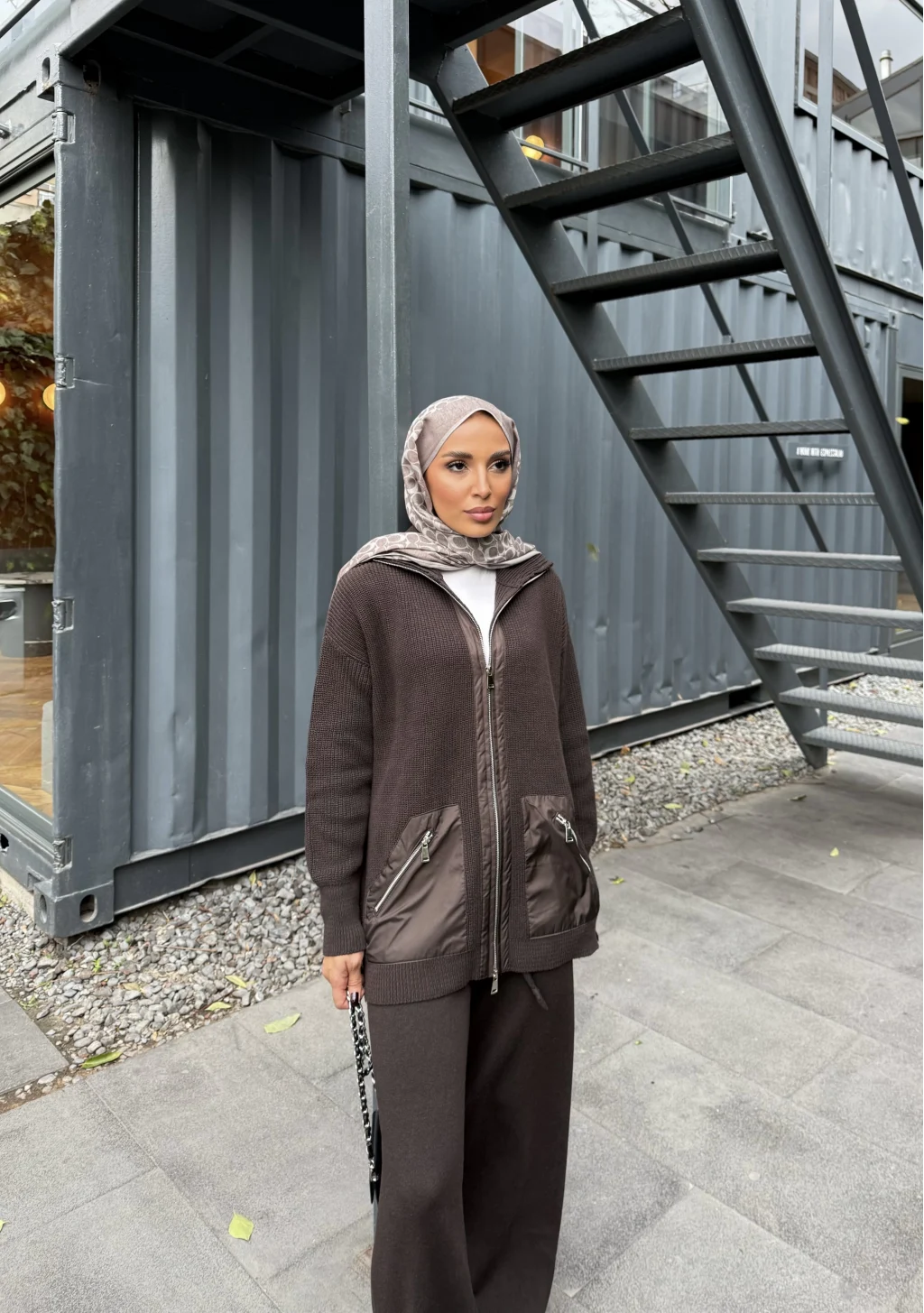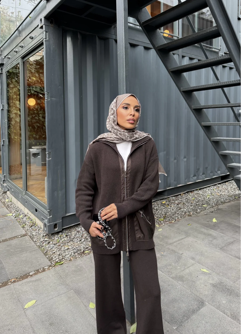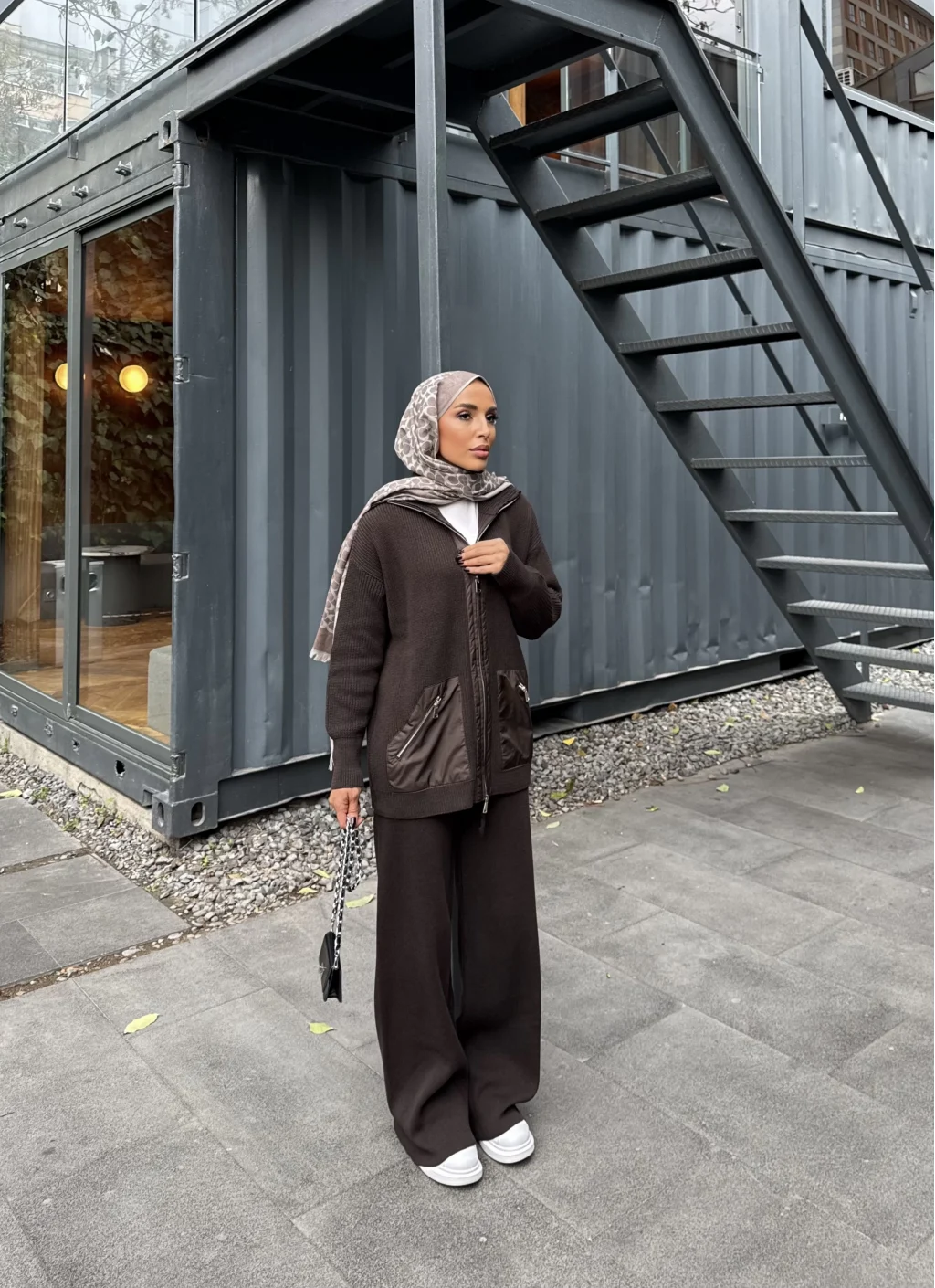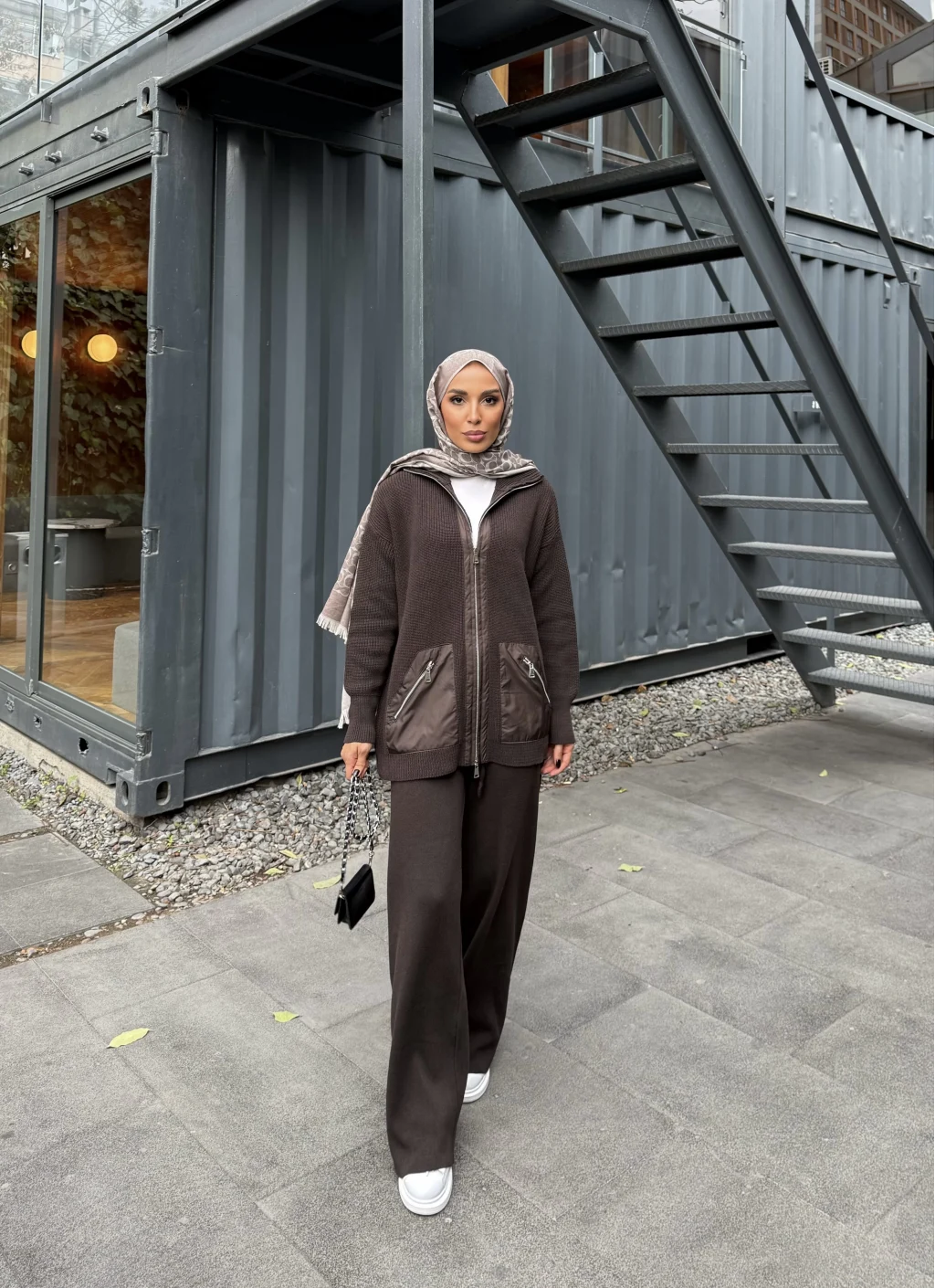 Selita Ön Fermuarlı Triko Takım - Acı Kahve