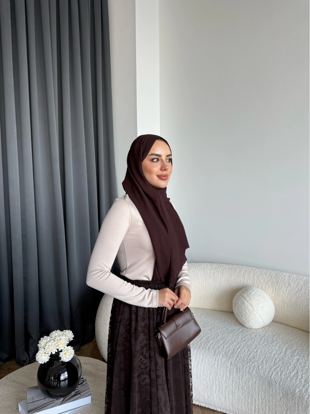 Hen - Luzy Şifon Elbise - Kahve