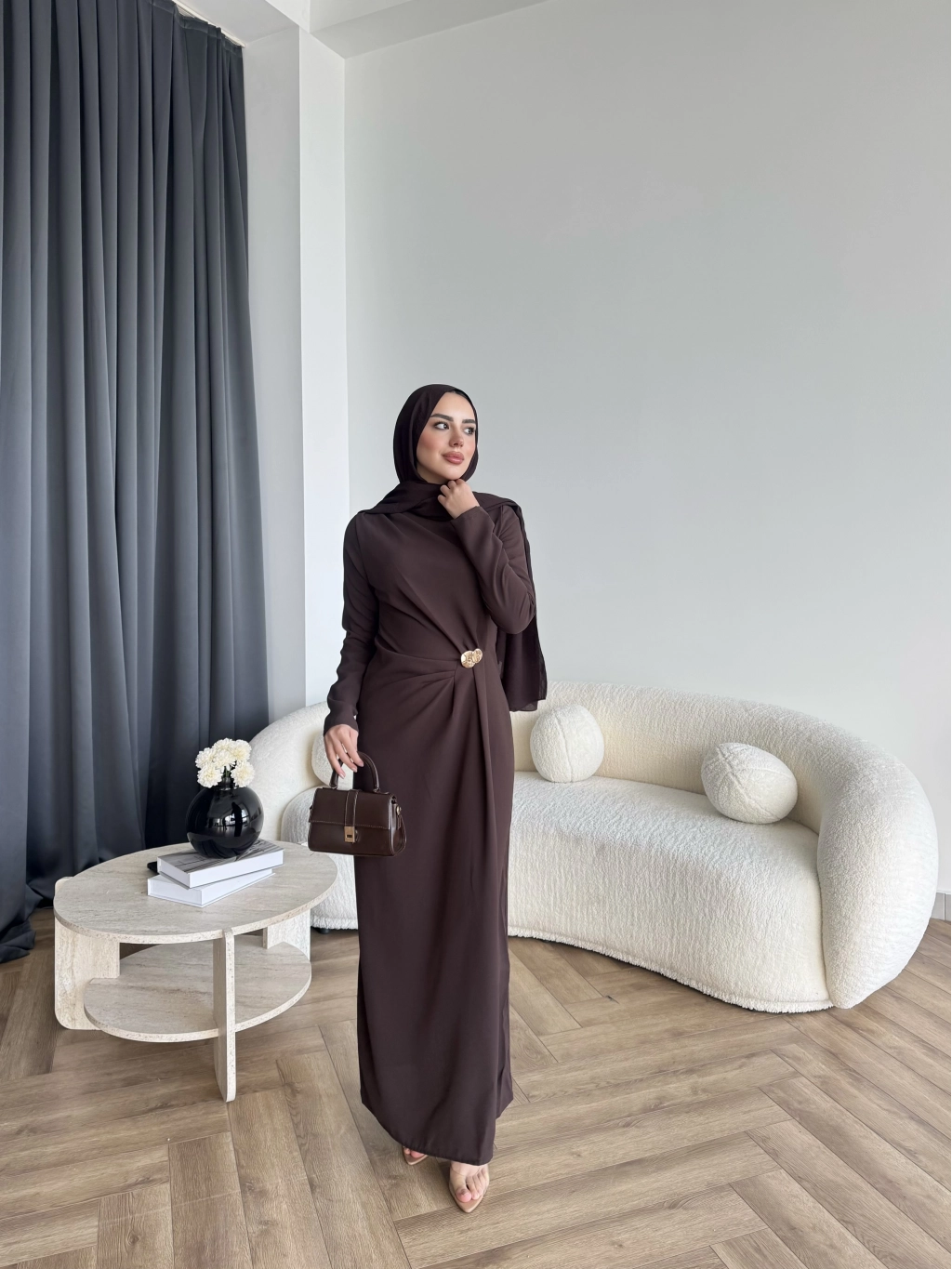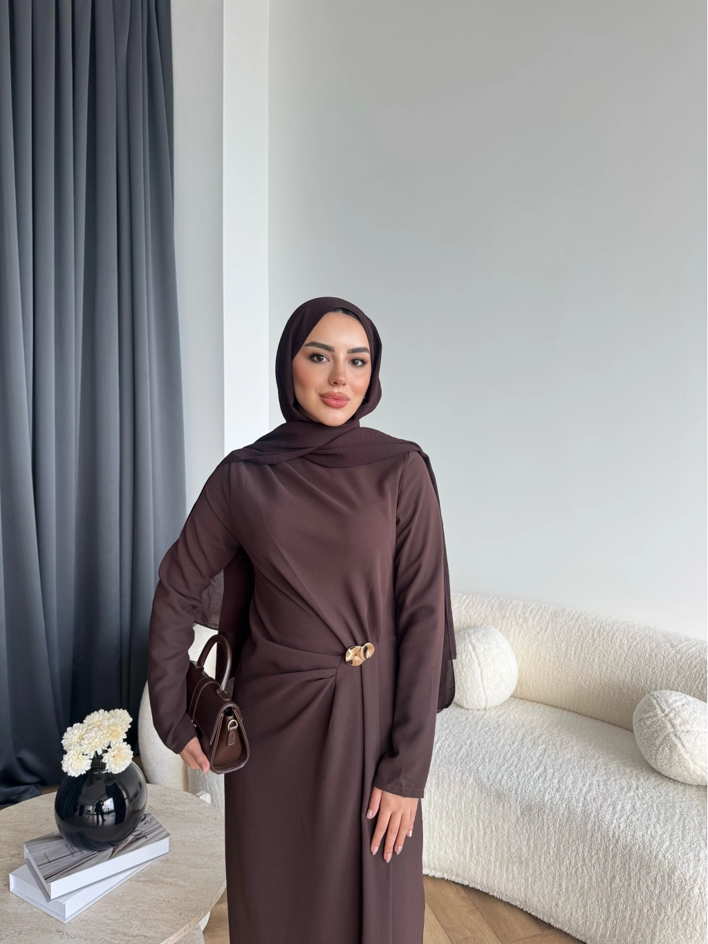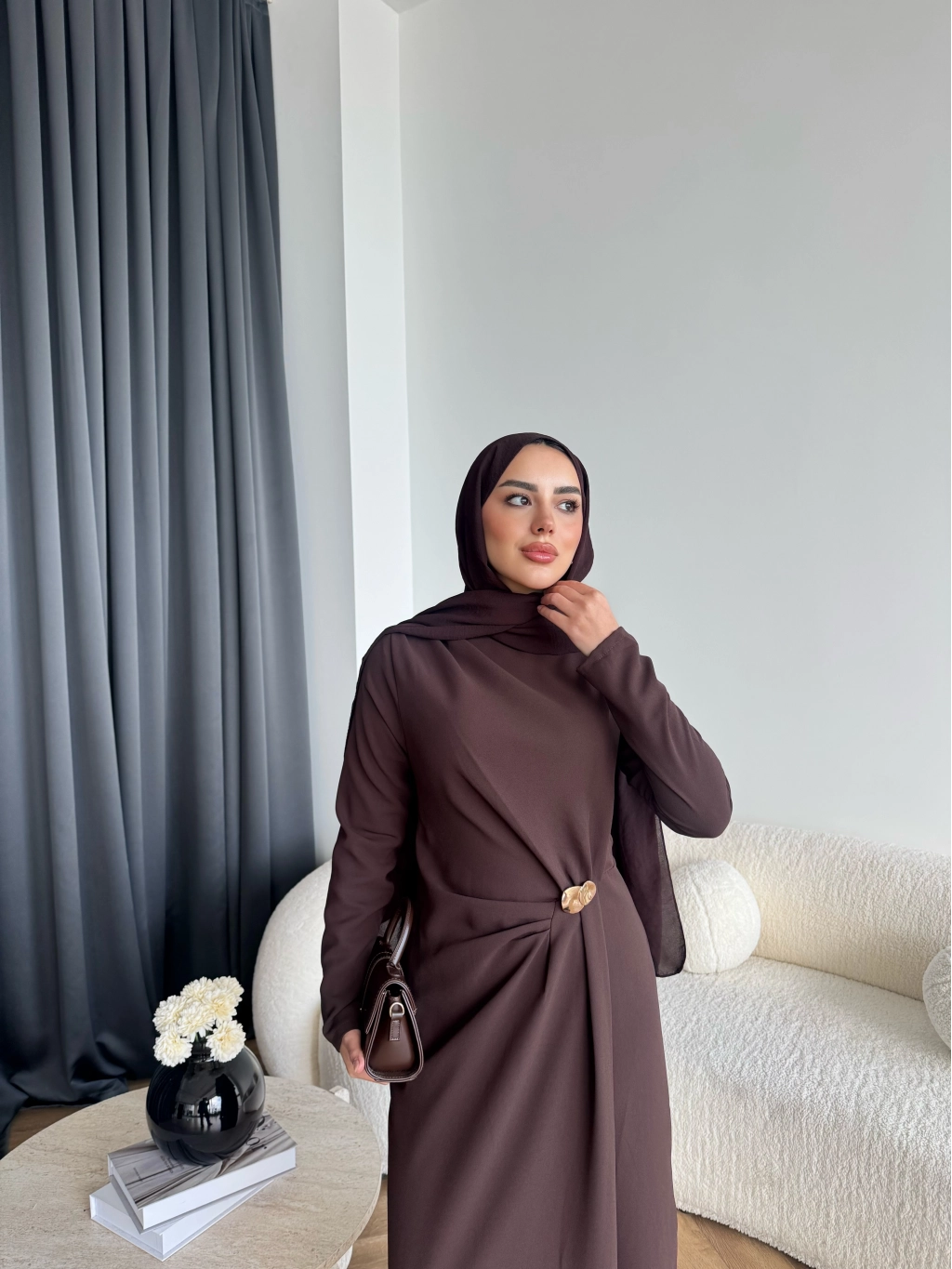 Sılan Yan Detaylı Elbise - Acı Kahve