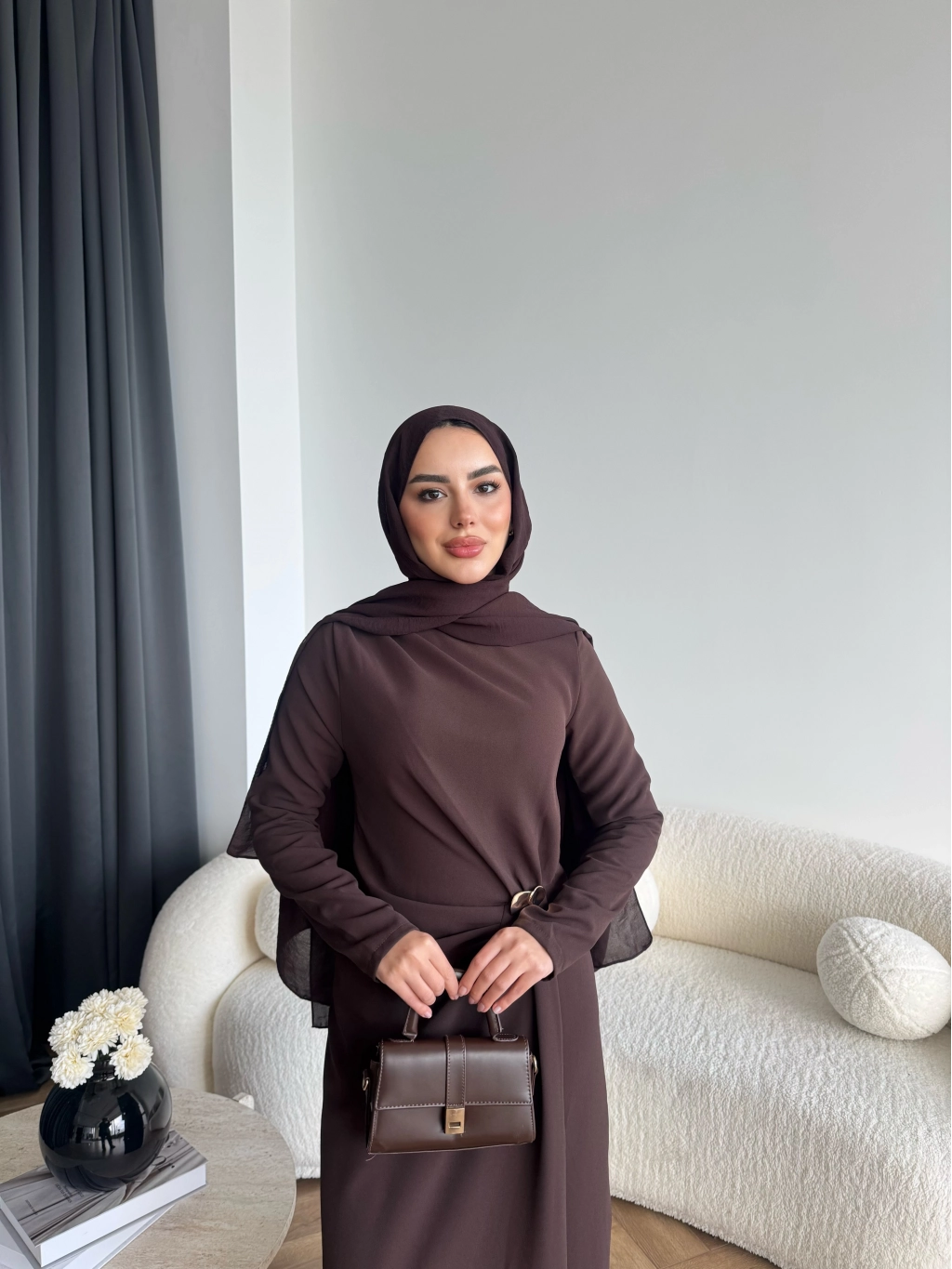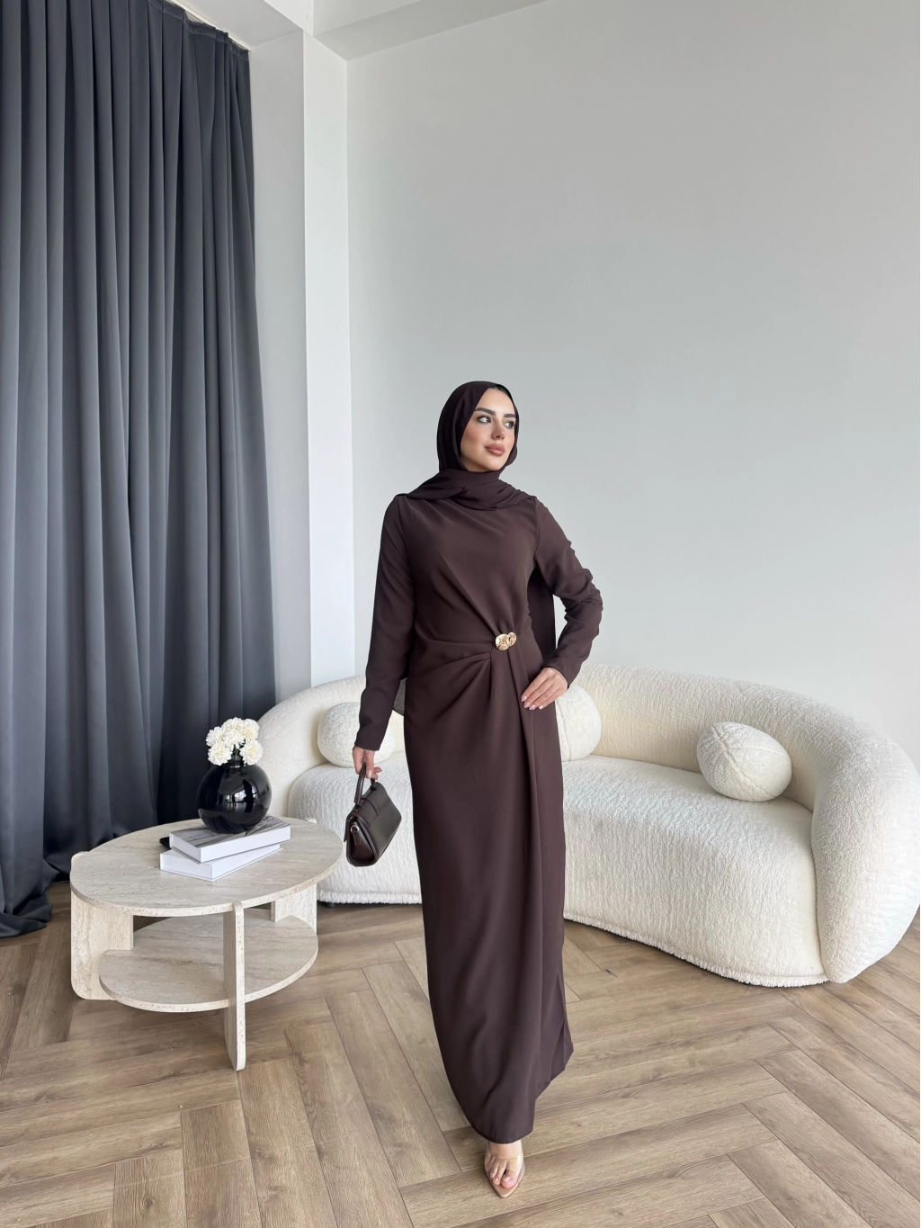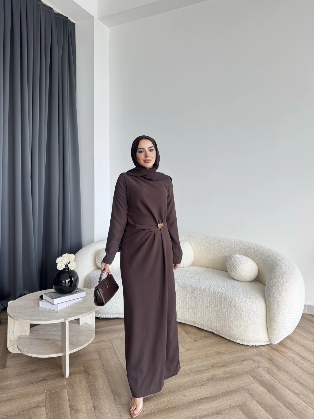 Sılan Yan Detaylı Elbise - Acı Kahve