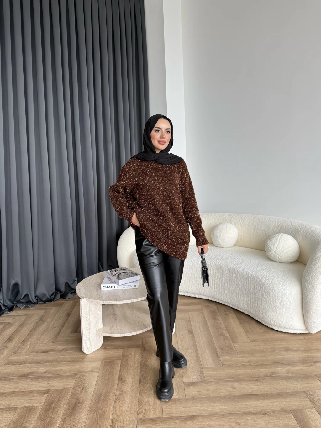 Polo Yaka Örgü Triko Takım - Acı Kahve