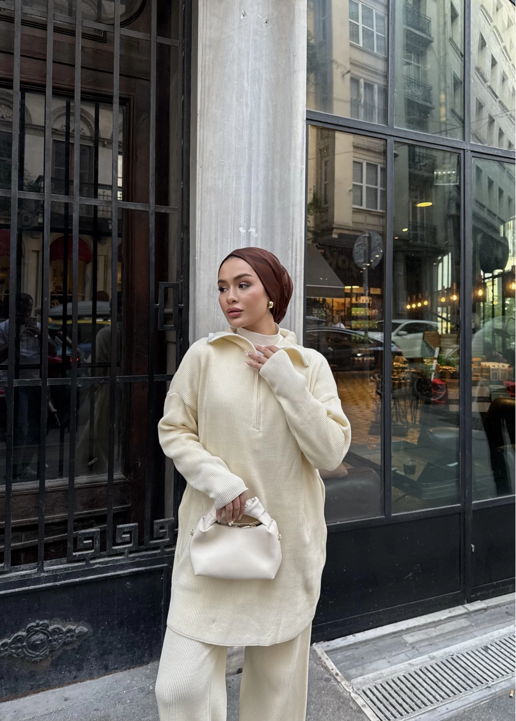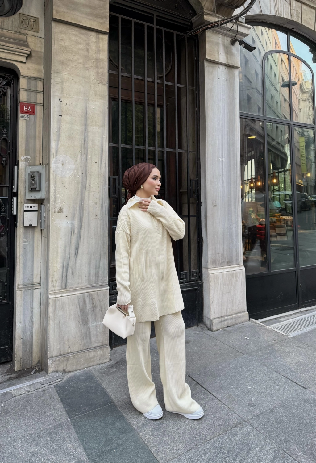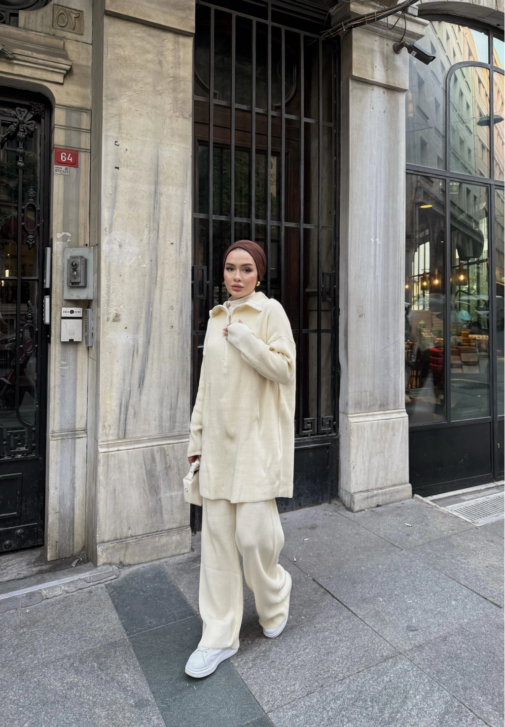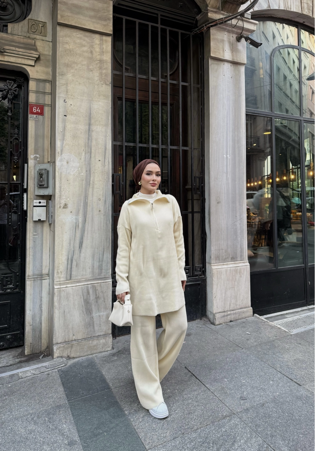 Sonbahar/kış sezonunda tercih edilen triko kumaştan üretilmiştir. Ön kısmı fermuarlı ve Salaş bir kalıba Sahiptir Pantolon beli lastikli dir