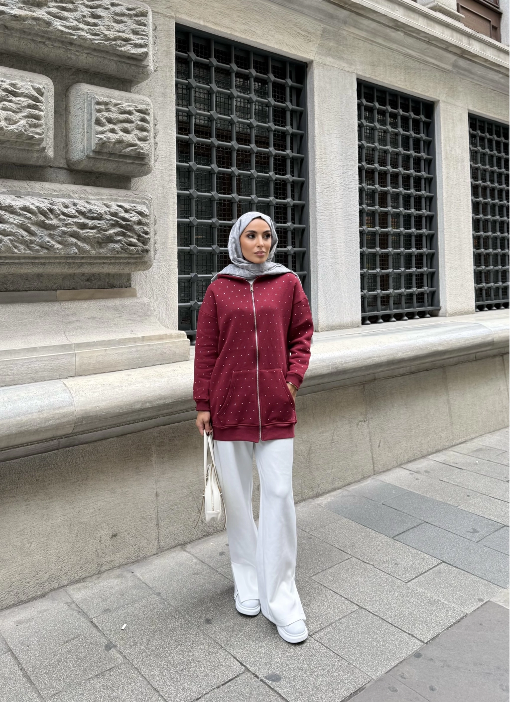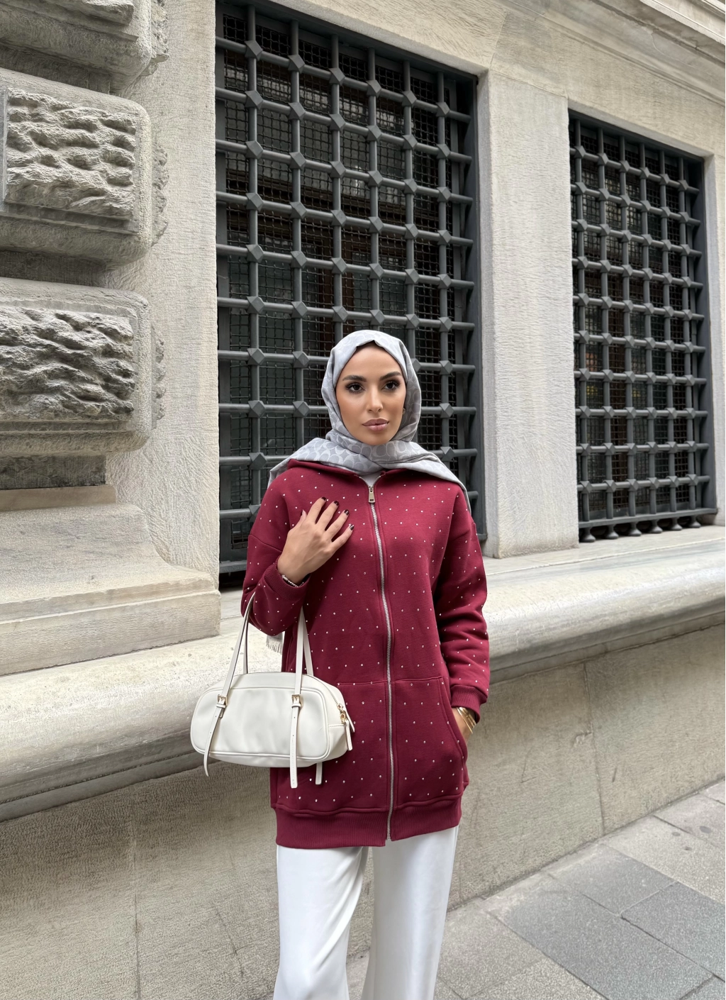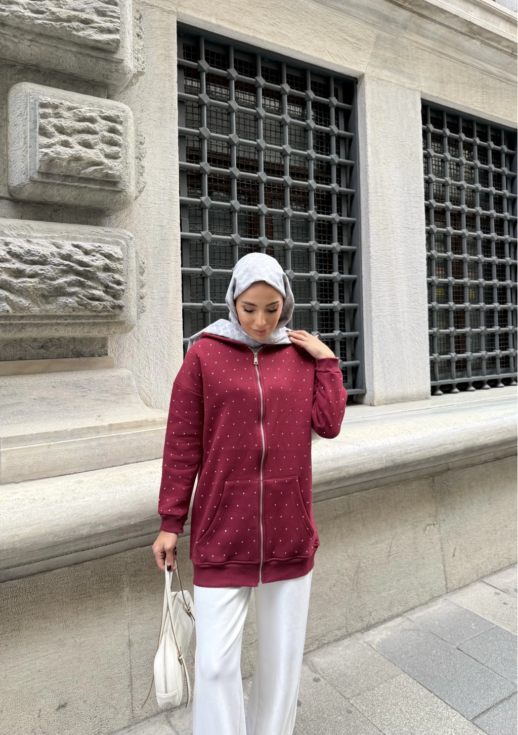 Soul Taşlı Hırka - Bordo