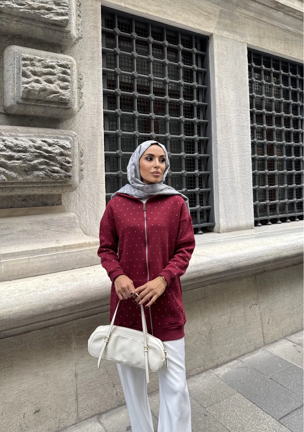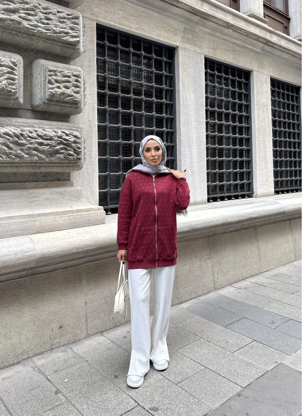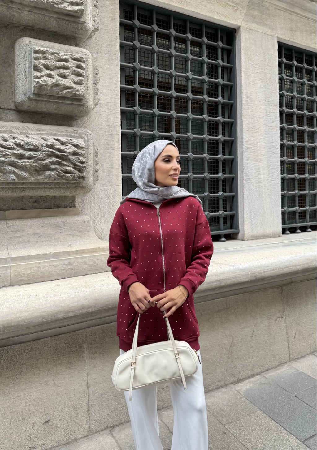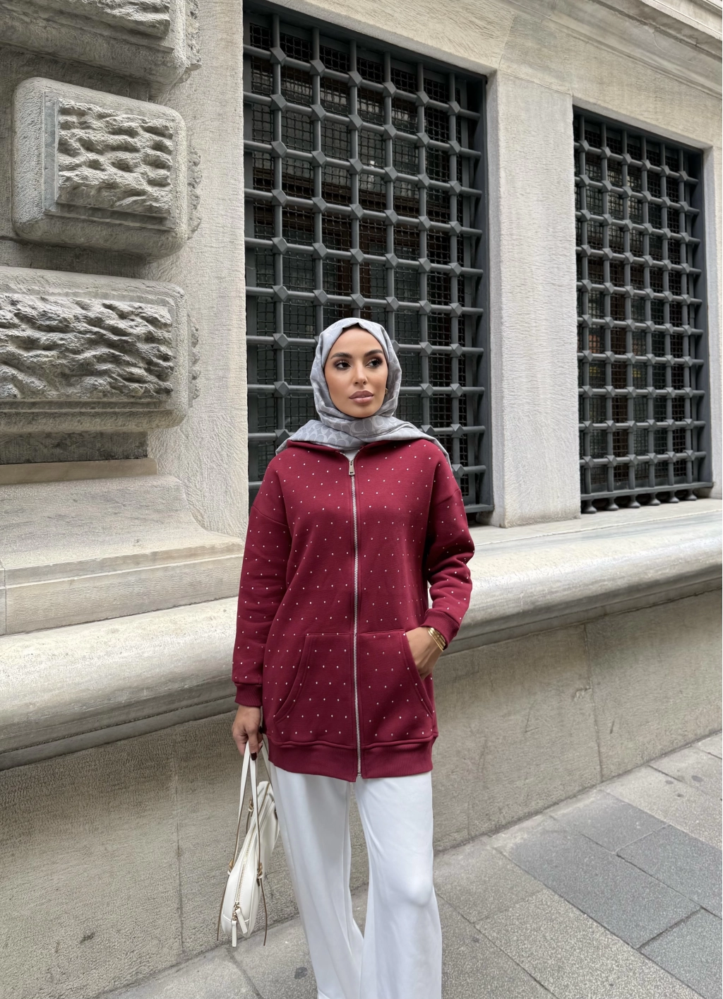 Soul Taşlı Hırka - Bordo