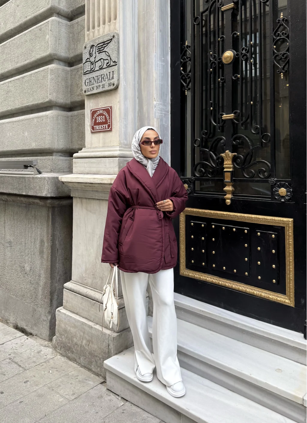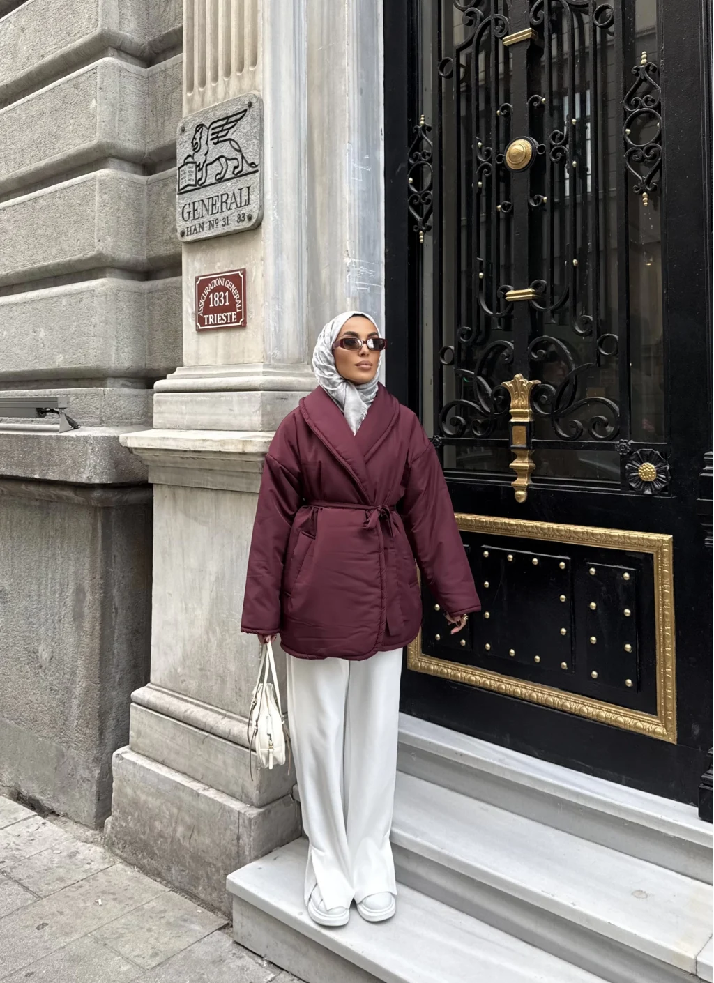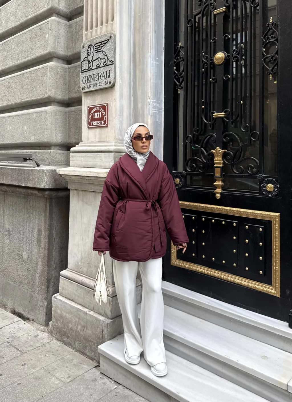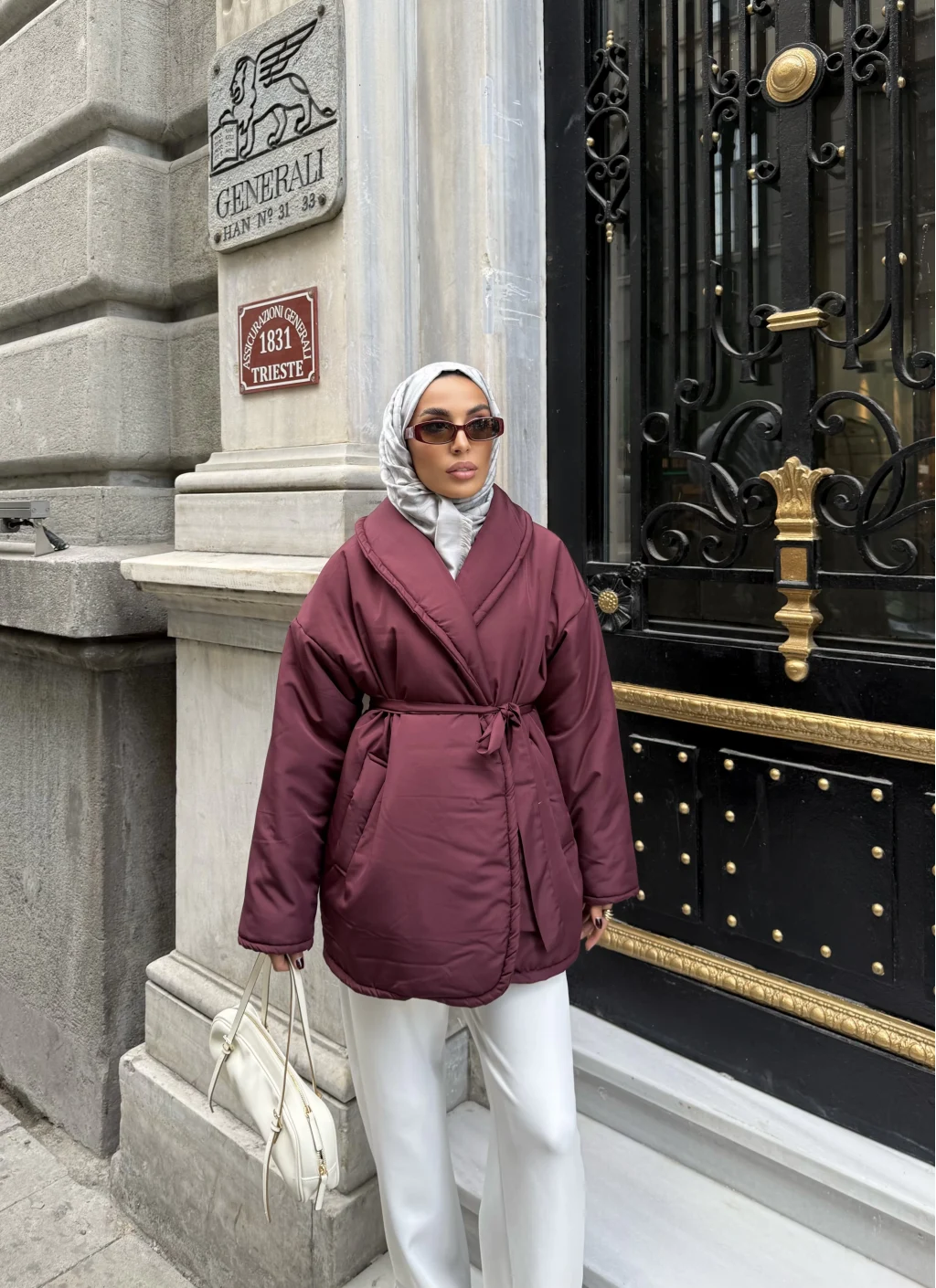 Dinas Kürk Detaylı Kaşe Mont - Acı Kahve