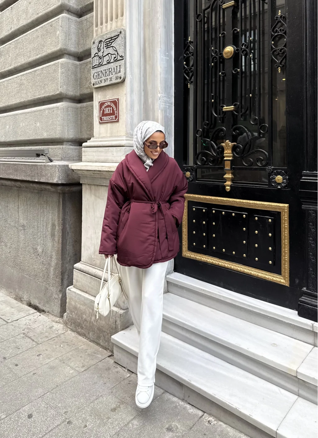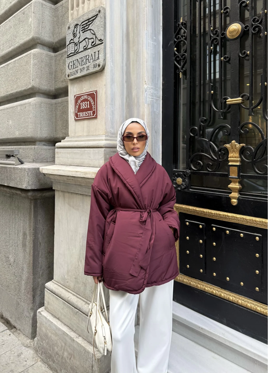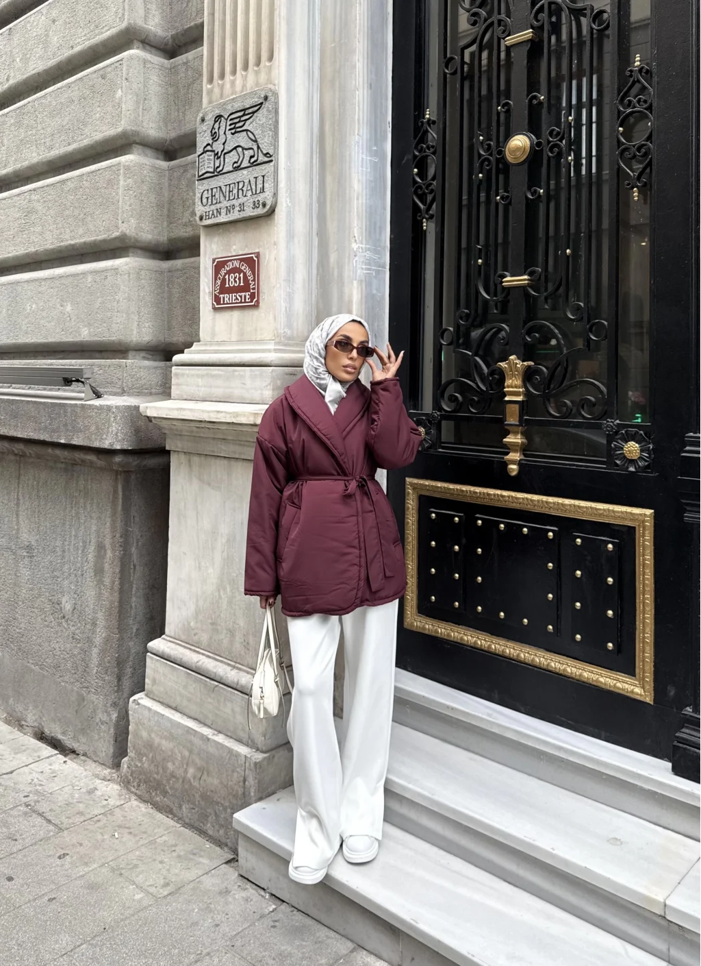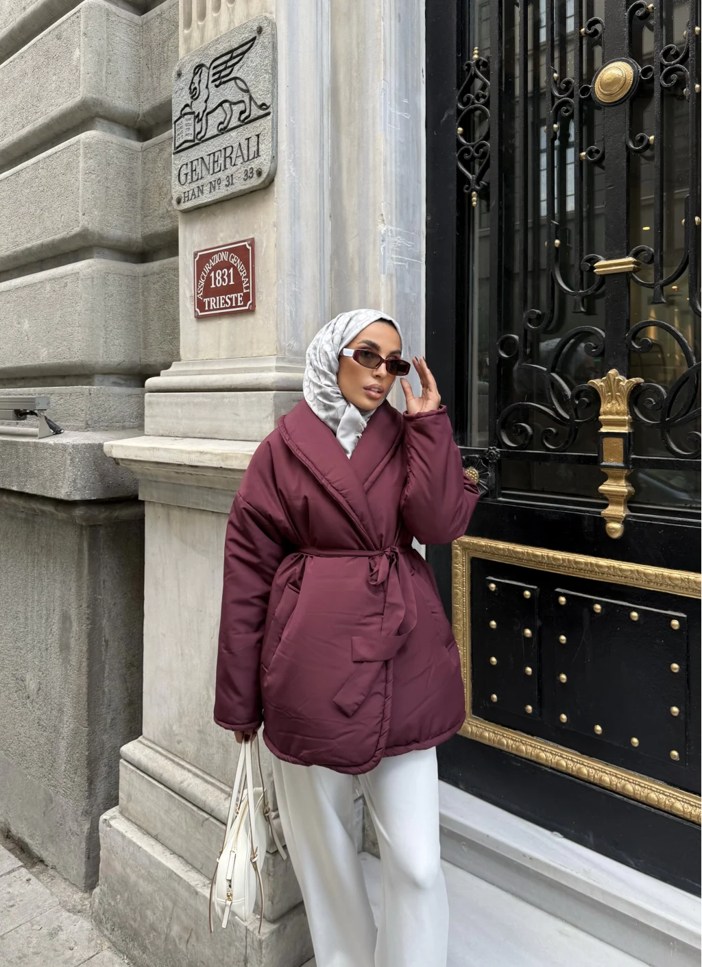 Dinas Kürk Detaylı Kaşe Mont - Acı Kahve