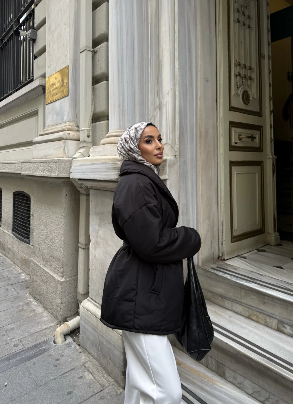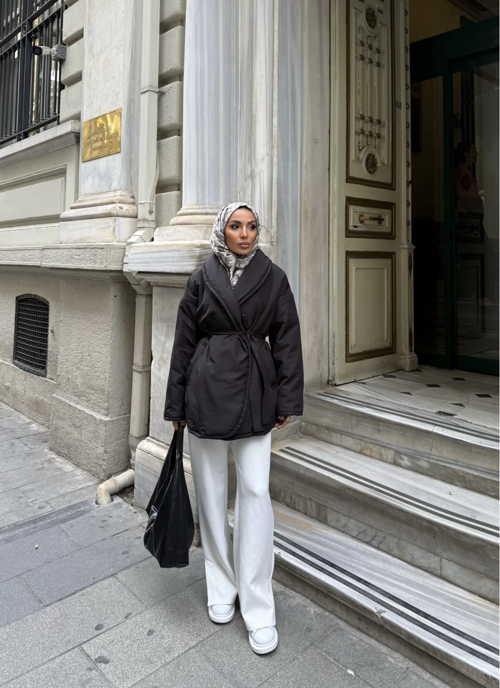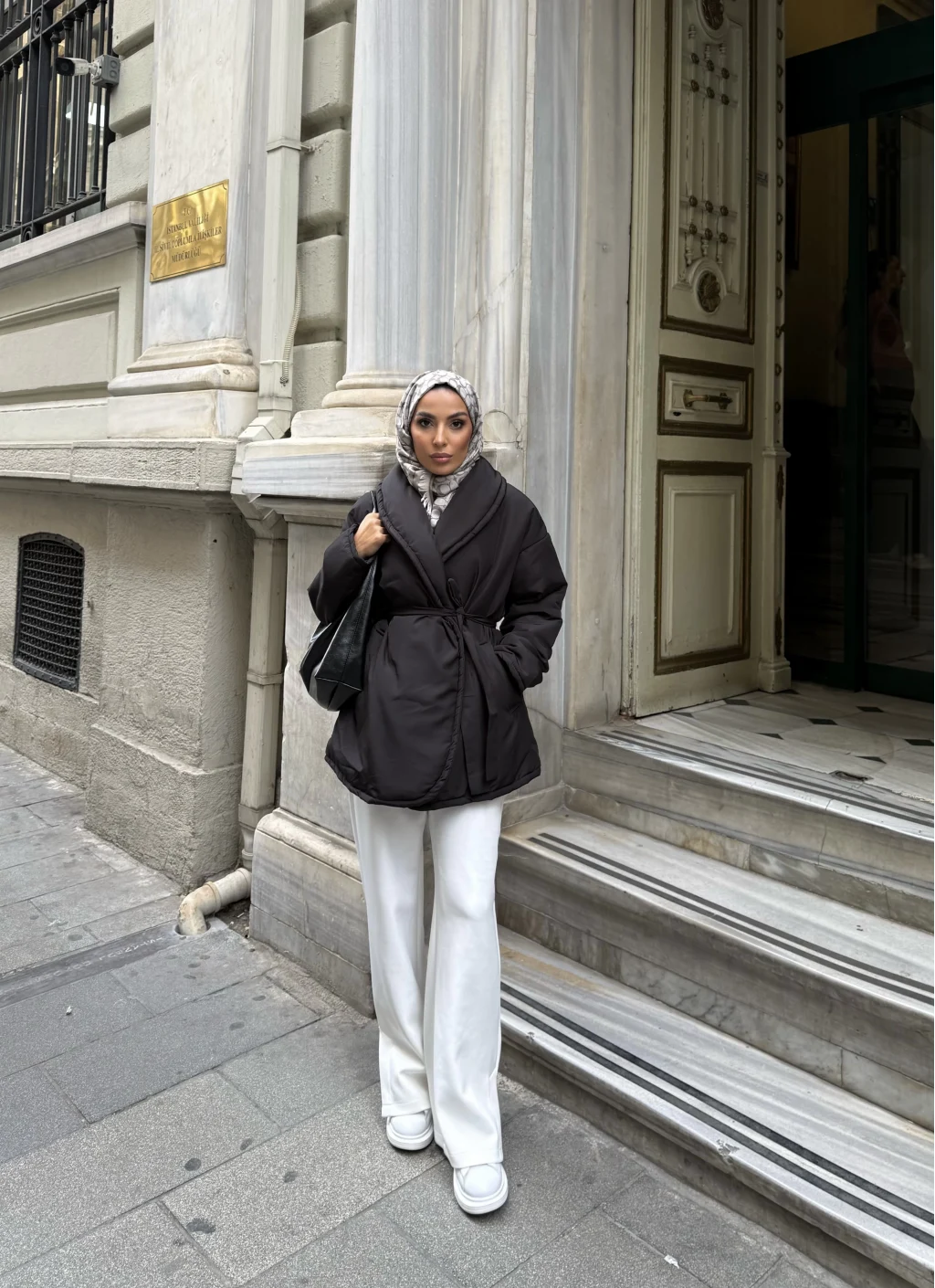 Dinas Kürk Detaylı Kaşe Mont - Acı Kahve