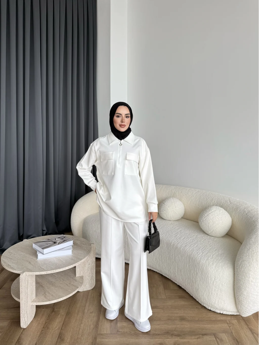 Yanı Kesik Paça Scuba Pantolon - Acı Kahve