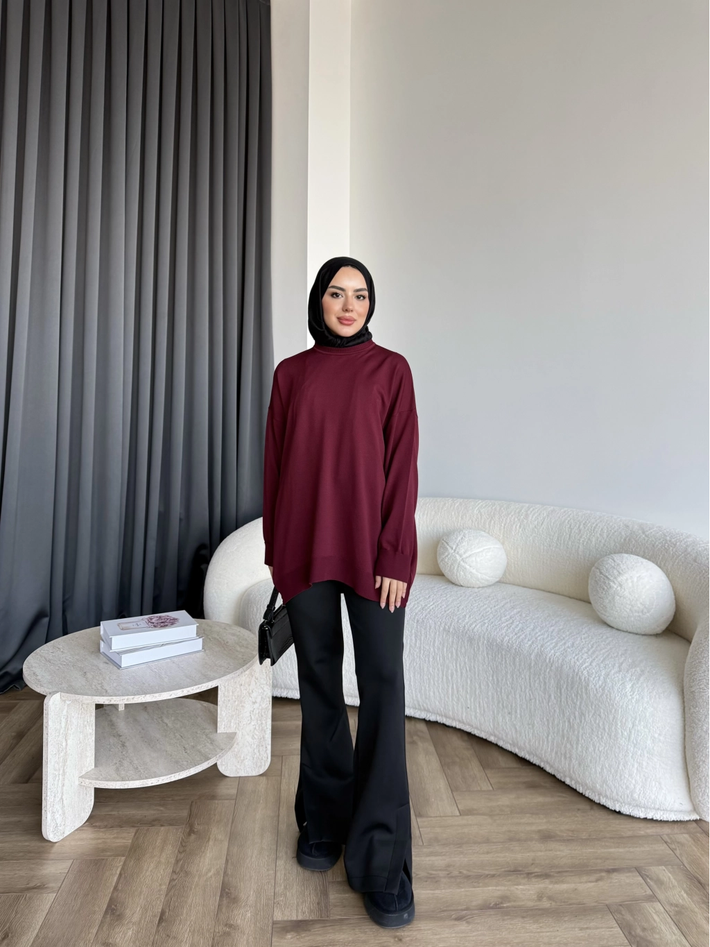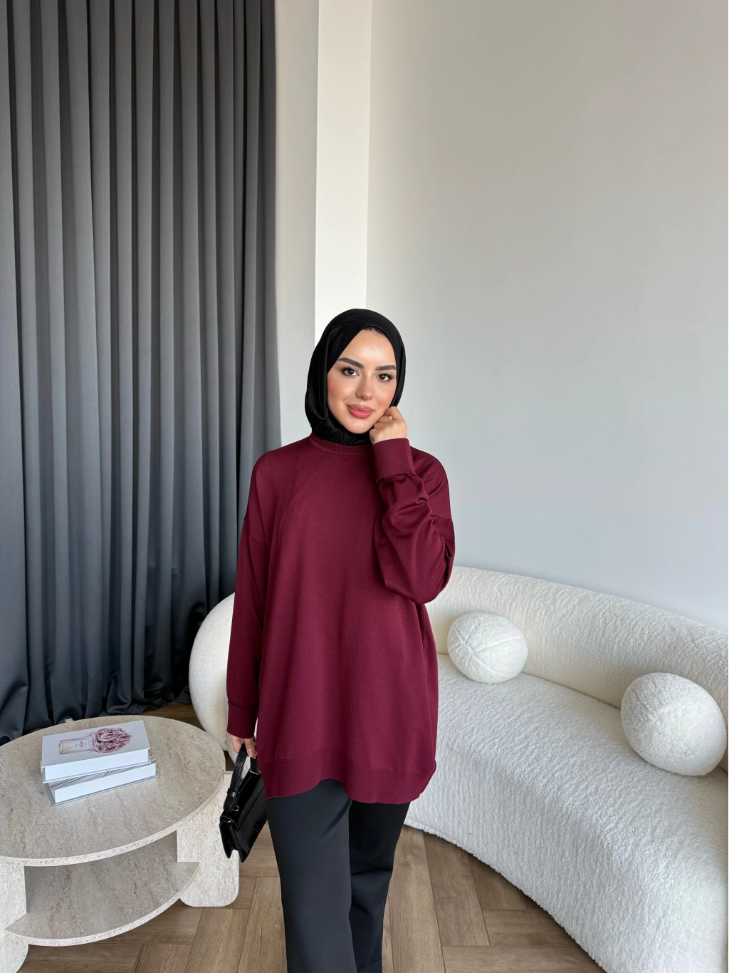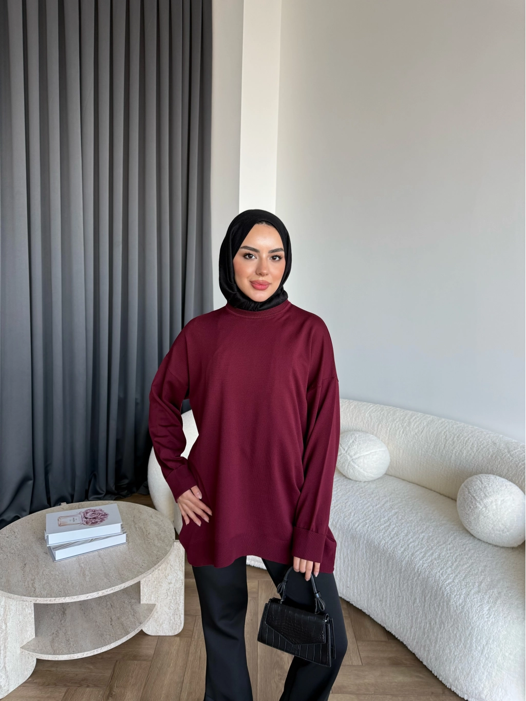 Sümy Kol Katlamalı Triko Kazak - Bordo