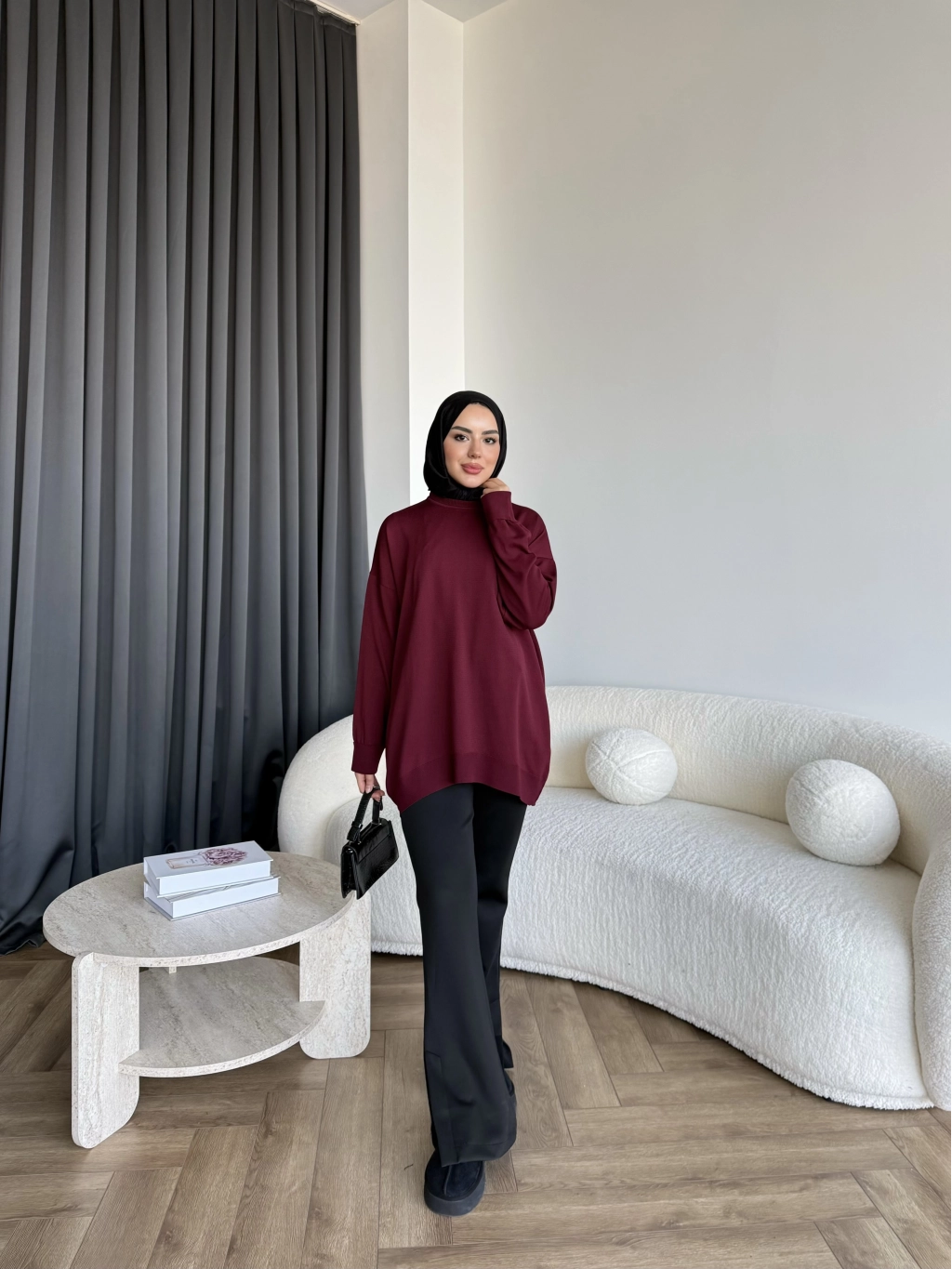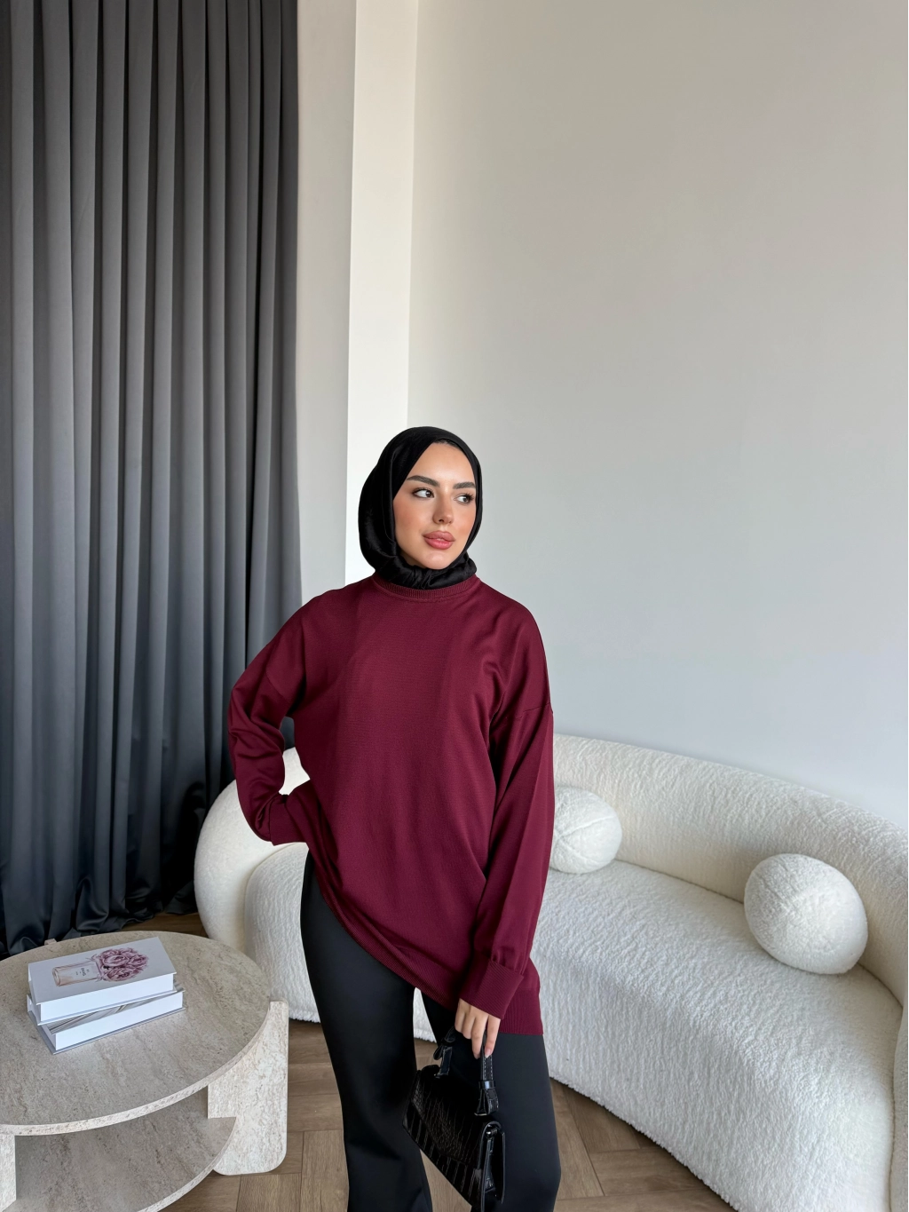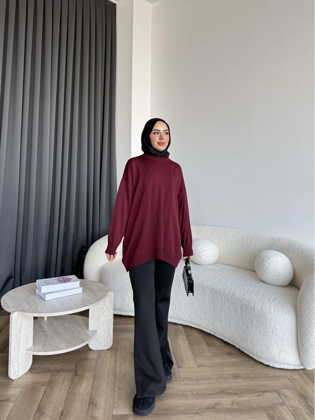 Sümy Kol Katlamalı Triko Kazak - Bordo