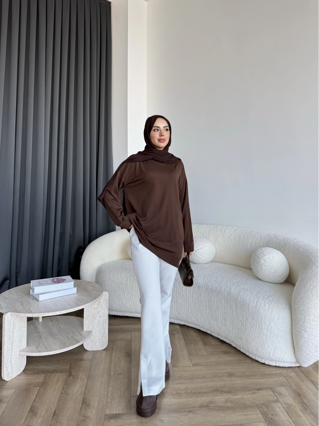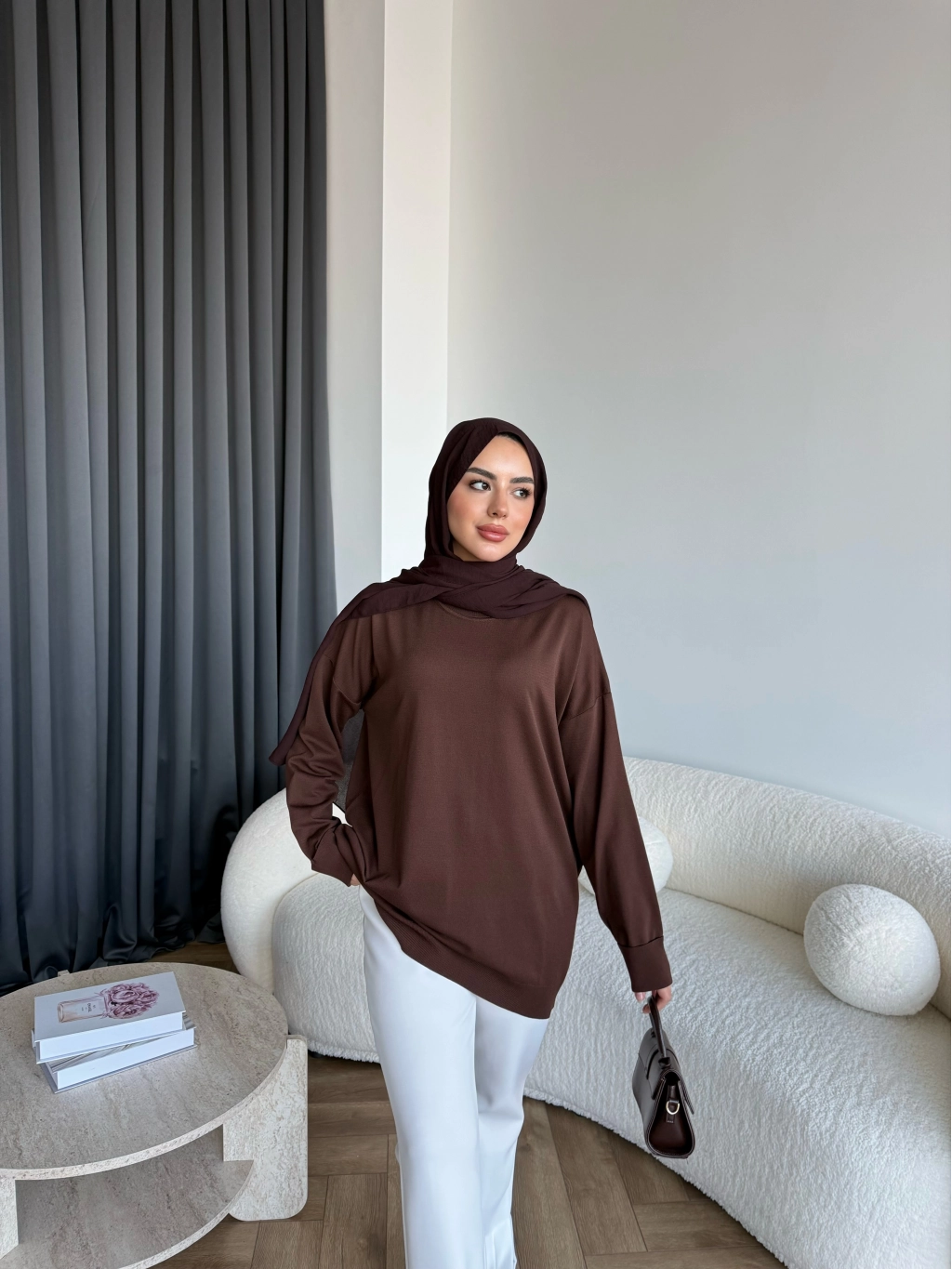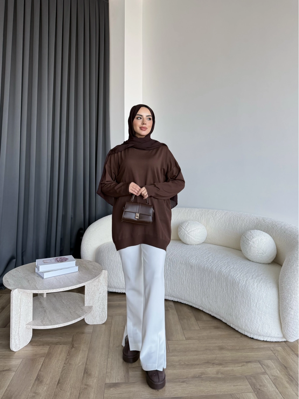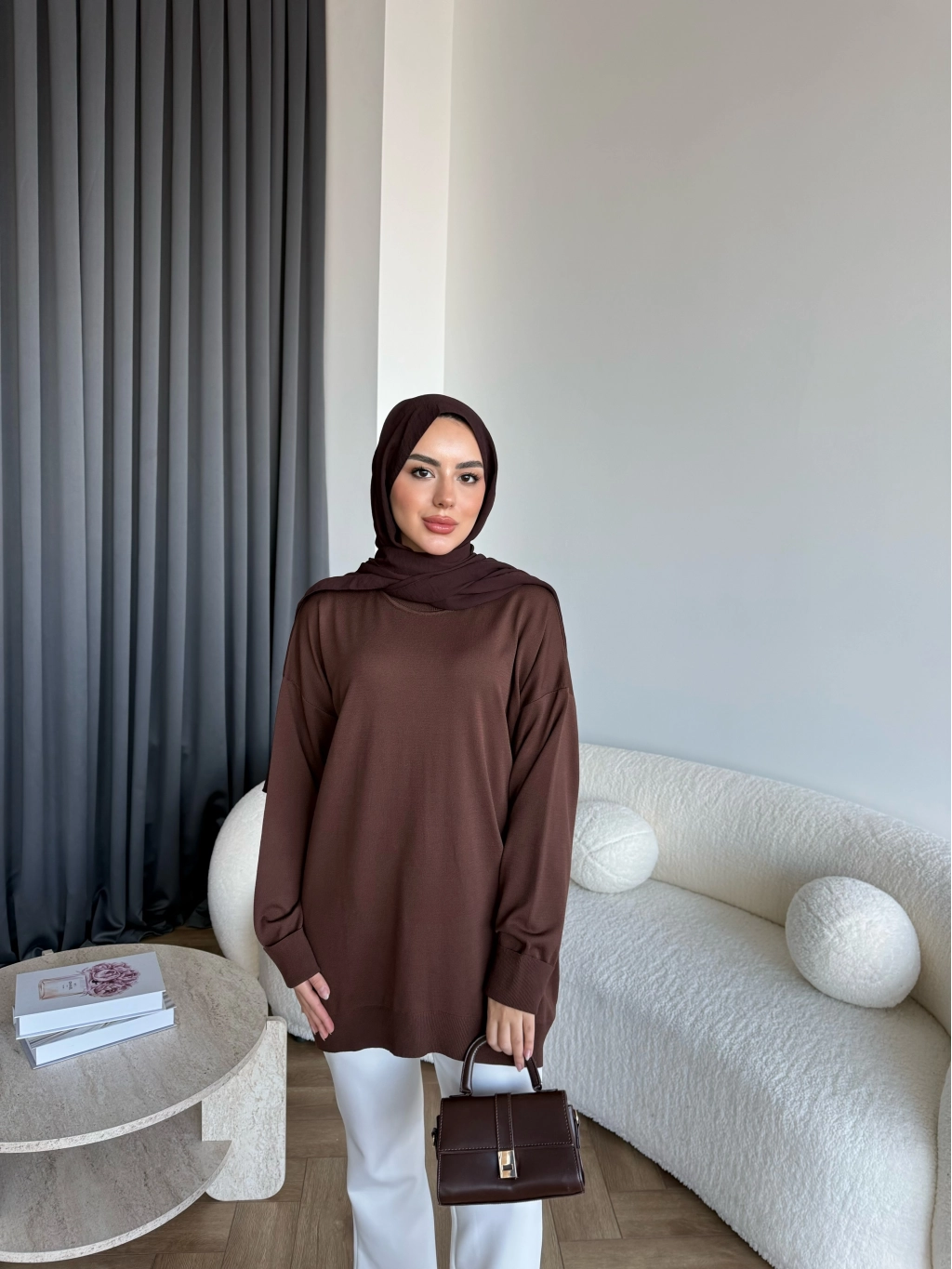 Sümy Kol Katlamalı Triko Kazak - Kahve