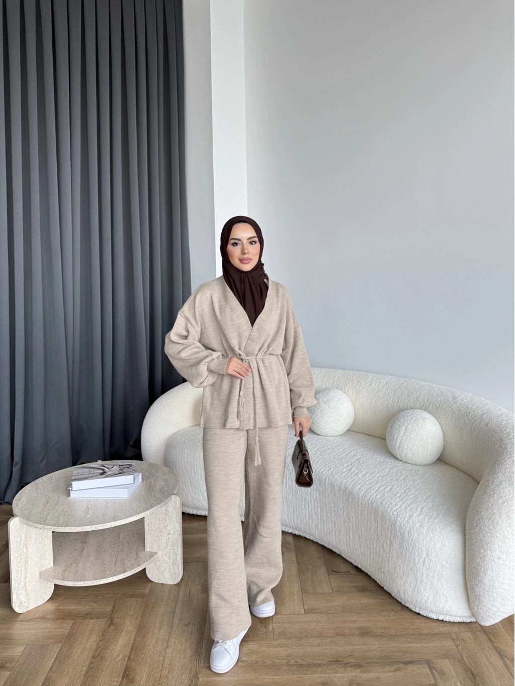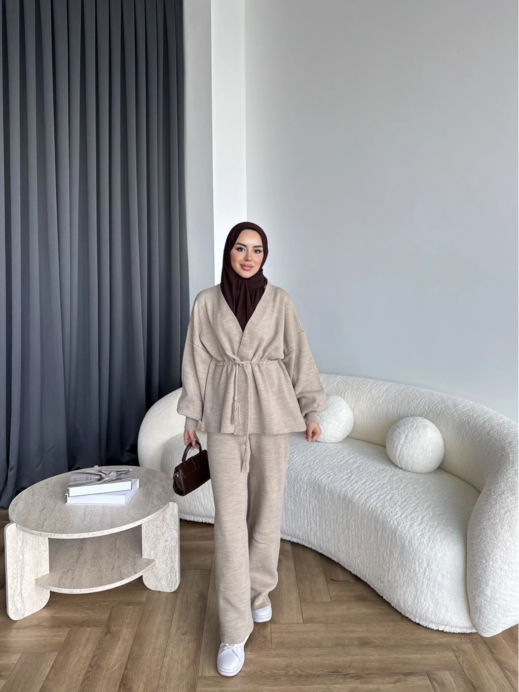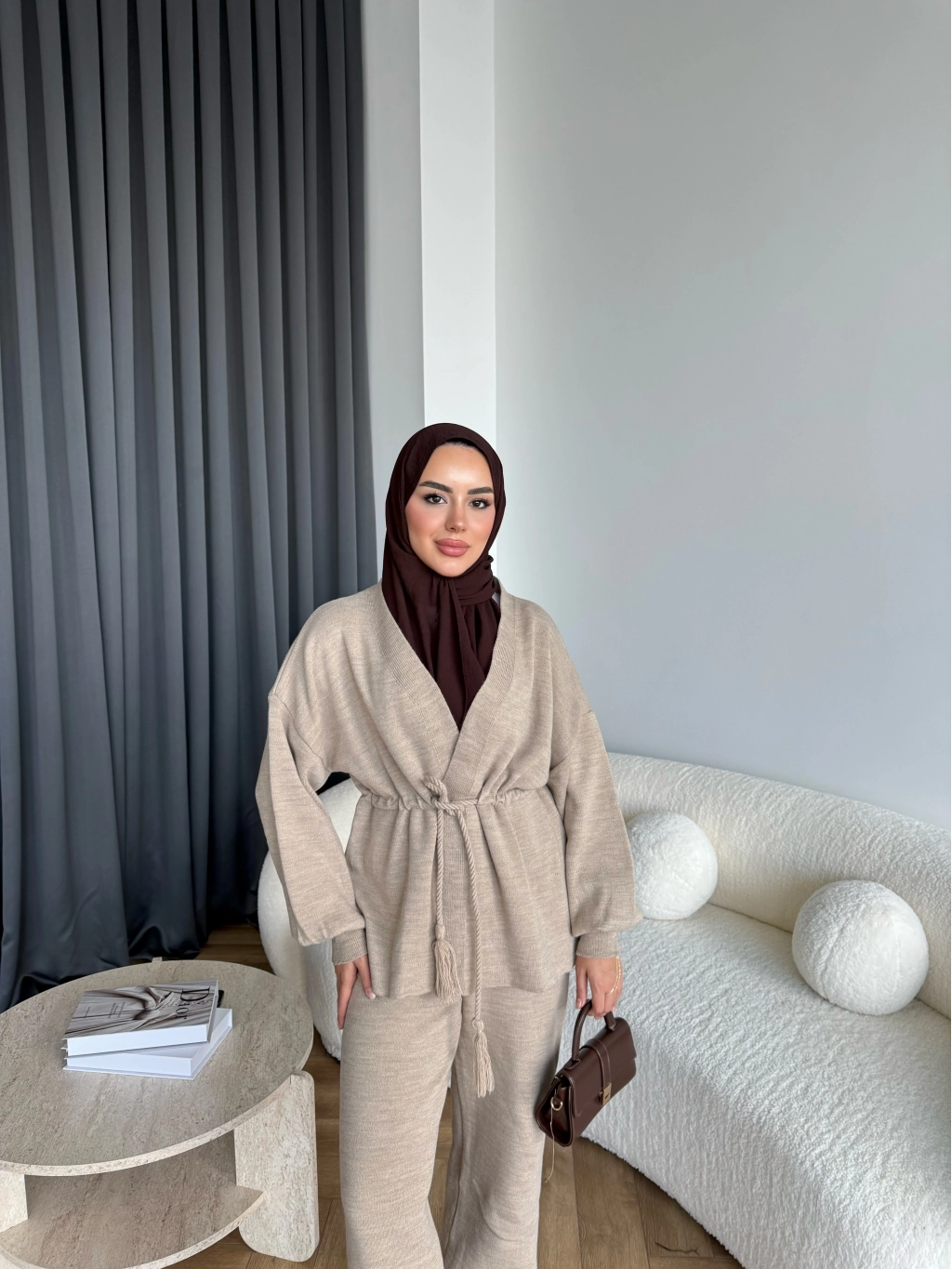 Sursula Ön Bağlamalı Triko Takım - Vizon