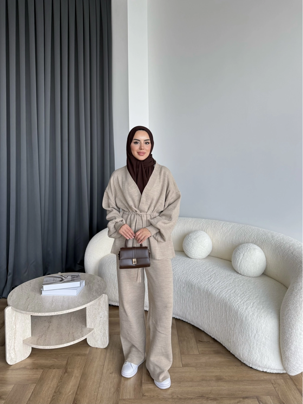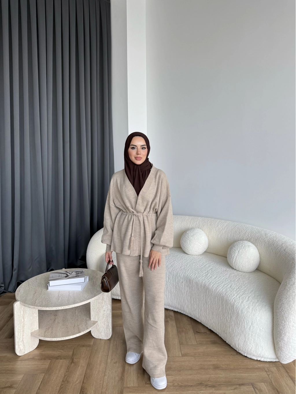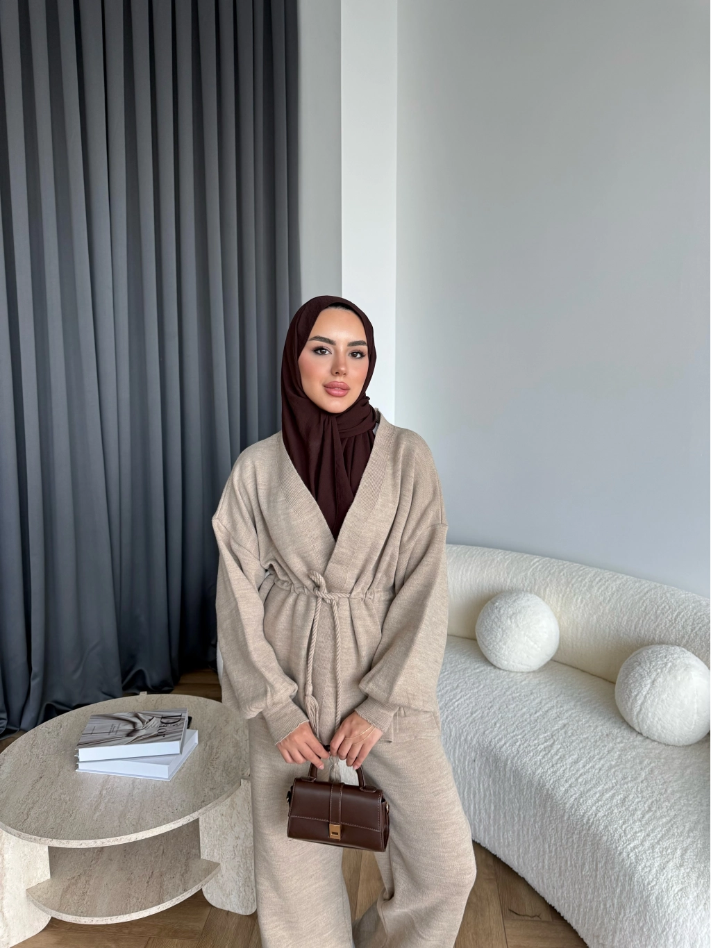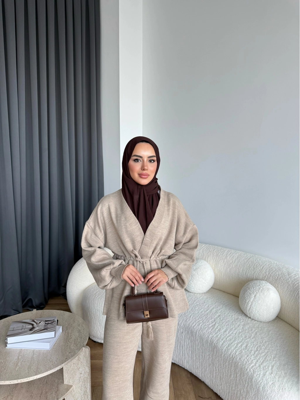 Sursula Ön Bağlamalı Triko Takım - Vizon