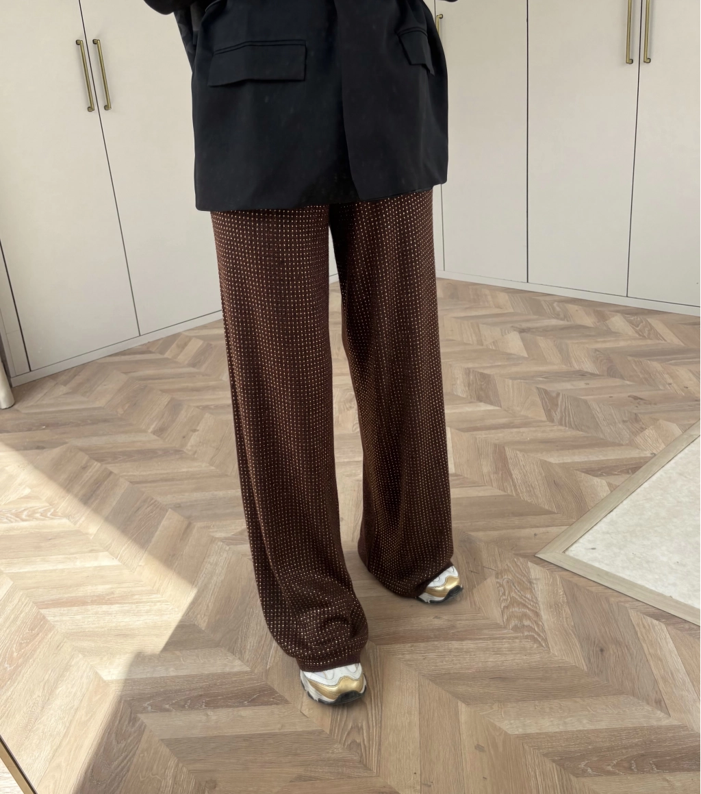 Taşlı Triko Pantolon - Kahve