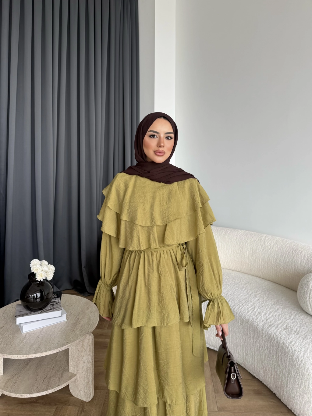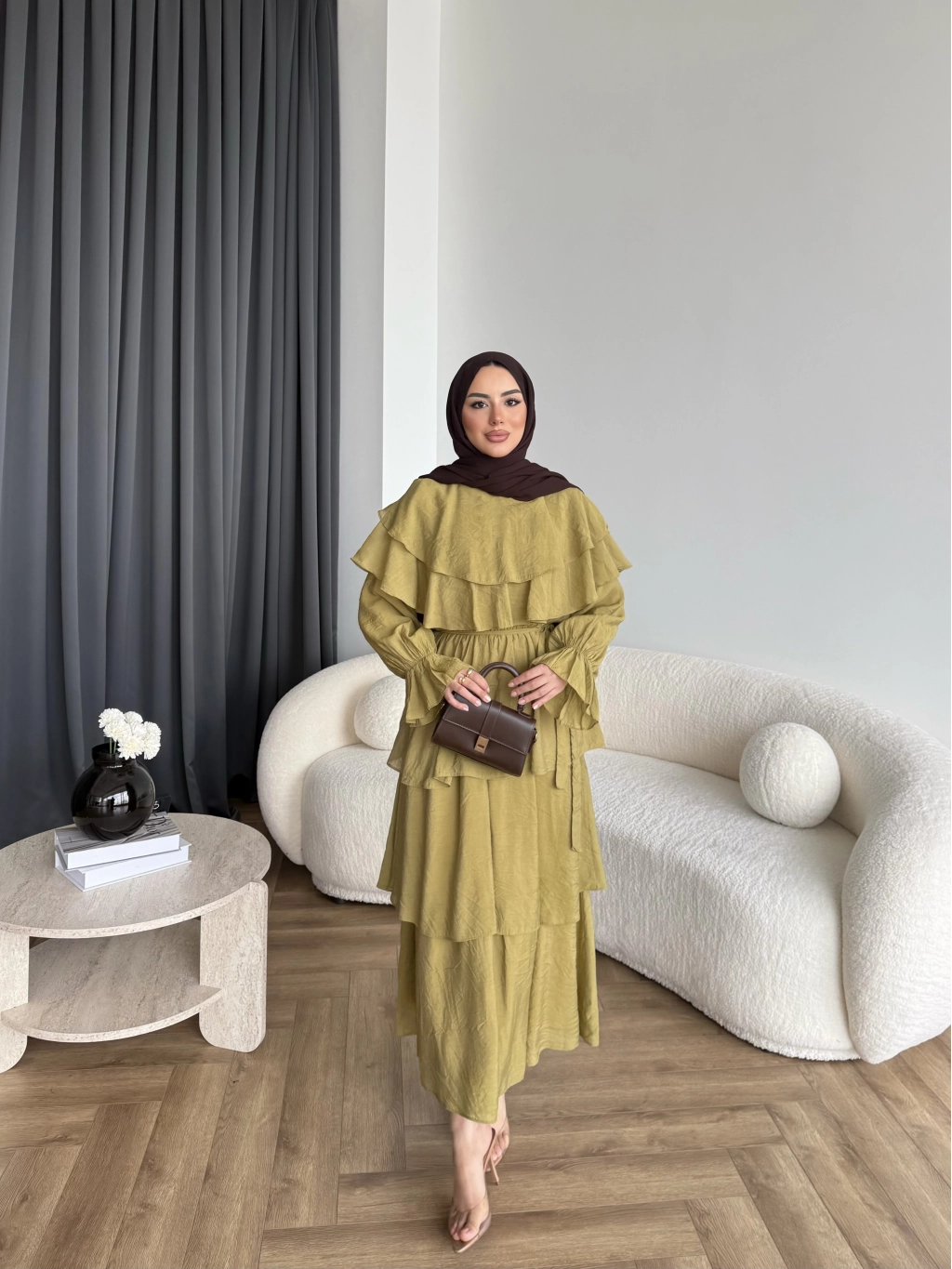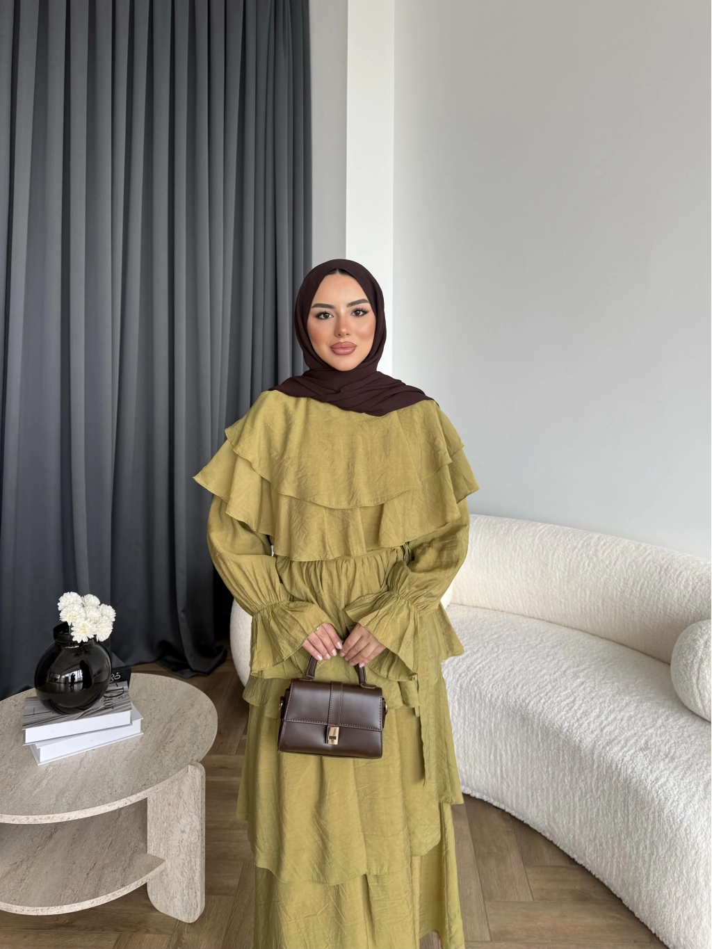 Tb - Dosha Fırfır Detay Elbise - Kahve