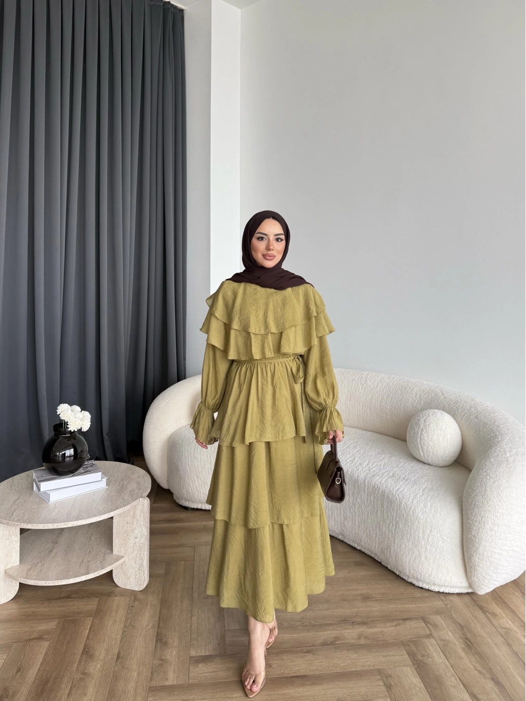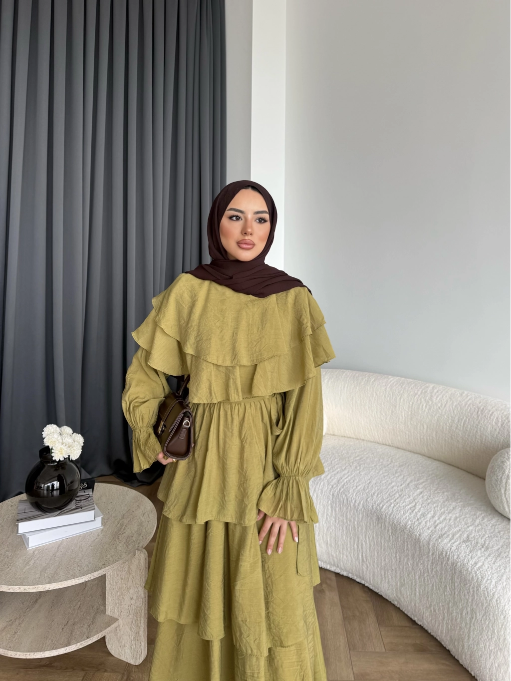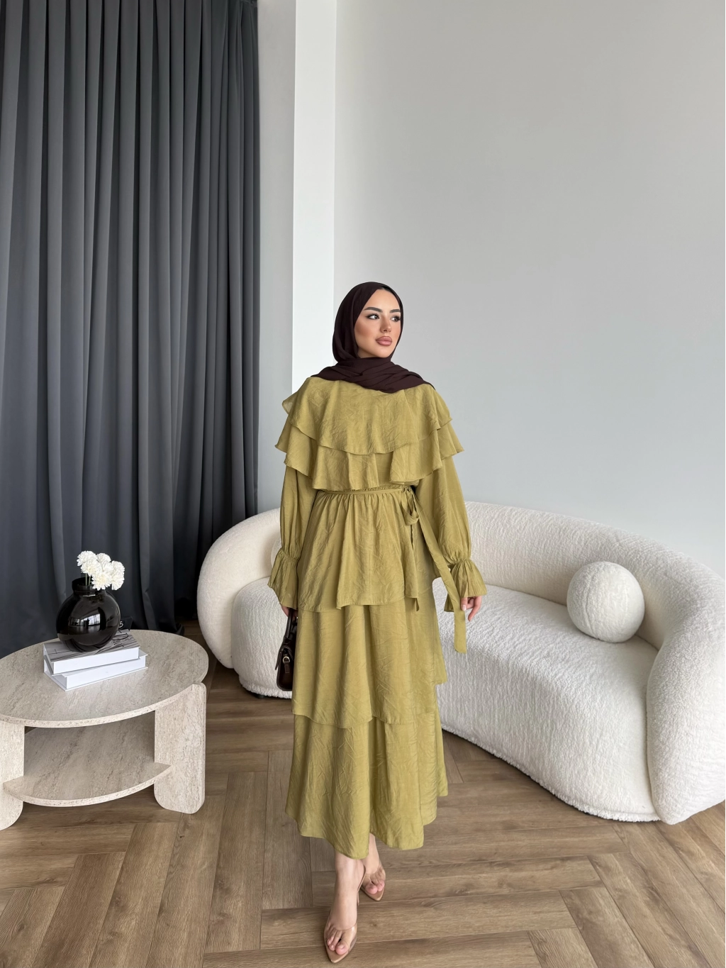 Tb - Dosha Fırfır Detay Elbise - Yağ Yeşili