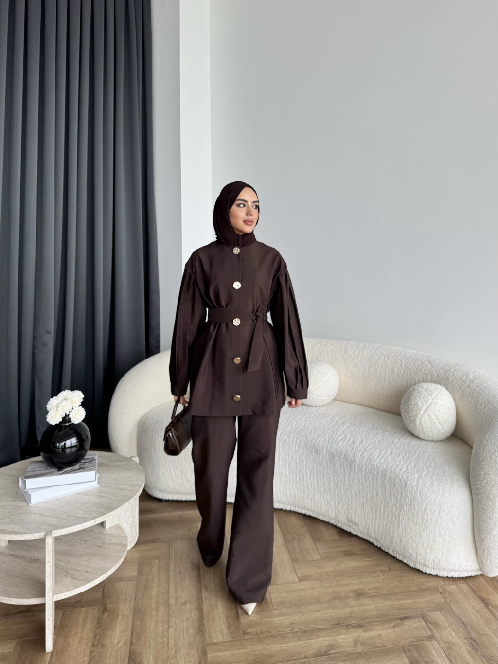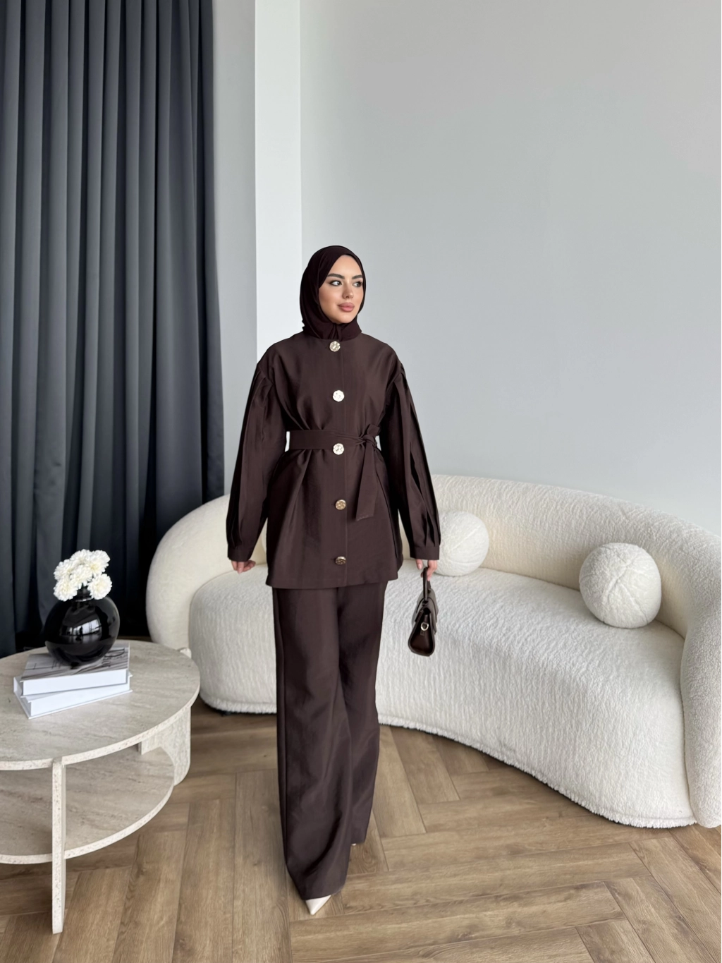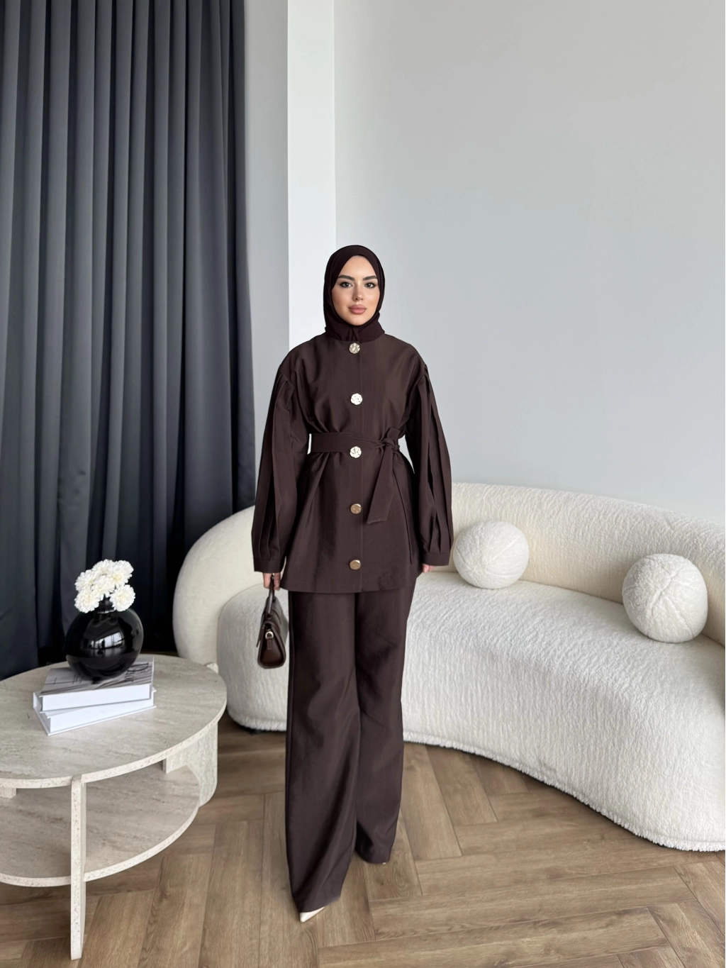 Tb - Eşla Gold Düğmeli Takım - Kahve