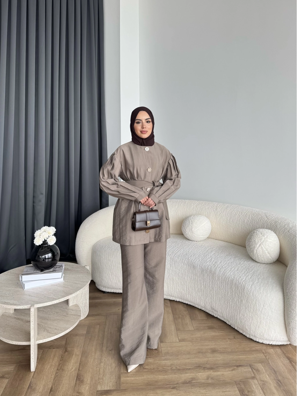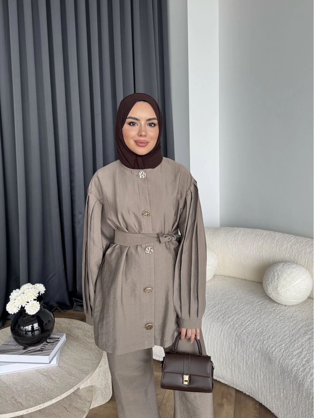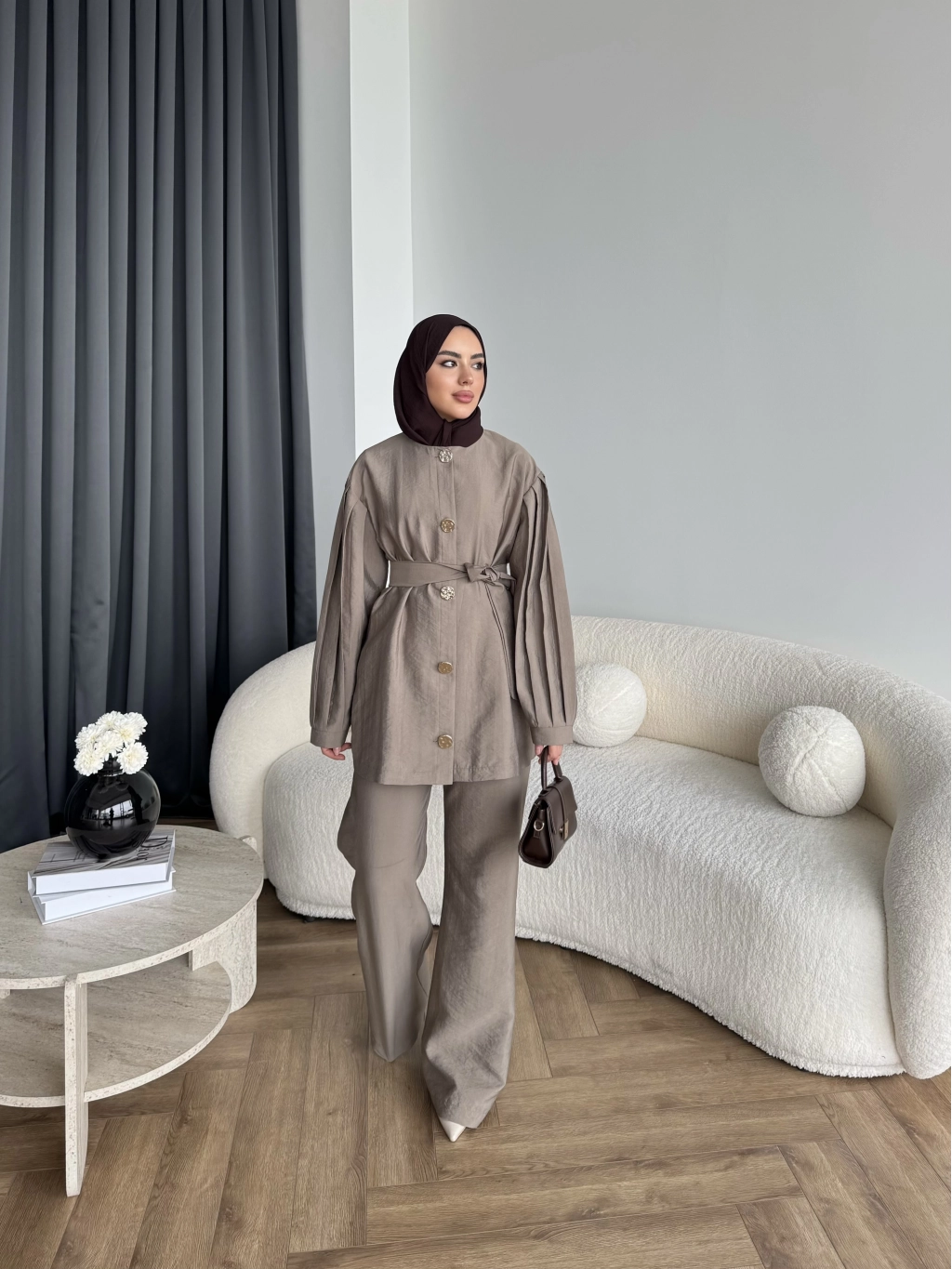 Tb - Eşla Gold Düğmeli Takım - Vizon