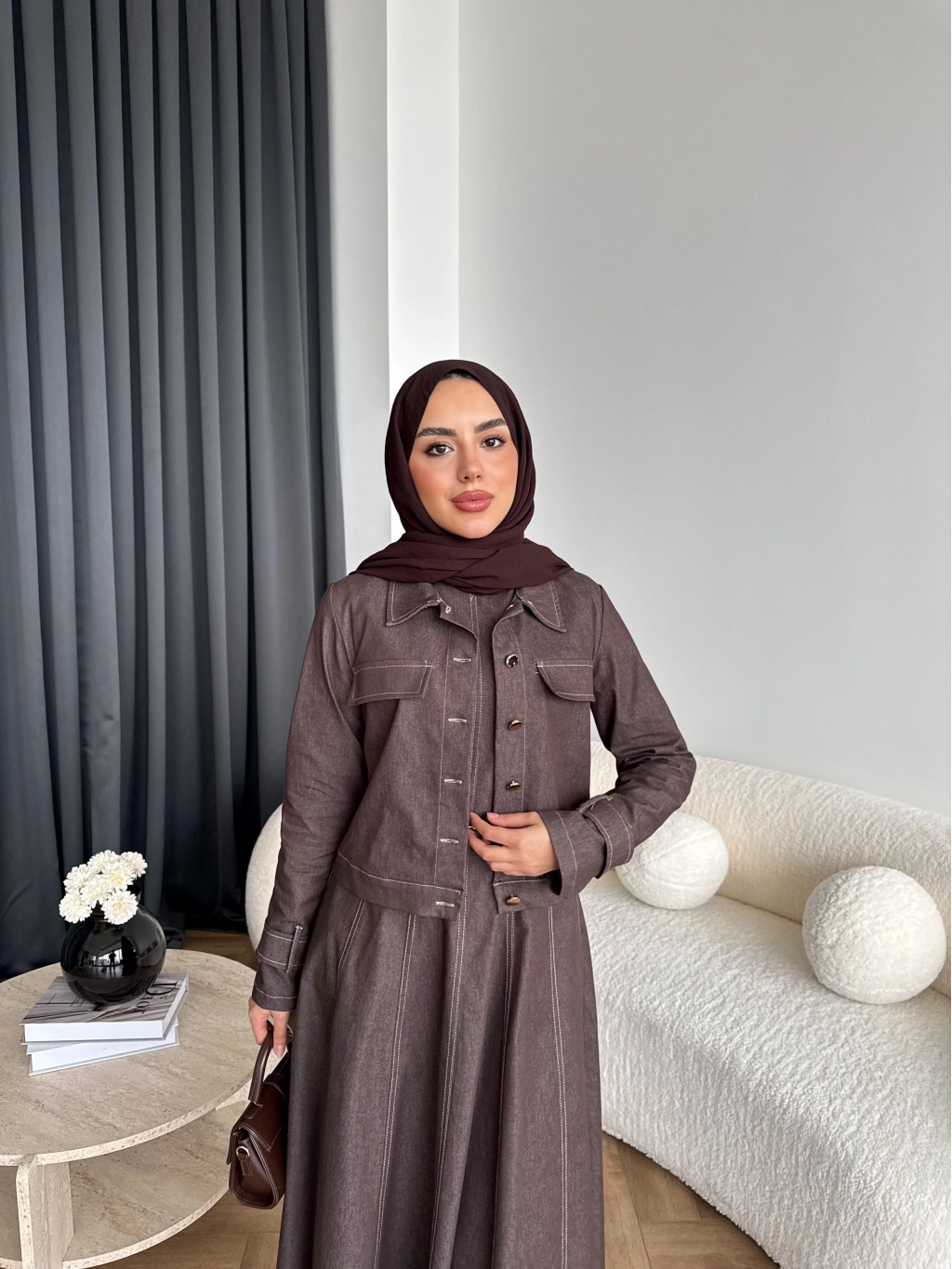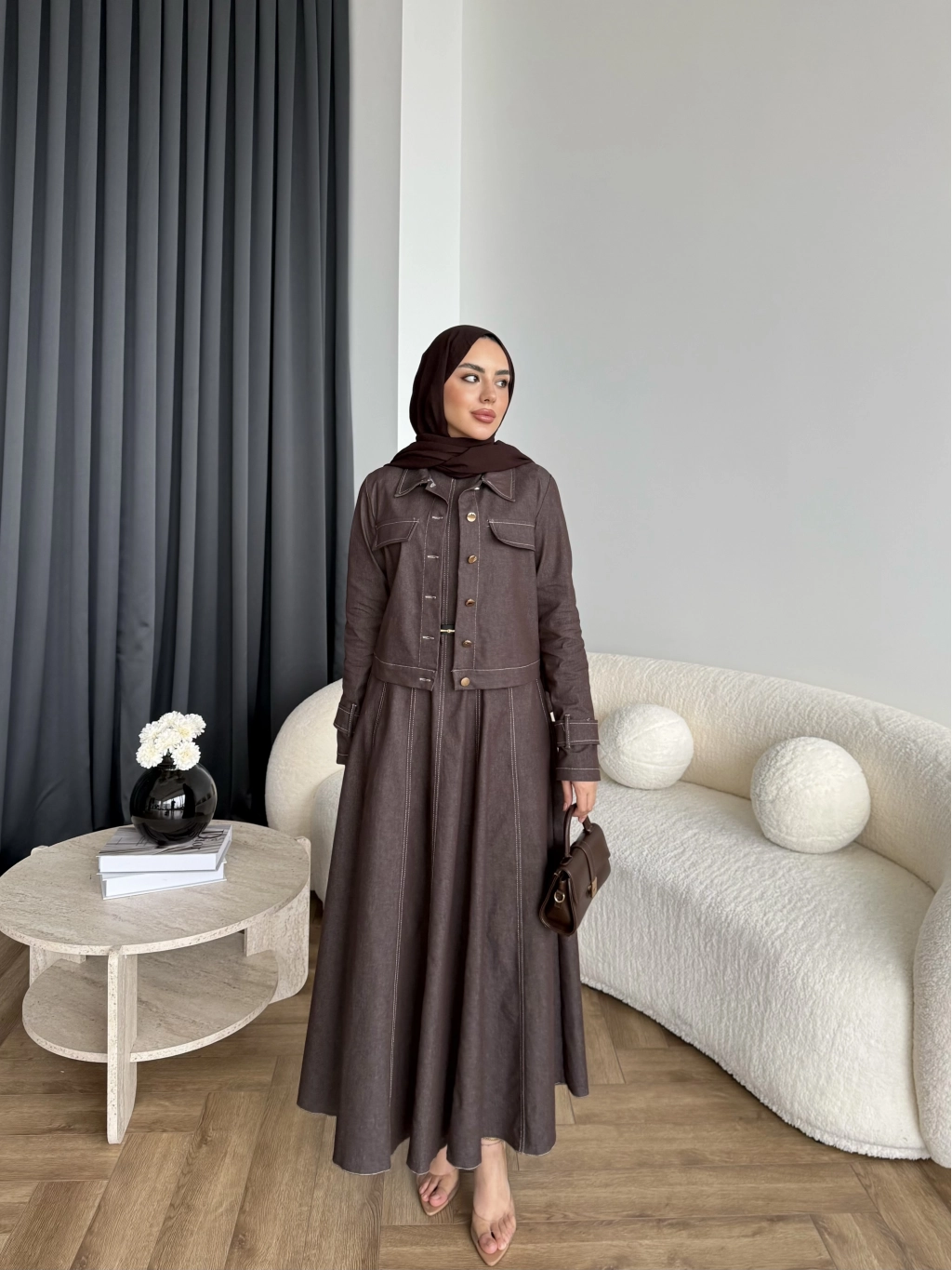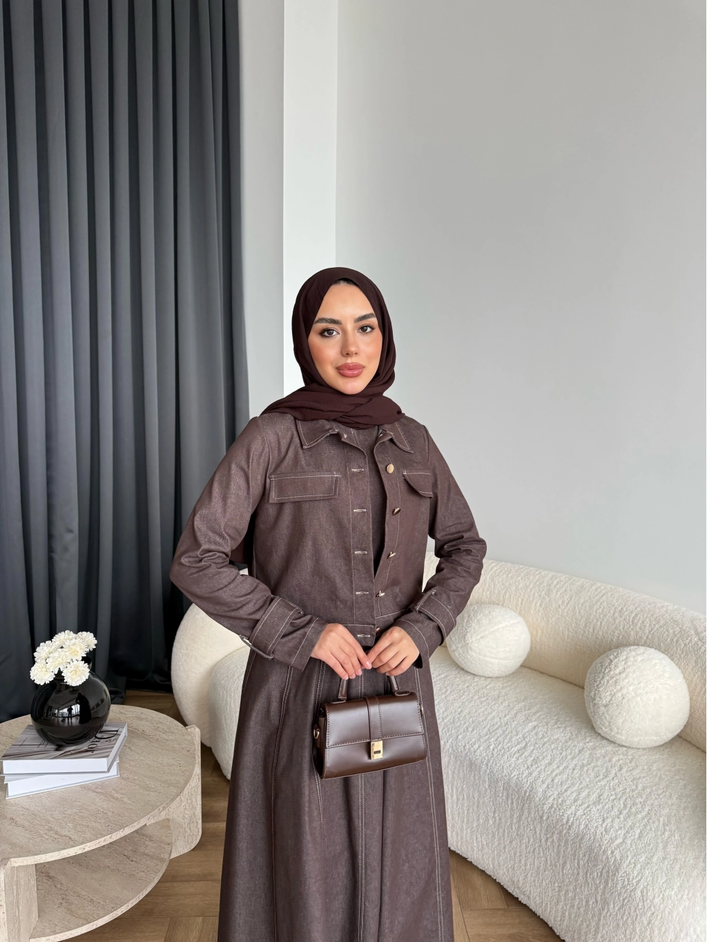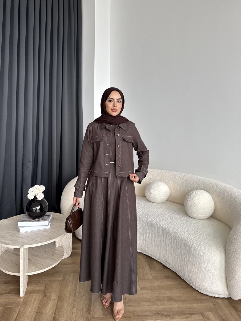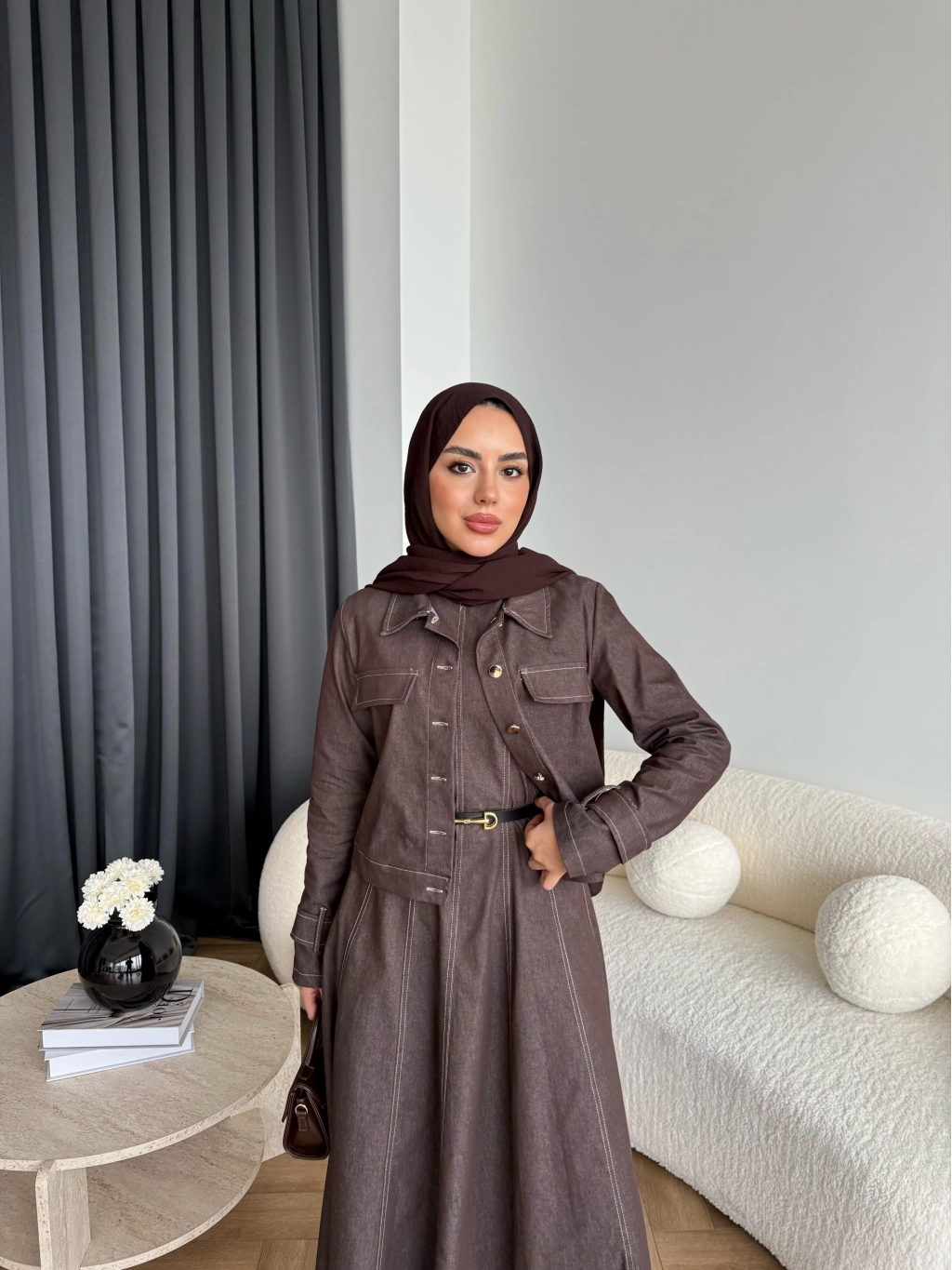 Tb - Eslan Ceketli Jile Elbise - Kahve