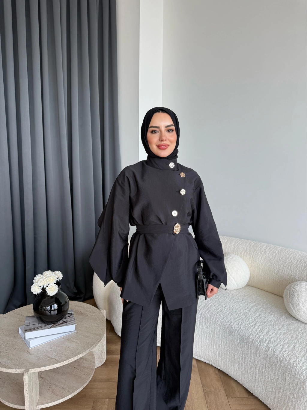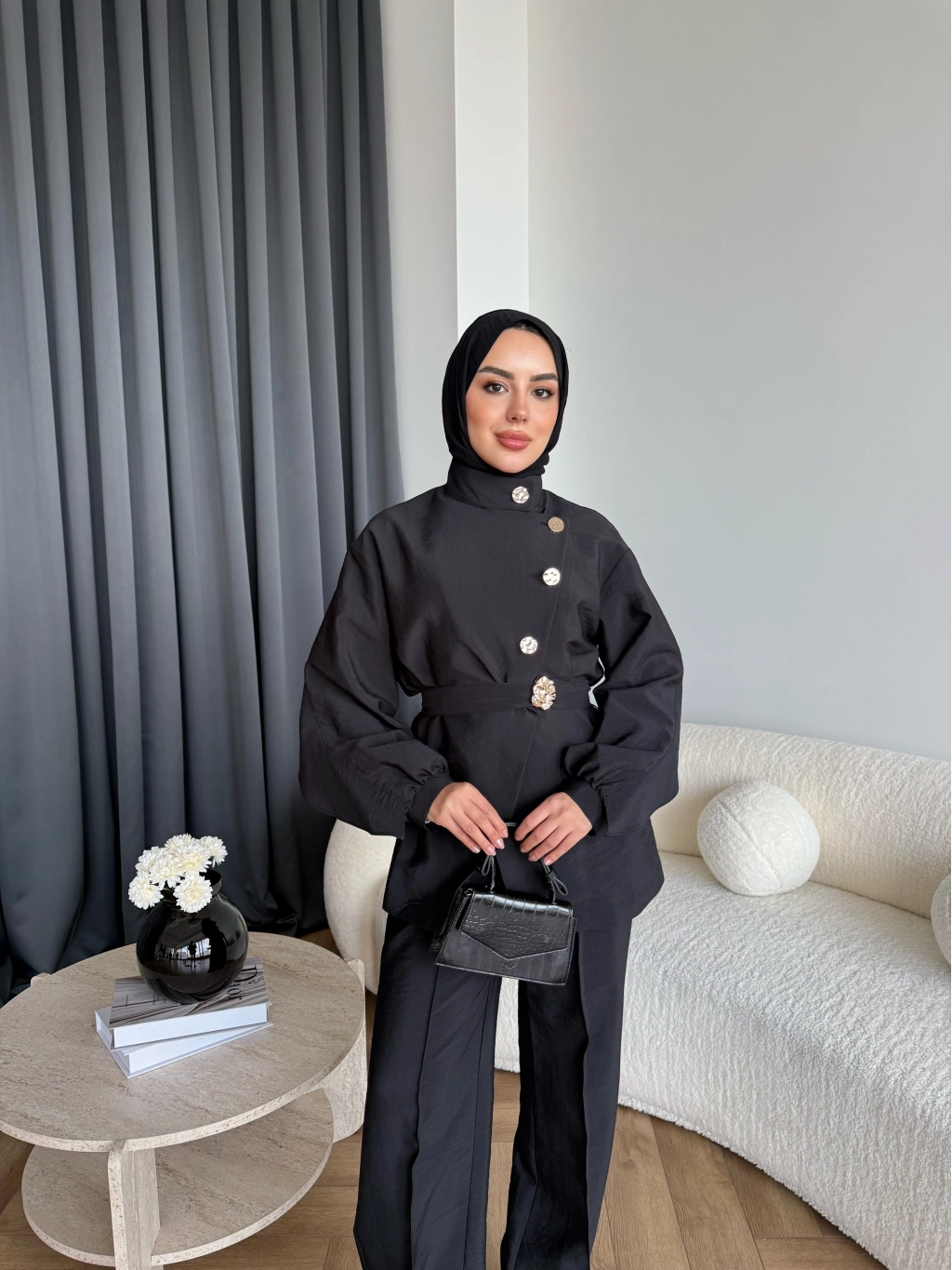 Tb - Evran Gold Düğme Cupra Takım - Siyah - ÖN SİPARİŞ