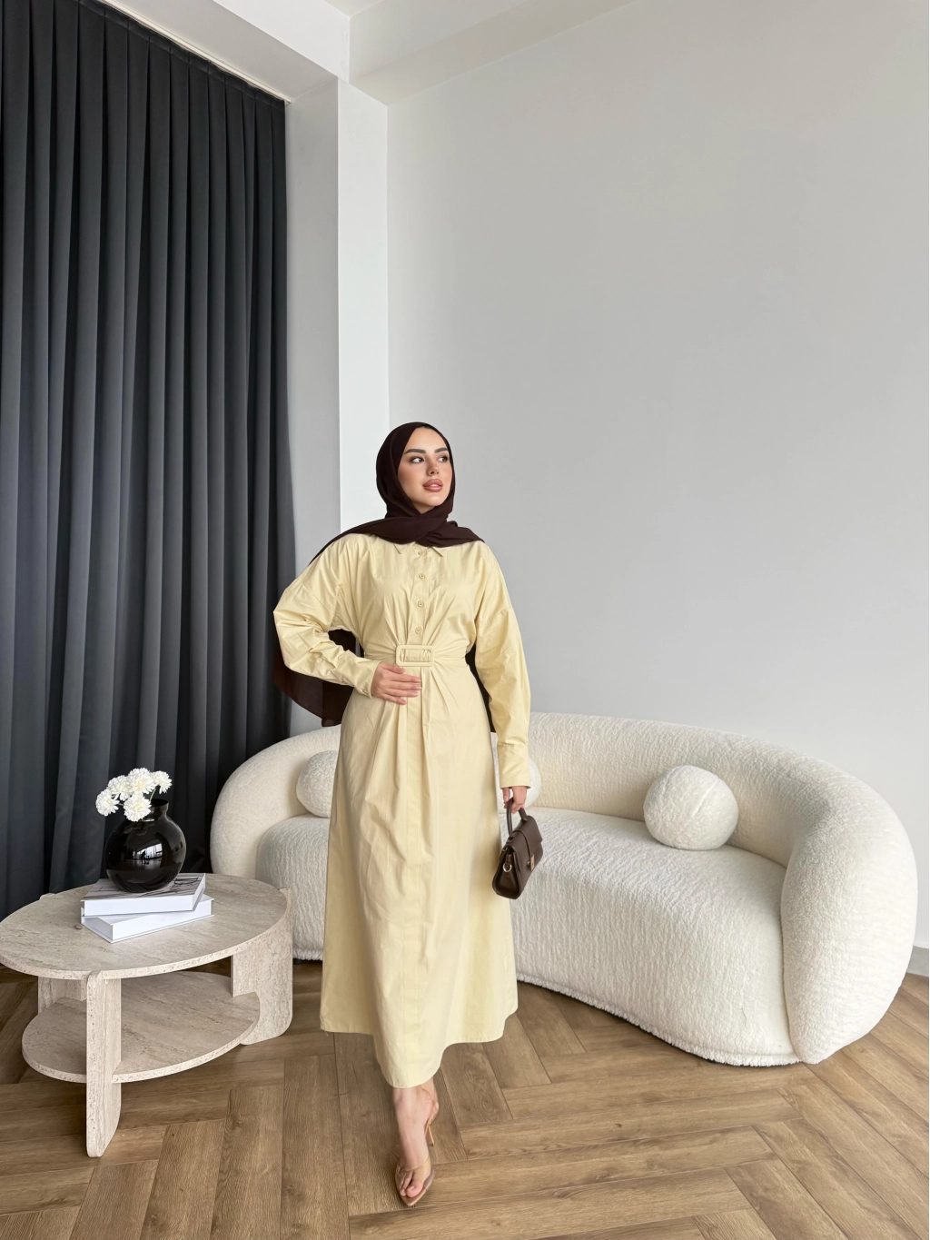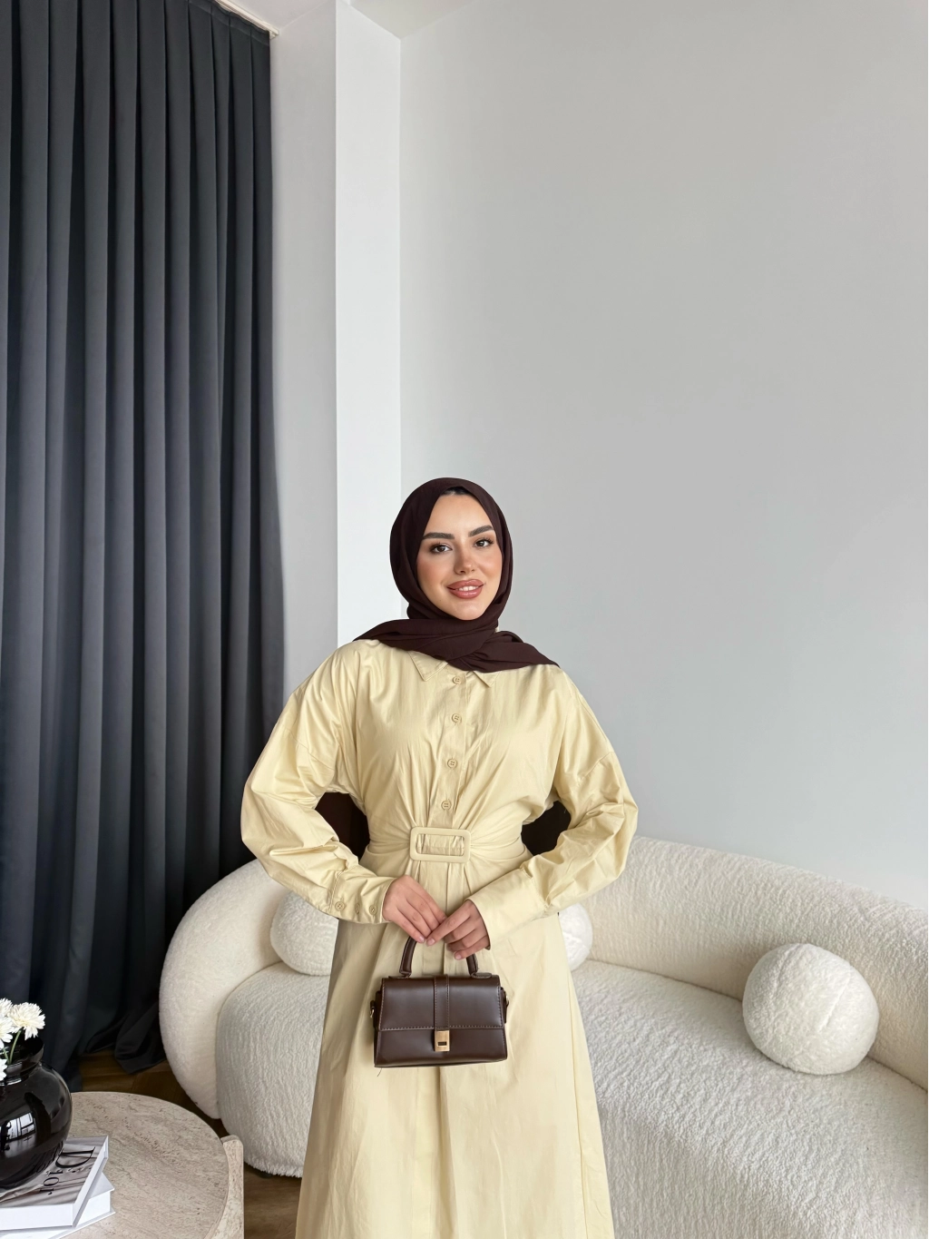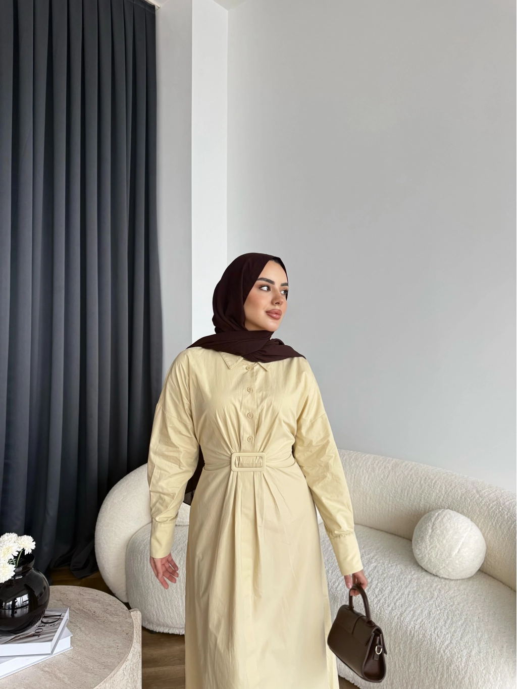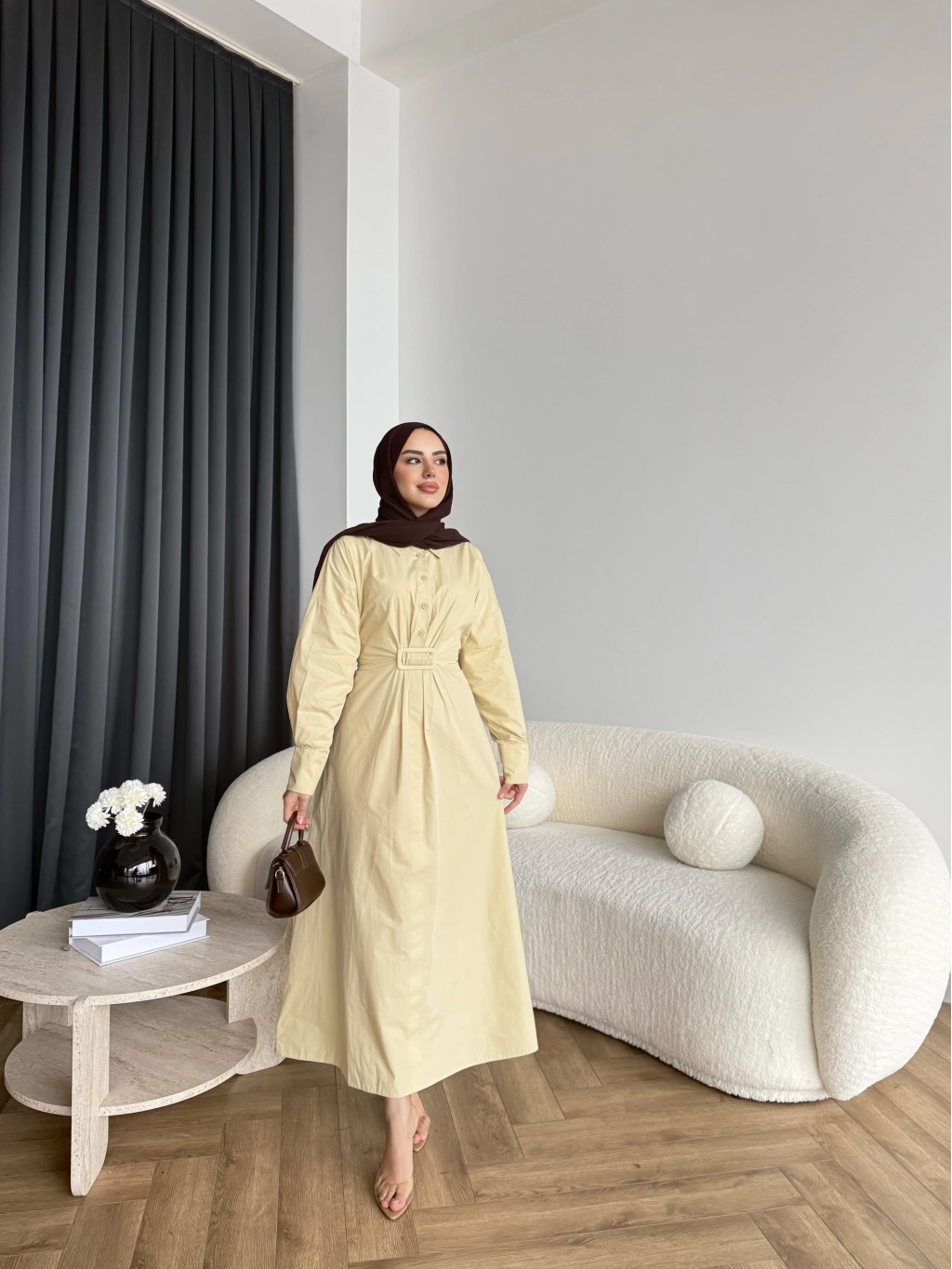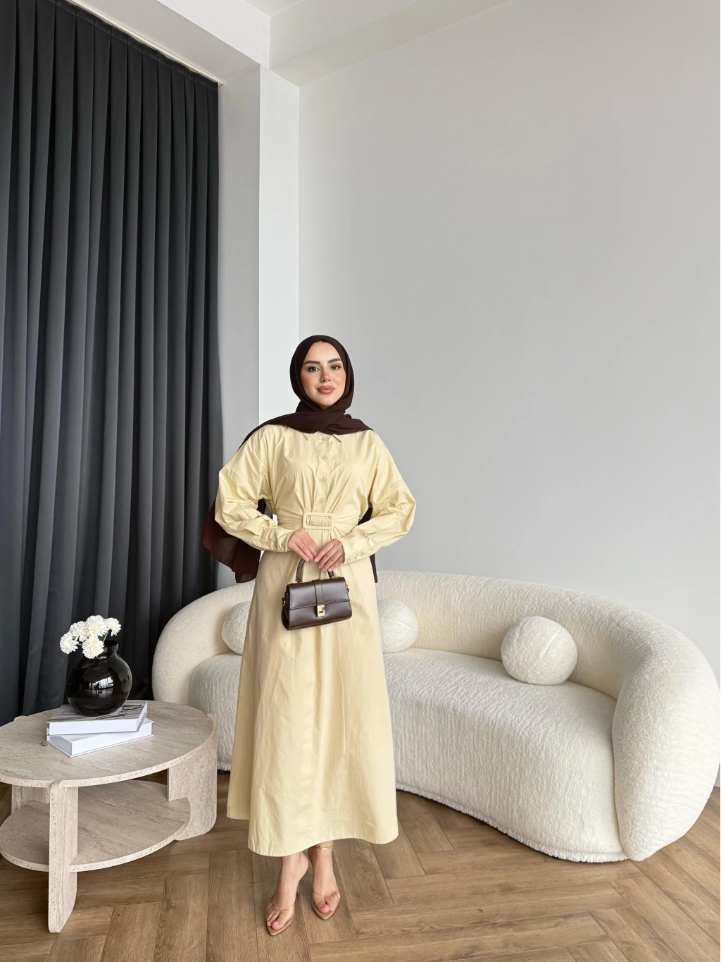 Hen - Luzy Şifon Elbise - Kahve