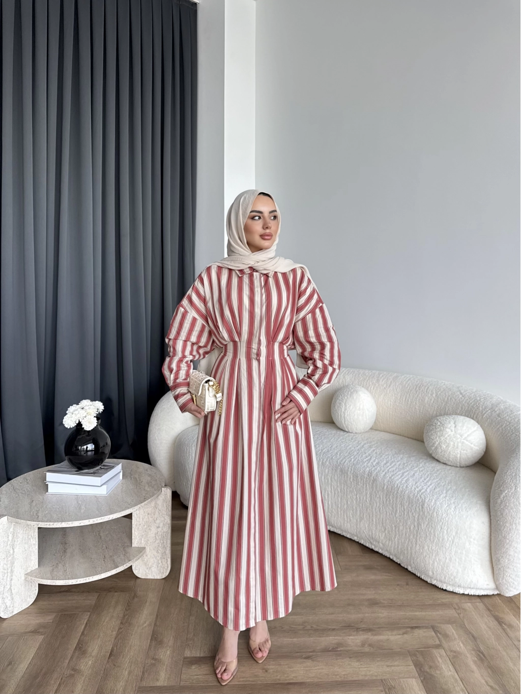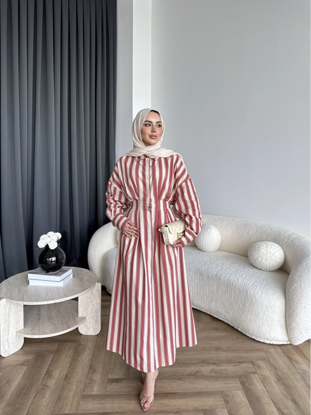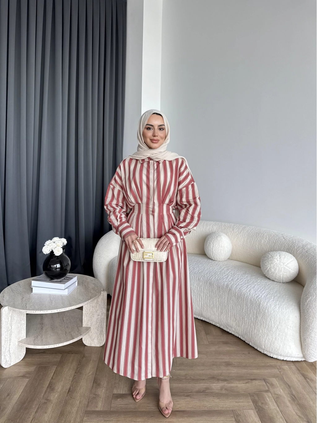 Tb - Heidi Çizgili Gömlek Elbise - Turuncu ÖN SİPARİŞ