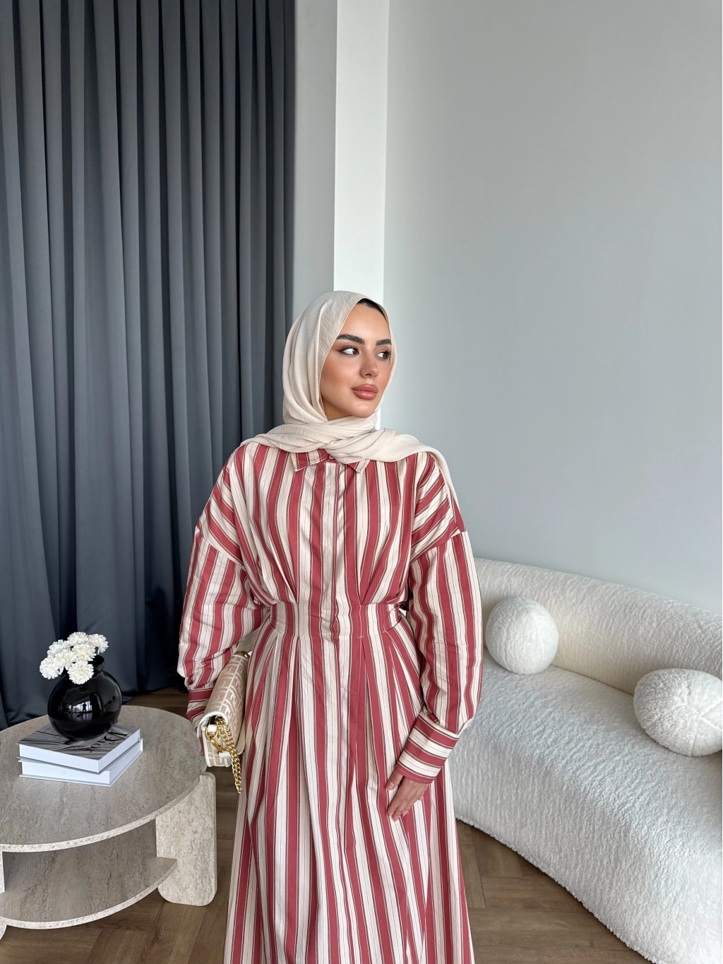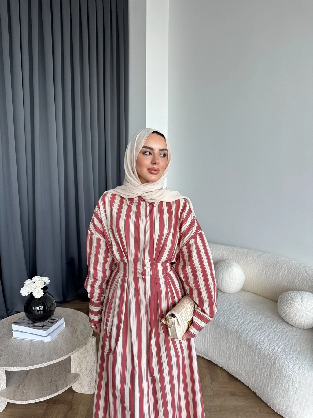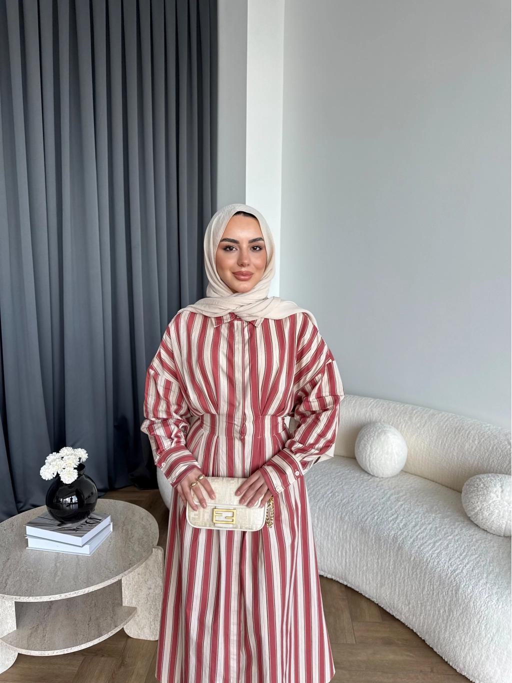 Tb - Heidi Çizgili Gömlek Elbise - Turuncu ÖN SİPARİŞ